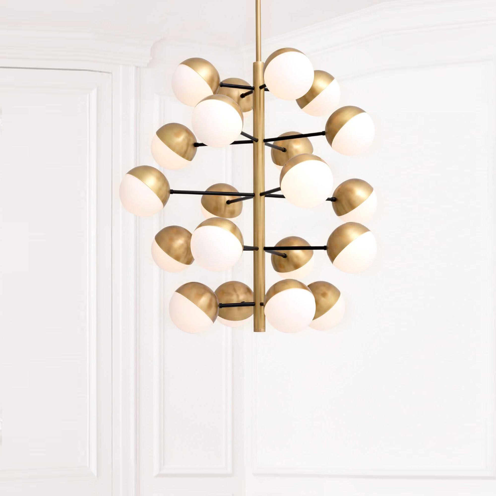 Present sophisticated formal spaces with the playful lines of the Cona Chandelier from EICHHOLTZ Lighting. Inspired by elements of Mid-Century Modern design, this charming chandelier lends a dazzling array of glowing orbs for a captivating and delightful lighting piece in dining areas and grand interiors.