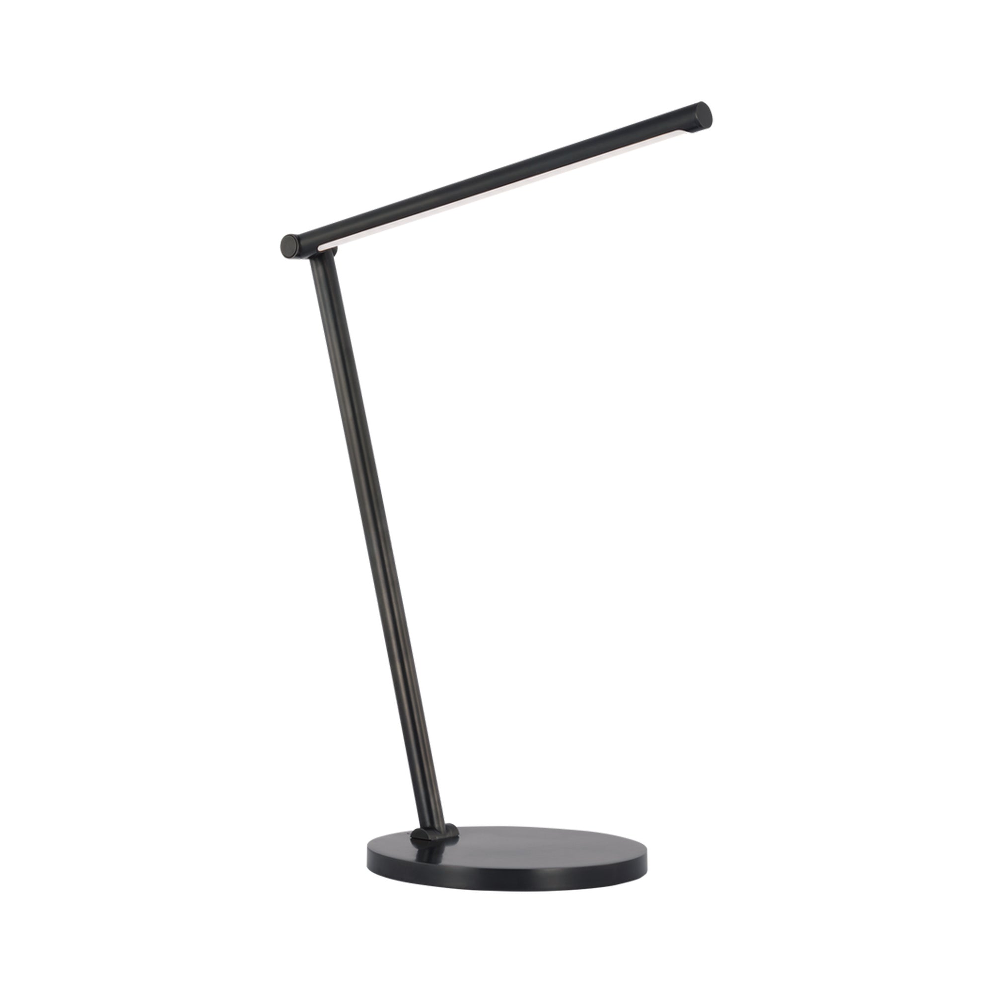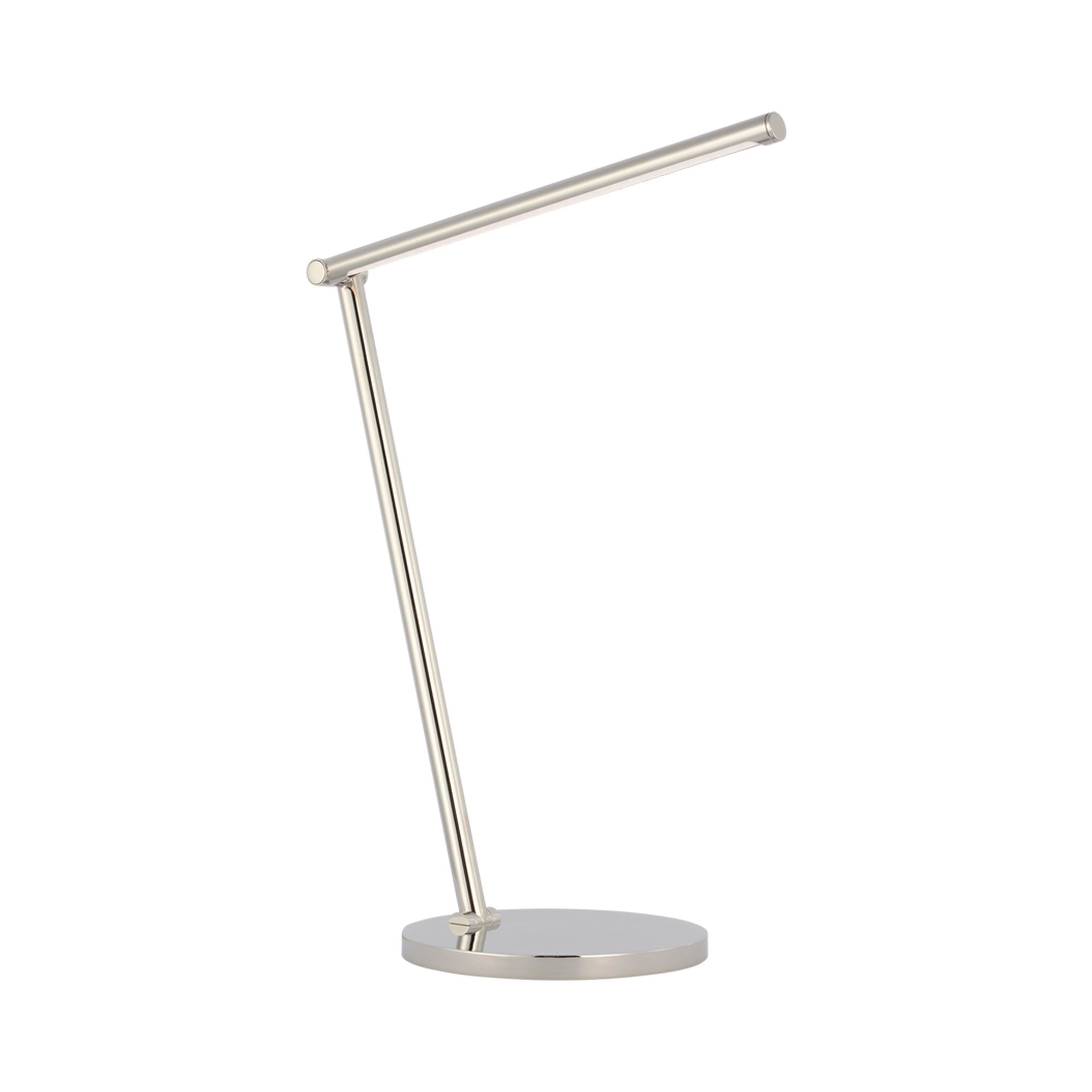The Cona LED Table Lamp from Visual Comfort Signature multiplies a less-is-more design statement, truly capturing an optical vibe that’s sassy and fun. Metal construction begins a semi-quirky look in a lamp with angular silhouetting, A tipped arm and shade piece disrupts conventional spacing principals, sending soft illumination through a long diffuser as dedicated LED with a base-mounted touch dimmer adds significant convenience to a stylish light source.