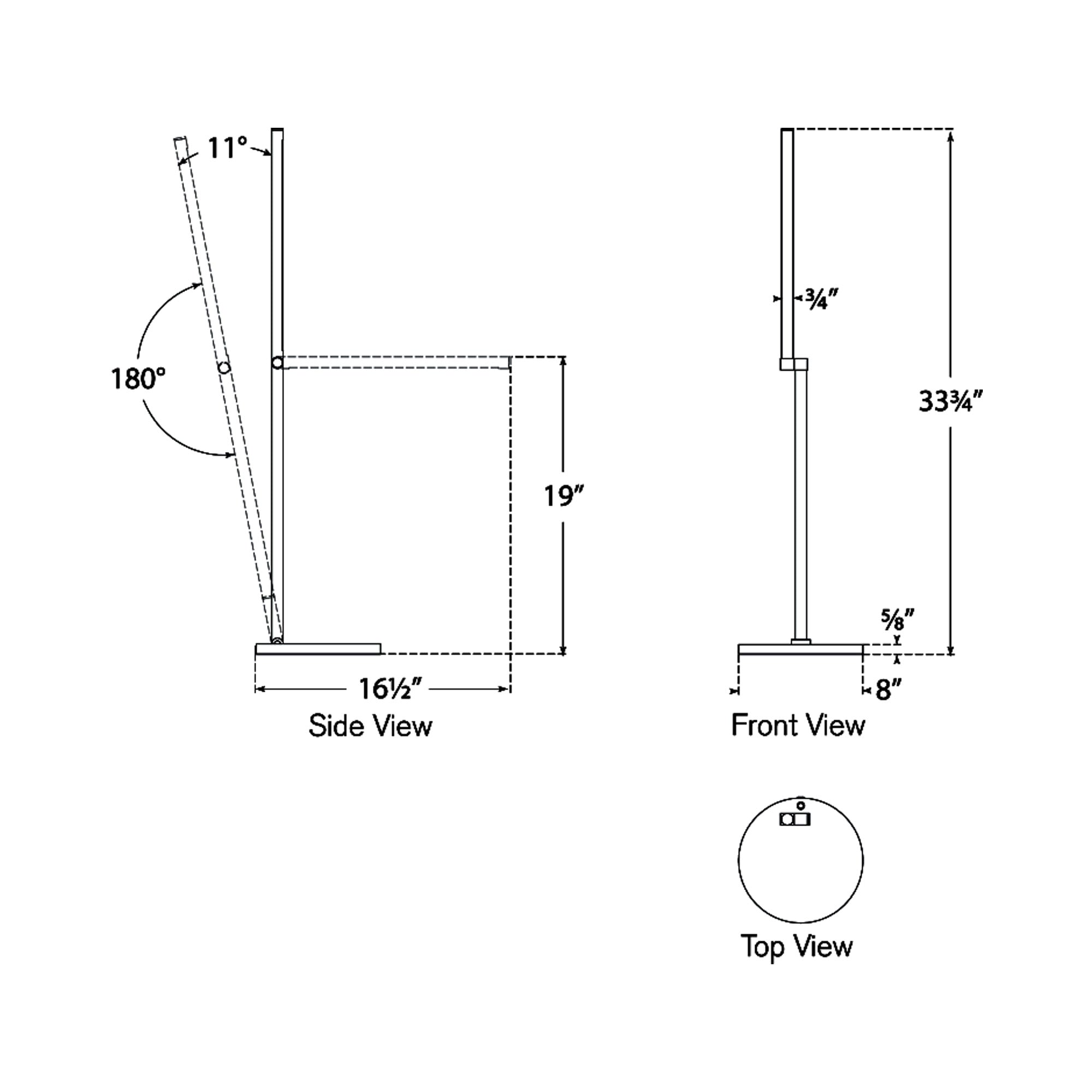 - Dimensions: 8"W X 18.5" - 33.75"H; 144" Cord Length