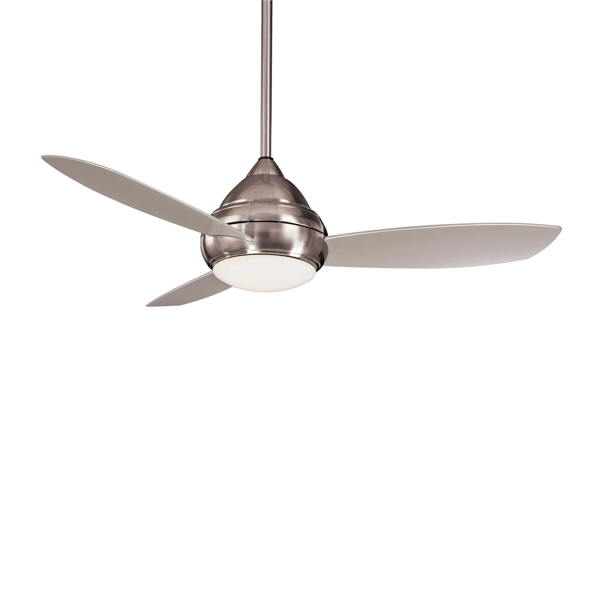 Sleek lines heightened with an industrial flair tells the story of the Concept I Outdoor LED Ceiling Fan from Minka Aire and its low-key three blade design. All metal construction with a white opal glass shade creates a captivating blend of materials, as a crisp design embellishes the full function wall control system and energy-efficient LED lighting technology.