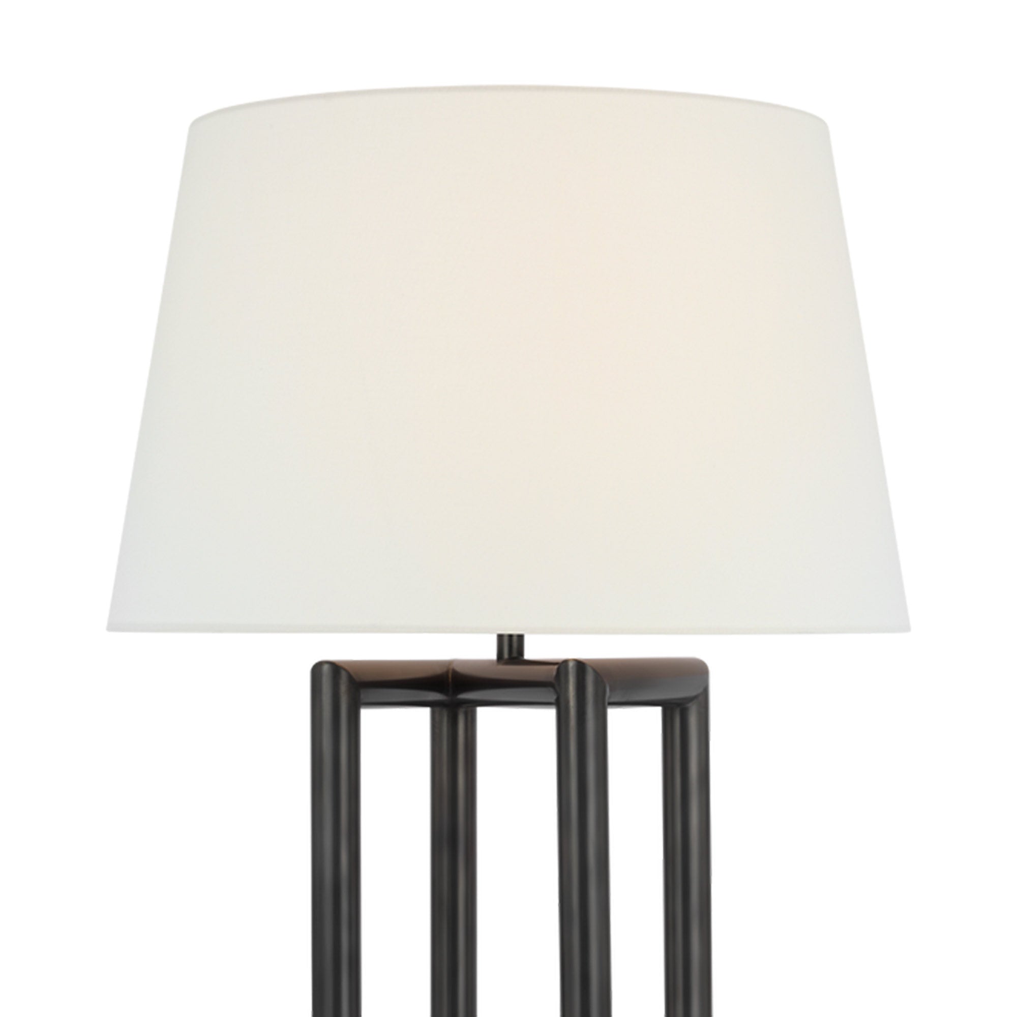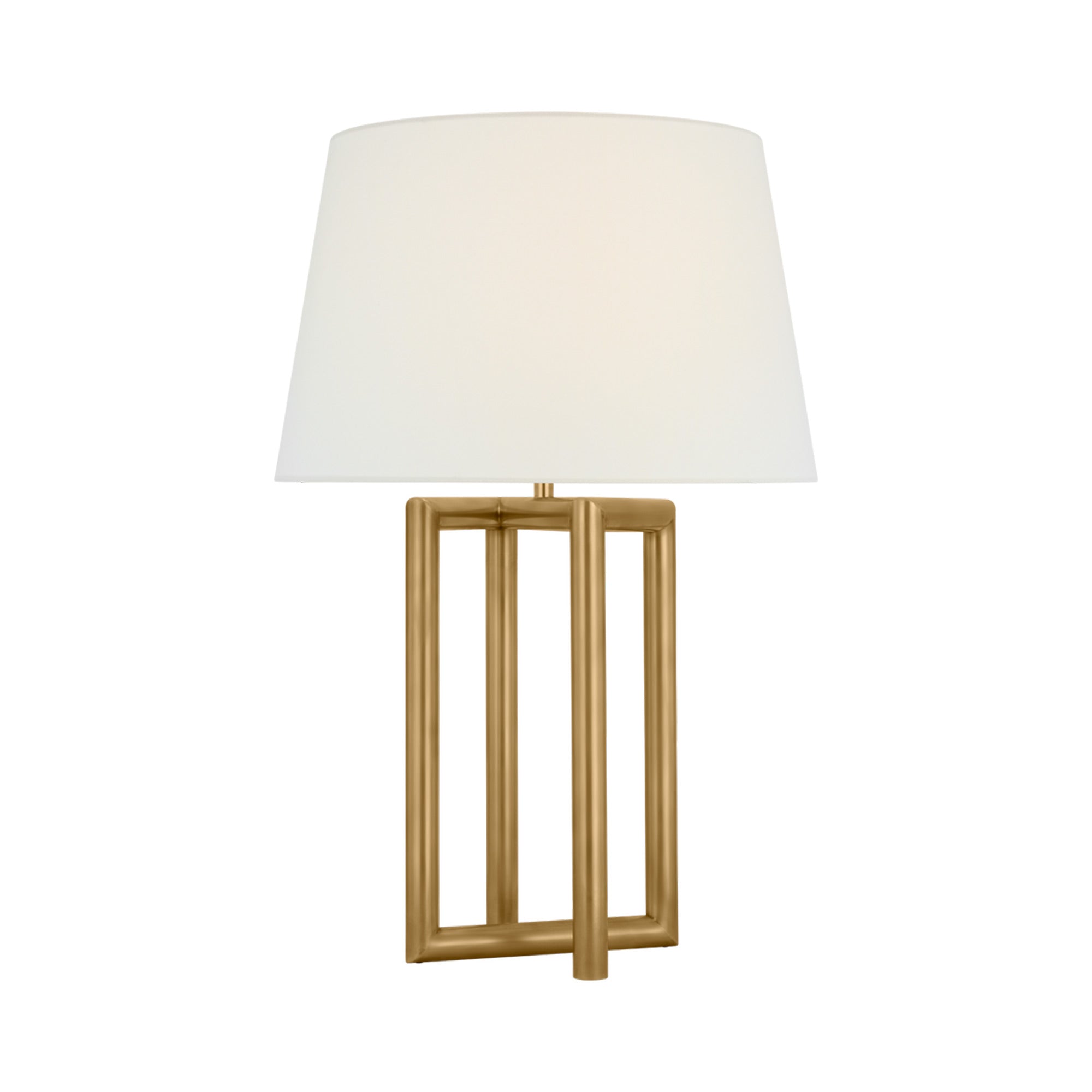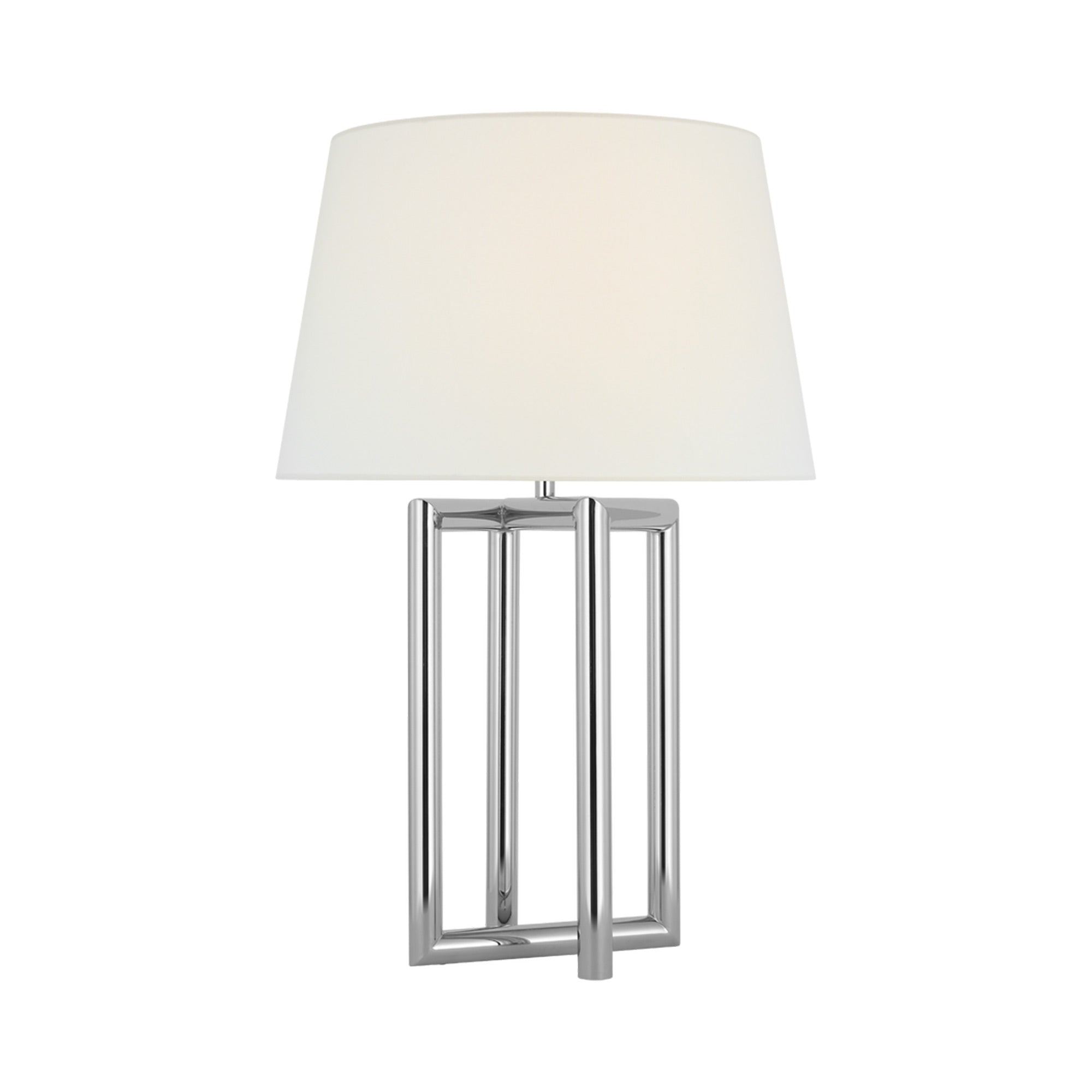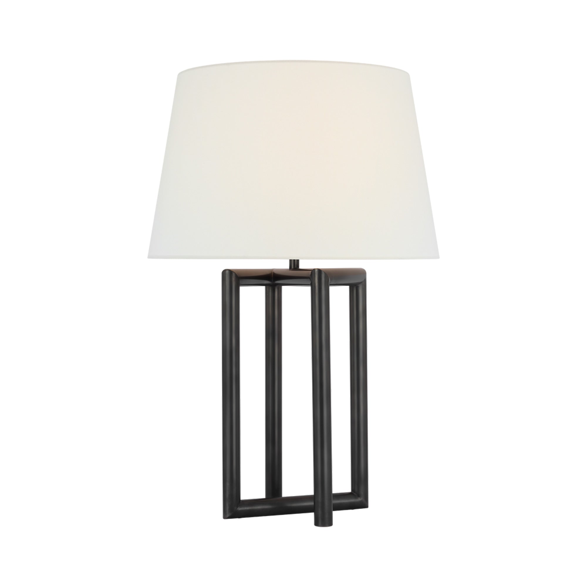 Turn easy into complicated with a lamp design that reverses convention. The Concorde Table Lamp from Visual Comfort Signature adds an omnipresent style factor to a high-class living room or bedroom. Linear metal framing is open and dimensional, inviting a comparison to contemporary minimalism and welcoming a soft linen shade for completion.