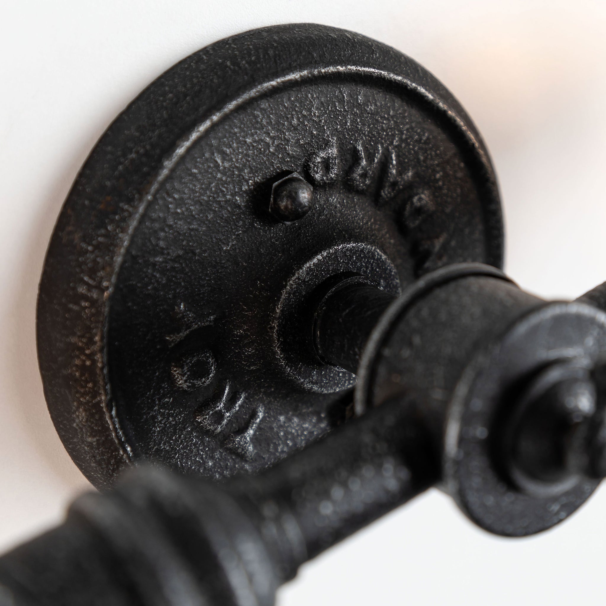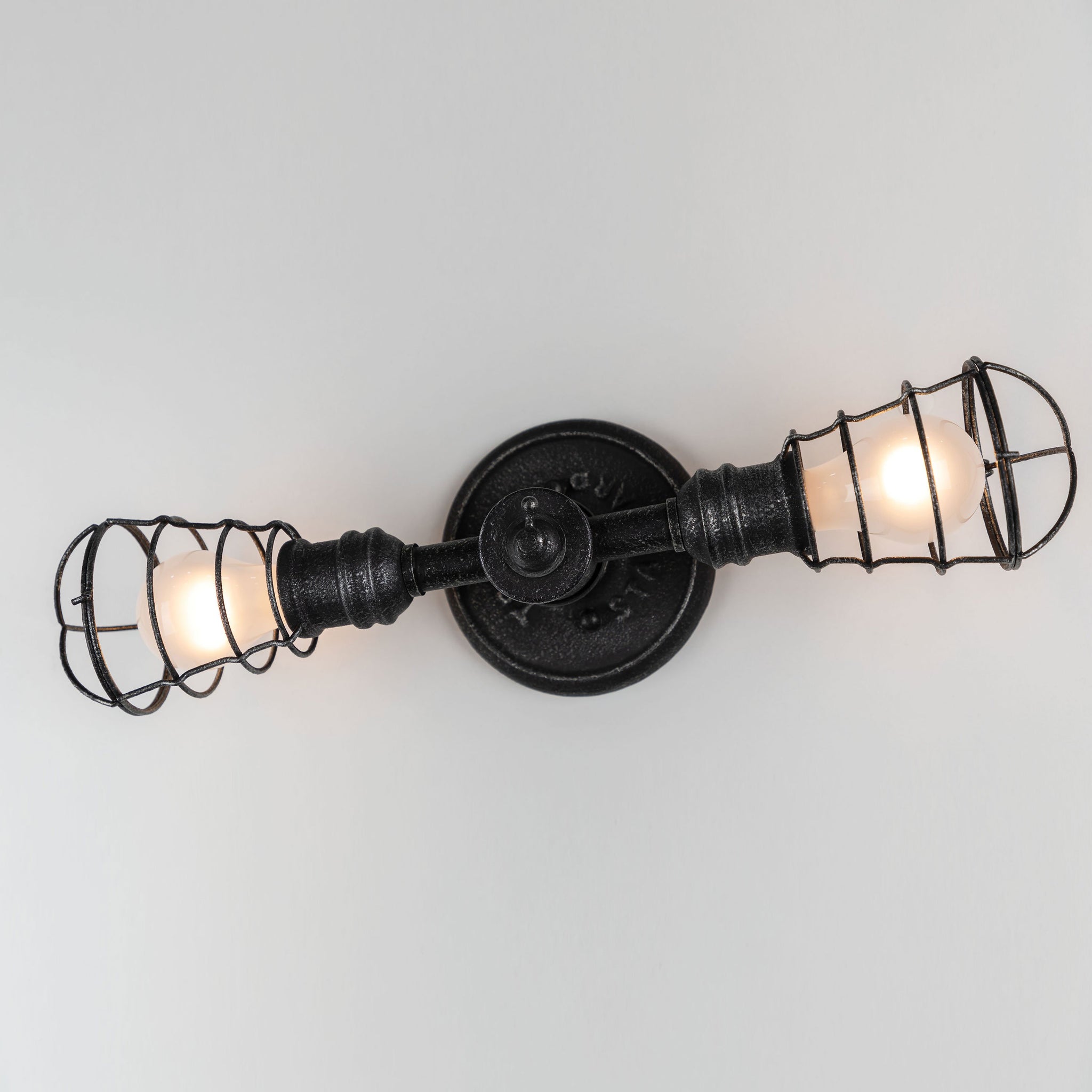 Stamped branding and an old silver finish highlight the modern industrial details of the Conduit Double Wall Light from Troy Lighting.