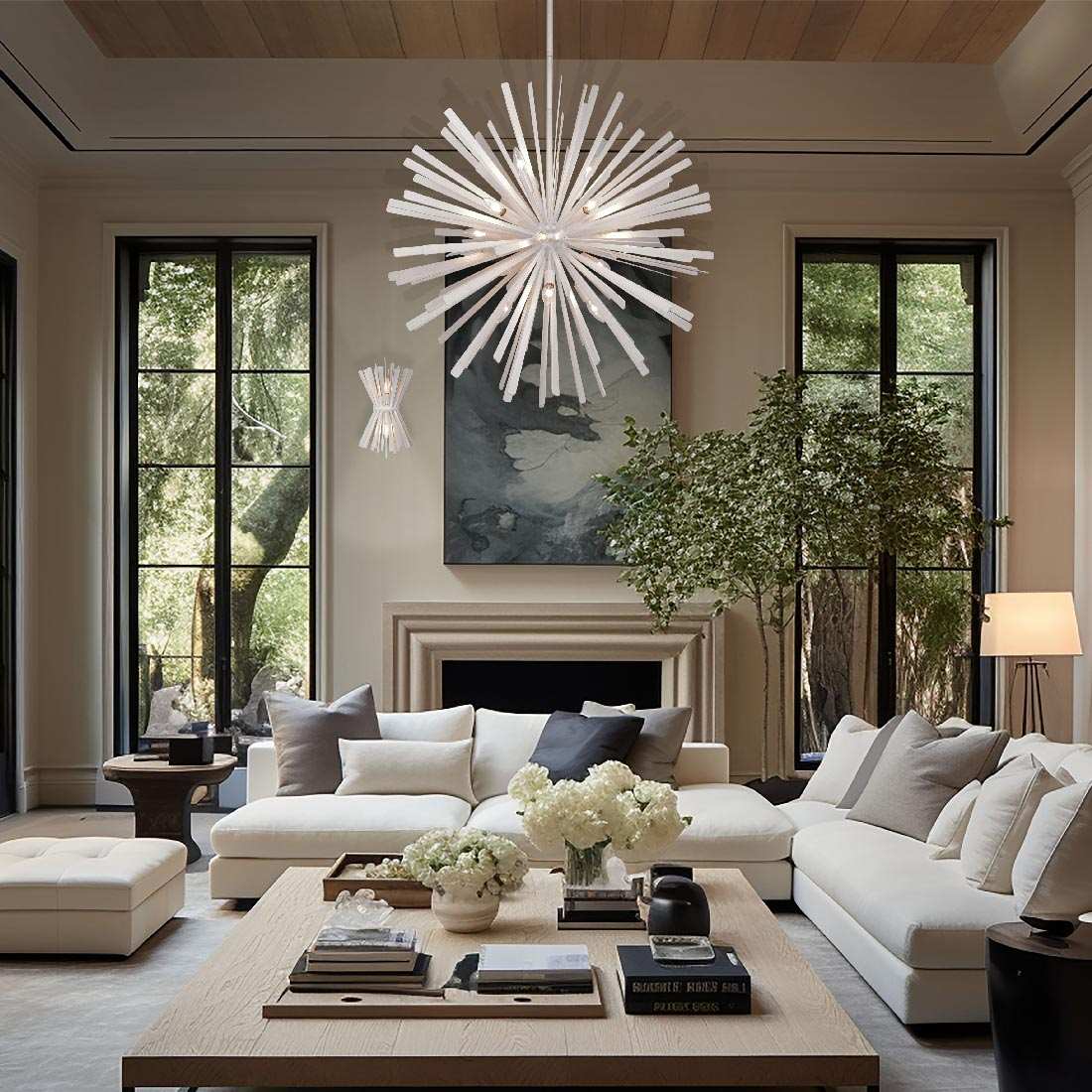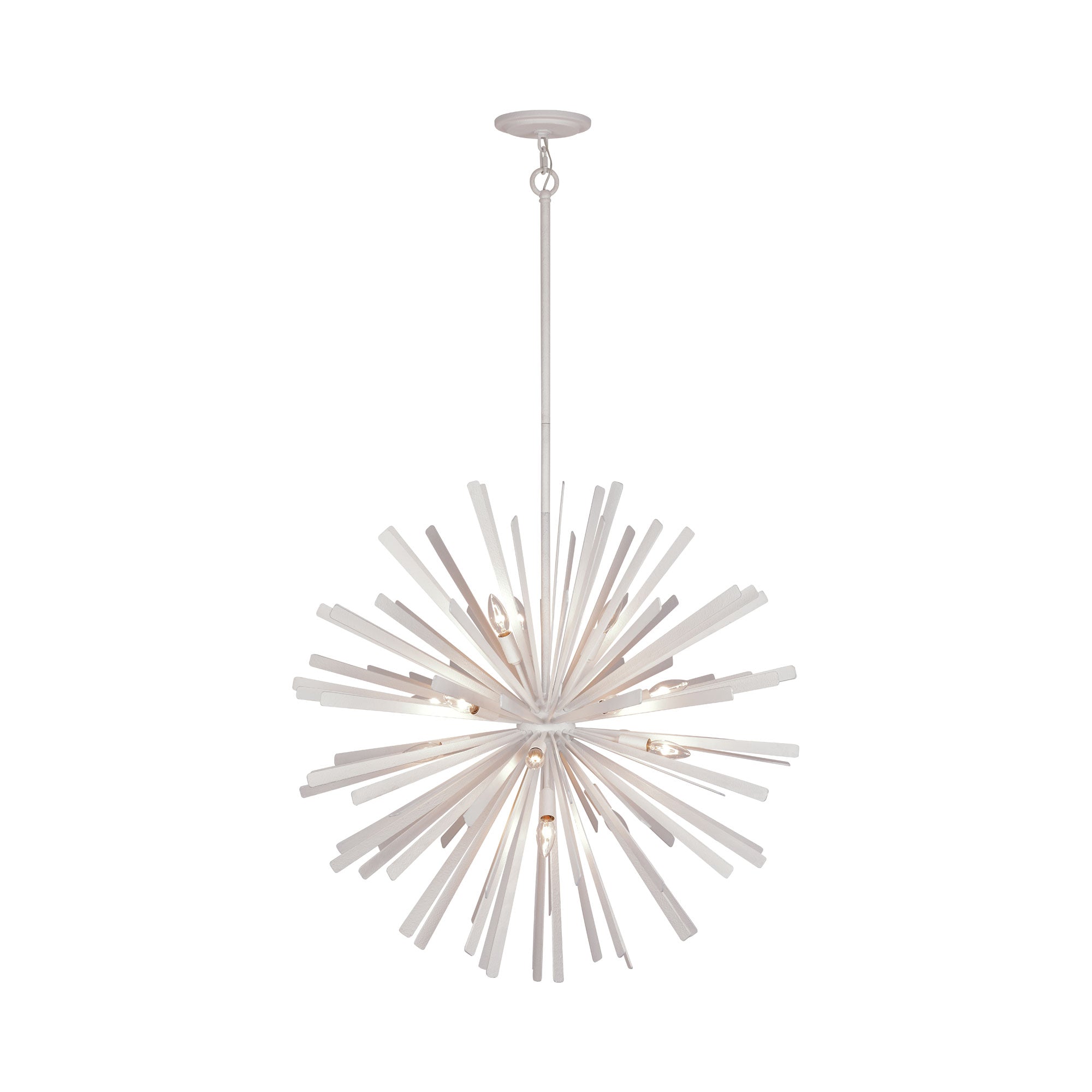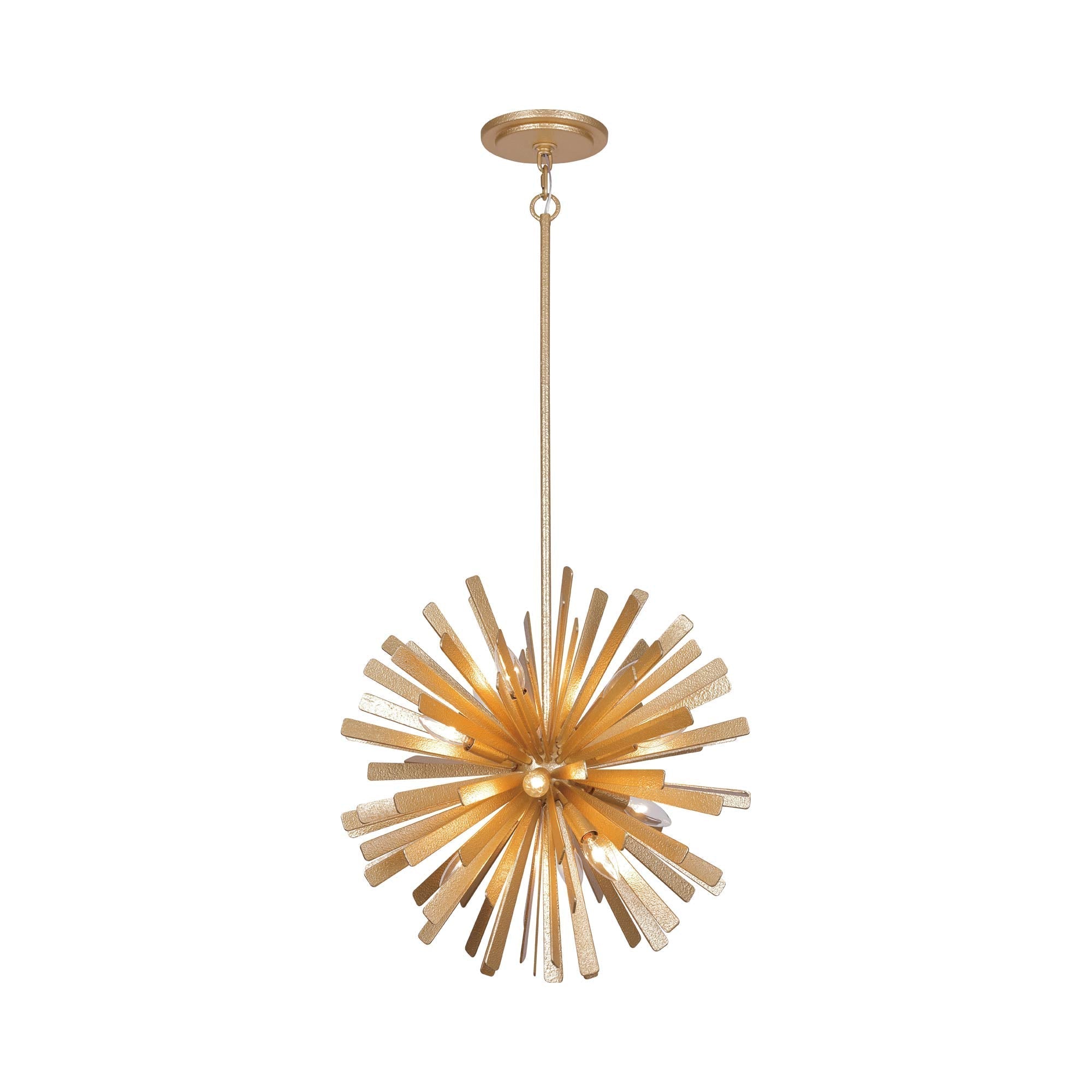 Chic starburst silhouetting creates a fresh, almost festive ambiance for the Confluence Pendant Light from Metropolitan Lighting. A striking choice over an entry or in a bedroom, it's an elegant infusion of sculptural allure in any space. Lights are tucked within its center, creating a bright, bold interplay of light and shadow to create a stellar display in your home.