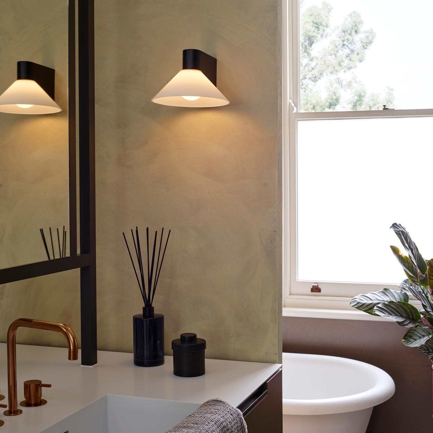 The Conic Wall Light from Astro Lighting infuses a dose of charm to bath spaces and living areas dedicated to festive ambiance. A cool conical silhouette features a tapered shade affixed to a shapely metal wall mount with nuanced shaping. The result is a mix of retro and modern, offering versatility and enticing personality.