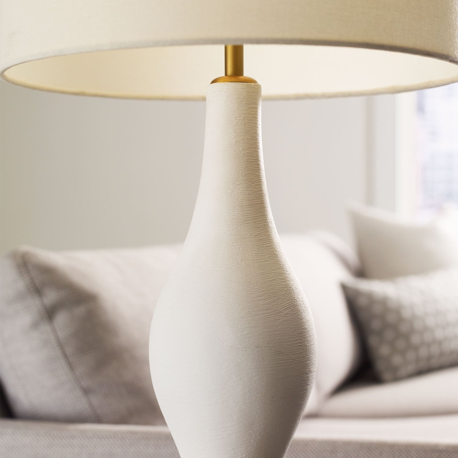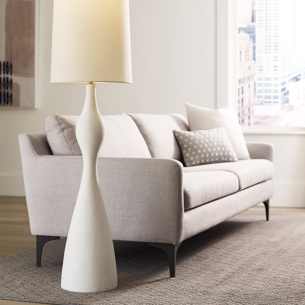 The Constance One Light Floor Lamp features a smooth white plaster finish and a beautifully balanced curving base that was inspired by modern sculpture, the Constance Floor Lamp adds artistic character to a room. Topped with a linen shade, which emits a soft illumination, it is a versatile piece that works well in most spaces, from living rooms to bedrooms.