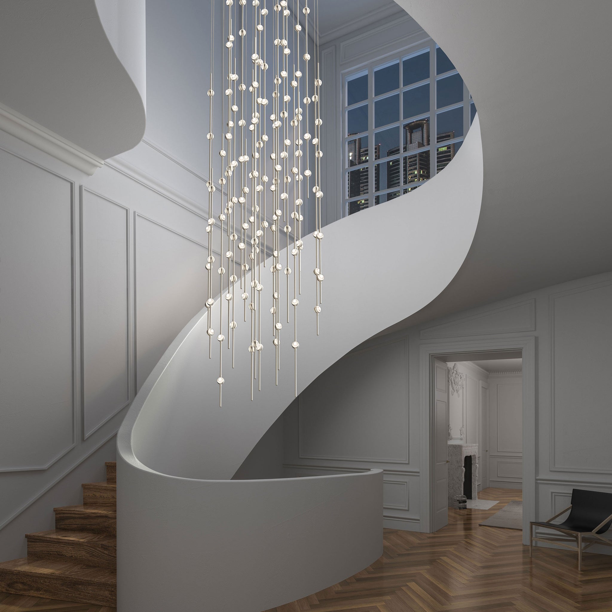 Unleash the vintage charm of jewelry to create a romantic ambiance with the Constellation® Andromeda Round LED Pendant Light from Sonneman Lighting, adding a delicate aesthetic and contemporary elegance along with soft lighting in a custom space.