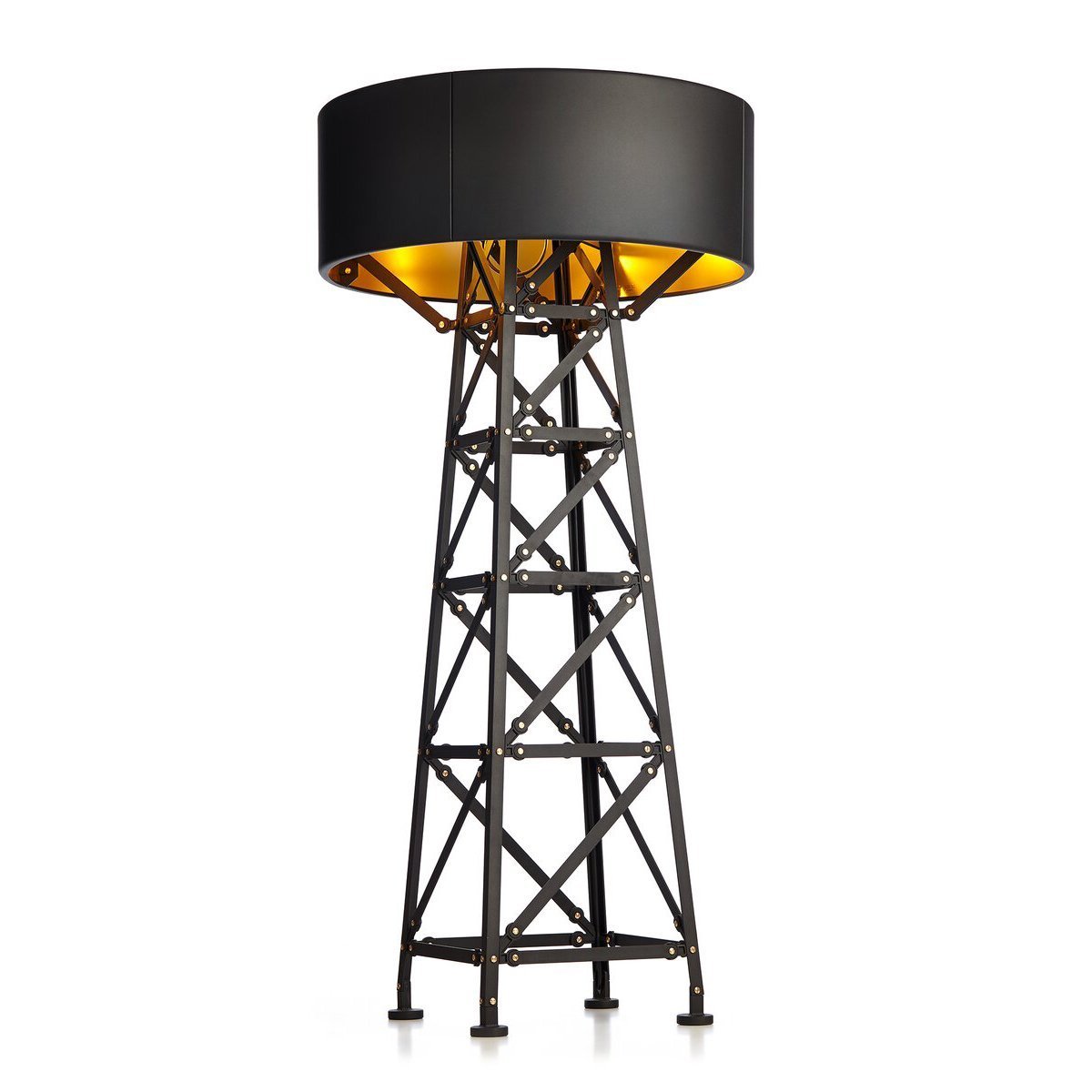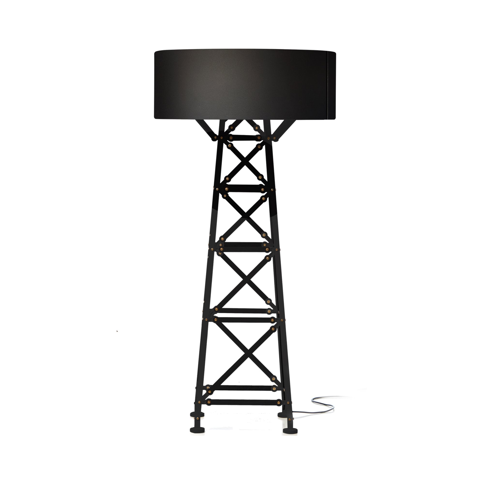 A towering Construction Floor Lamp from Moooi combines playful and vintage flair. Perfectly placed by an armchair on in a study, this lamp offers architectural allure from all angles.