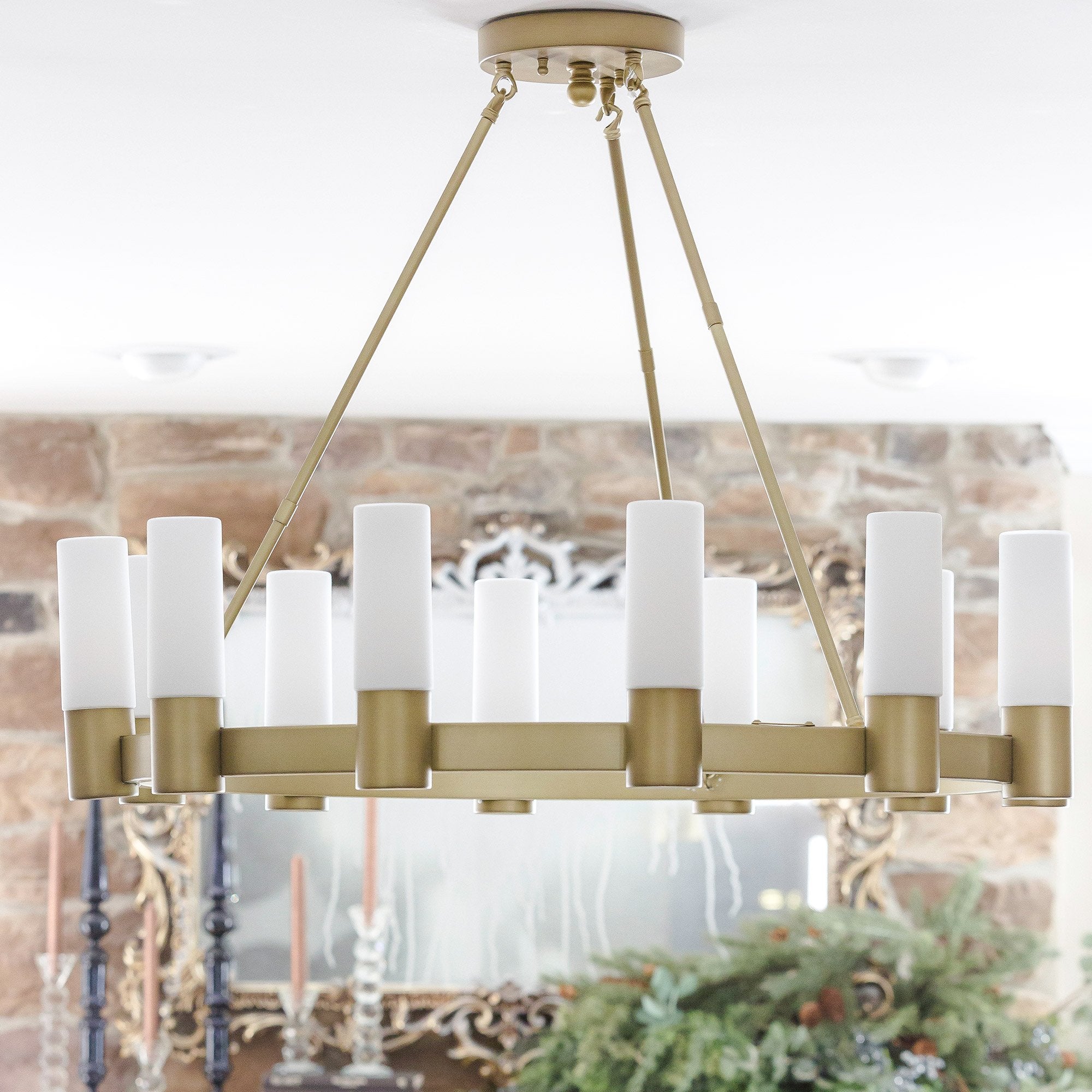 Multiple cylinder shades add decadence to the metal frame of this Contessa Chandelier from Maxim Lighting, offering a tasteful industrial twist to a modern fixture.