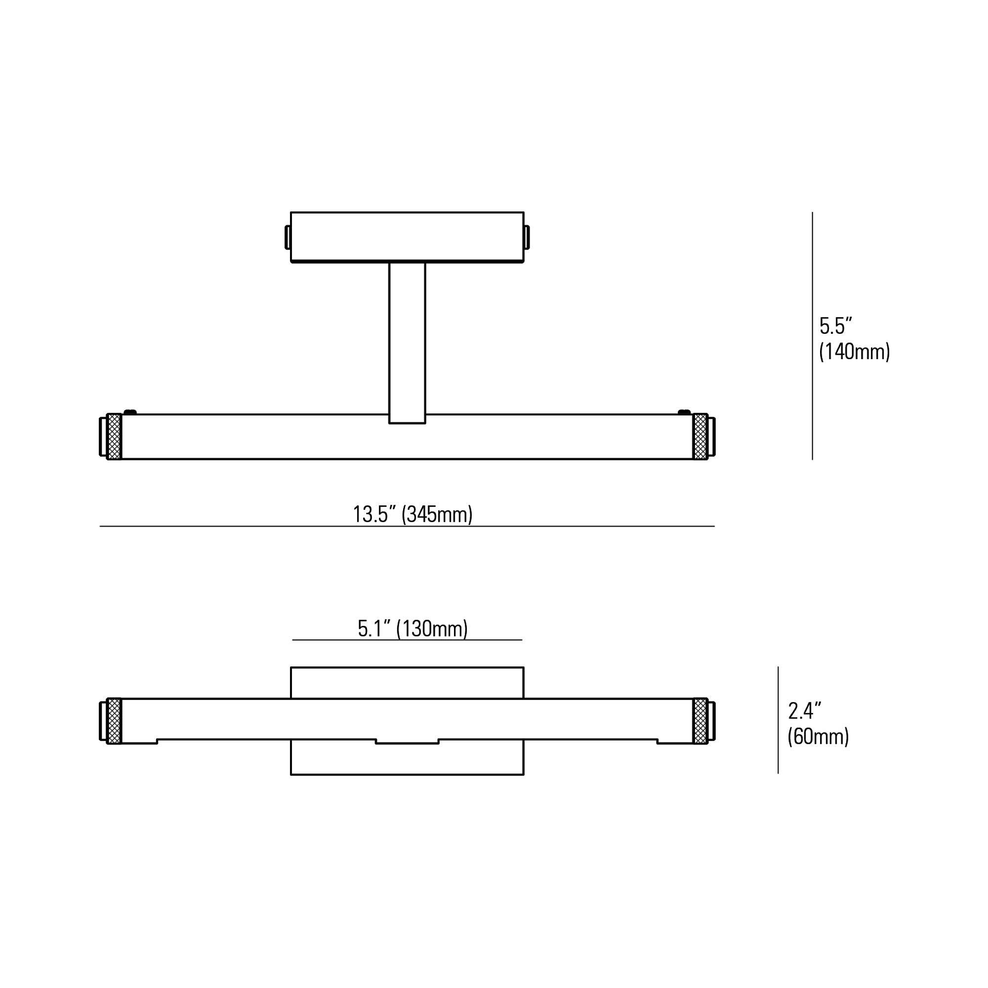 - Short: 13.5"W X 2.4"H; 5.5" Extension
