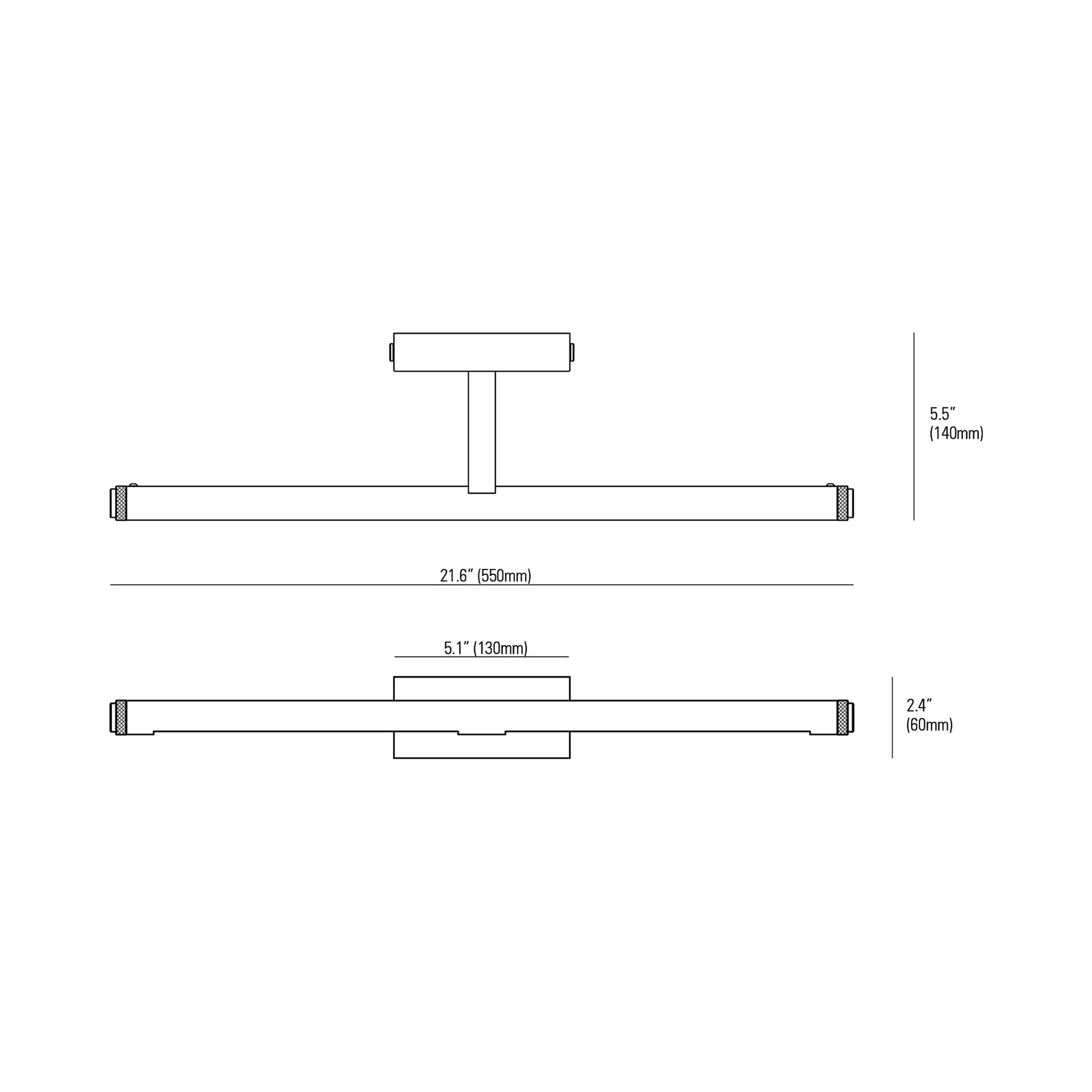 - Long: 21.6"W X 2.4"H; 5.5" Extension