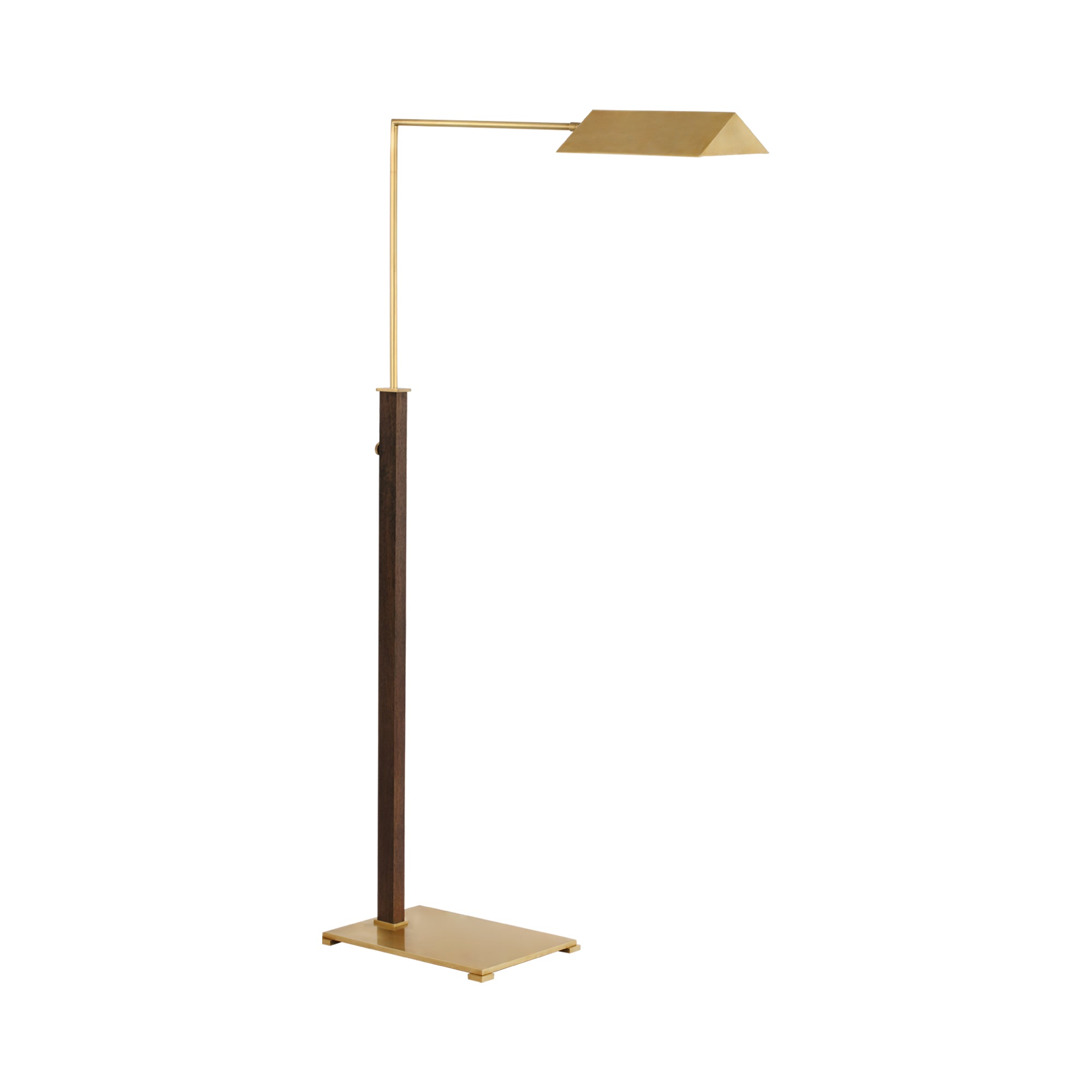 The Copse Floor Lamp from Visual Comfort Signature easily updates the classic vintage pharmacy style light source that has lingered through the ages. With a crisp and asymmetrical linear silhouette, this metal lamp adds wood accents, creating a warm, rustic feel. Height adjustability leads to custom lighting direction, perfect for reading.