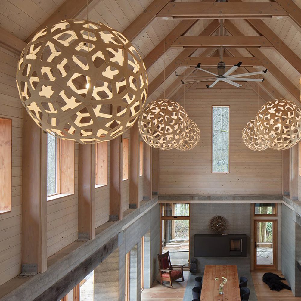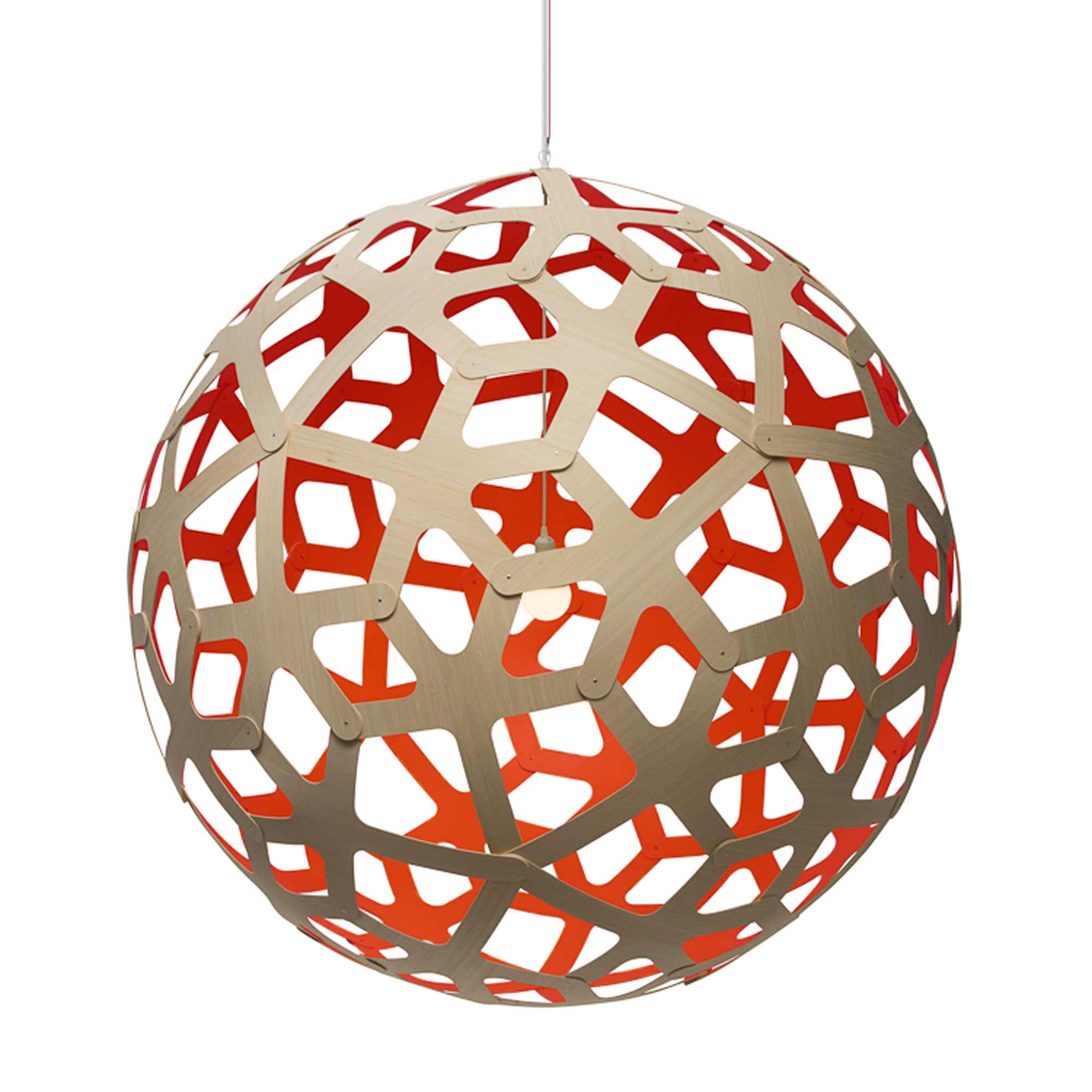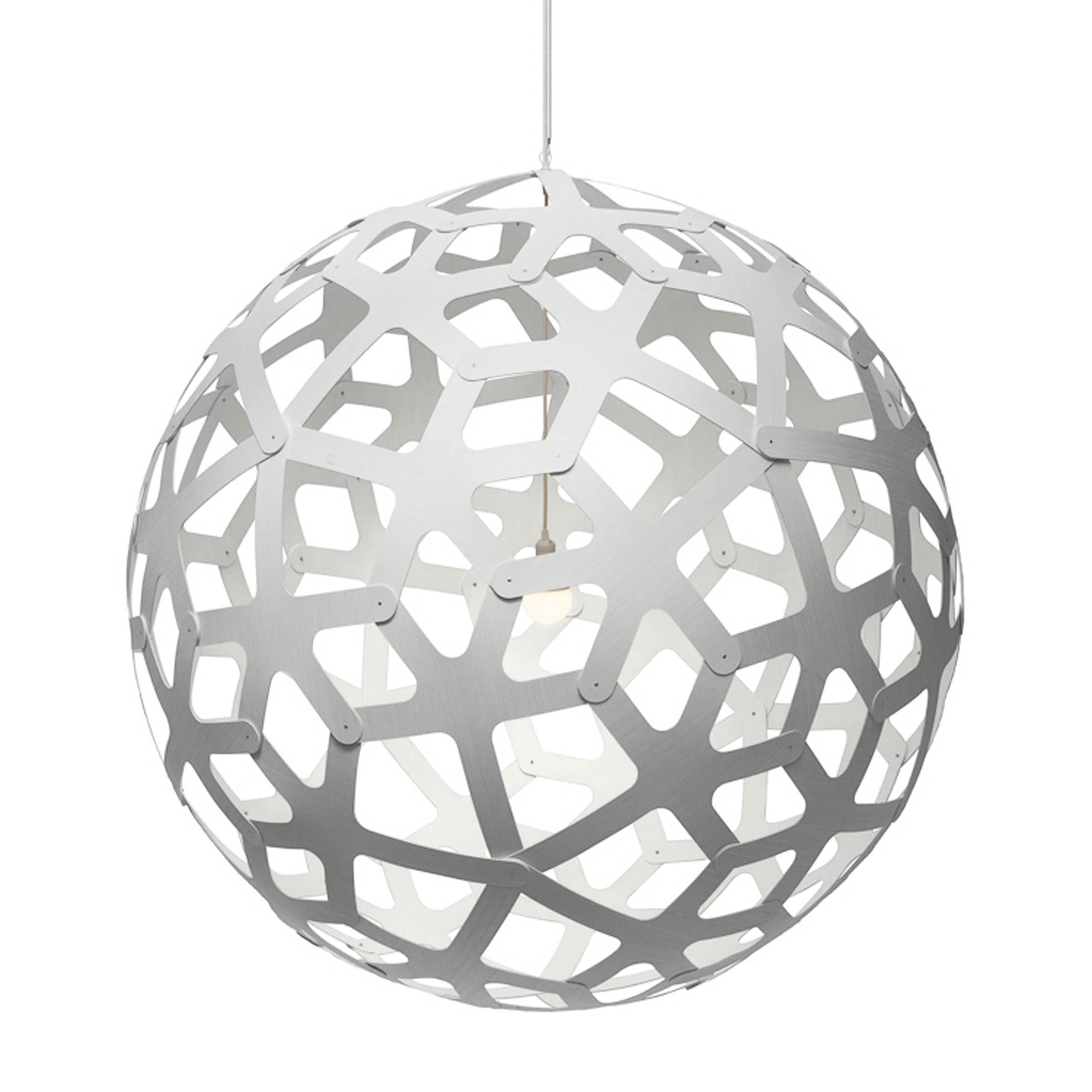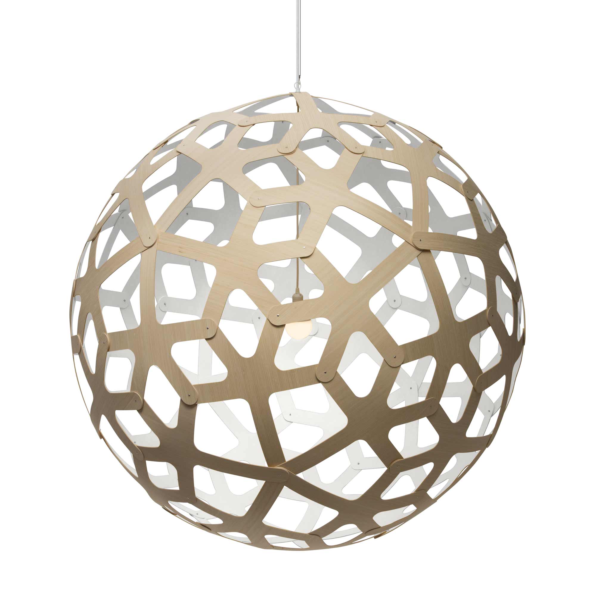 Simply stunning alone or in series over a vast space, the Coral XL Pendant Light from David Trubridge brings the organic beauty of the sea directly into your home or business. A spherical silhouette is created with interconnected, geometric shapes that develop a lattice-like pattern casting enchanting shadows over surrounding surfaces.
