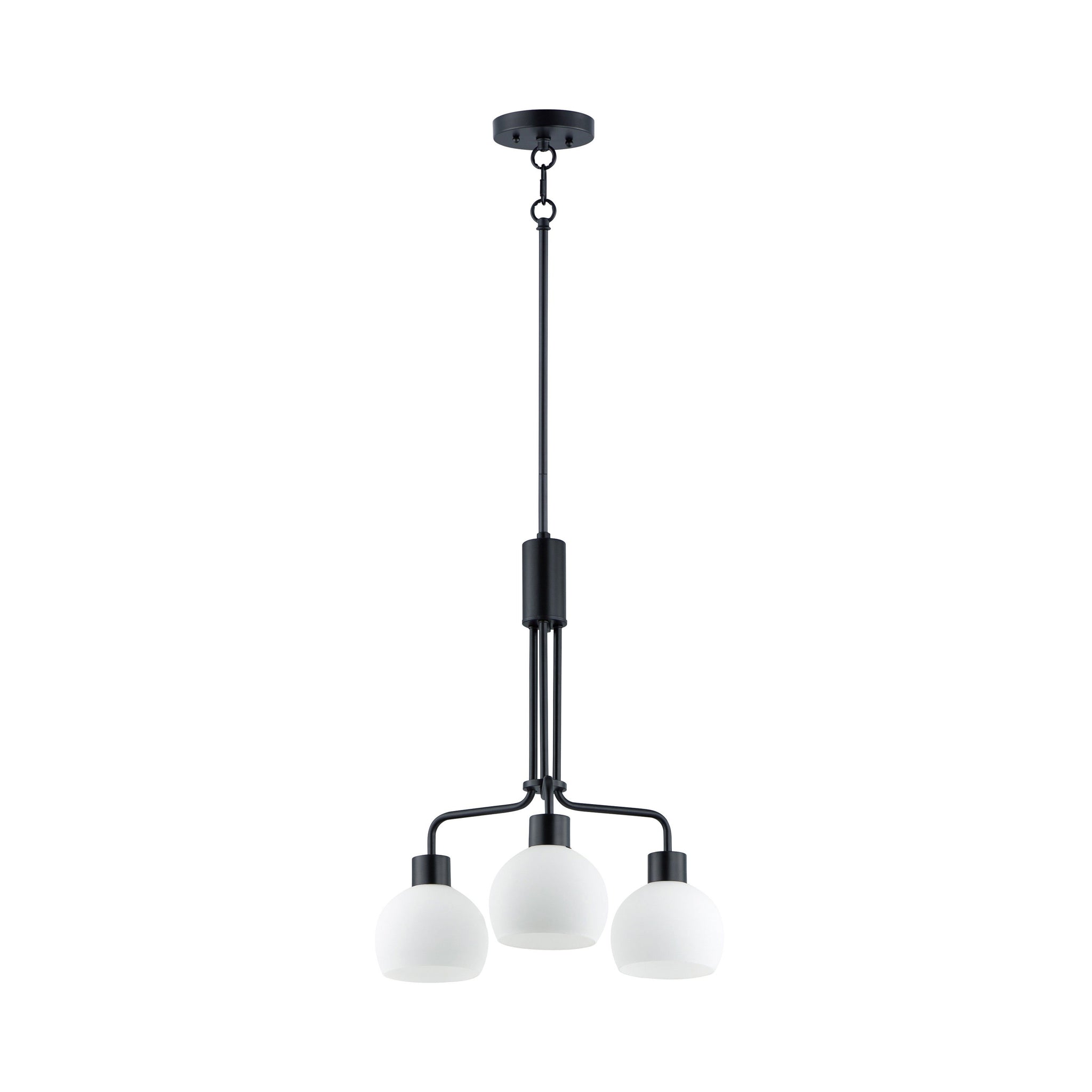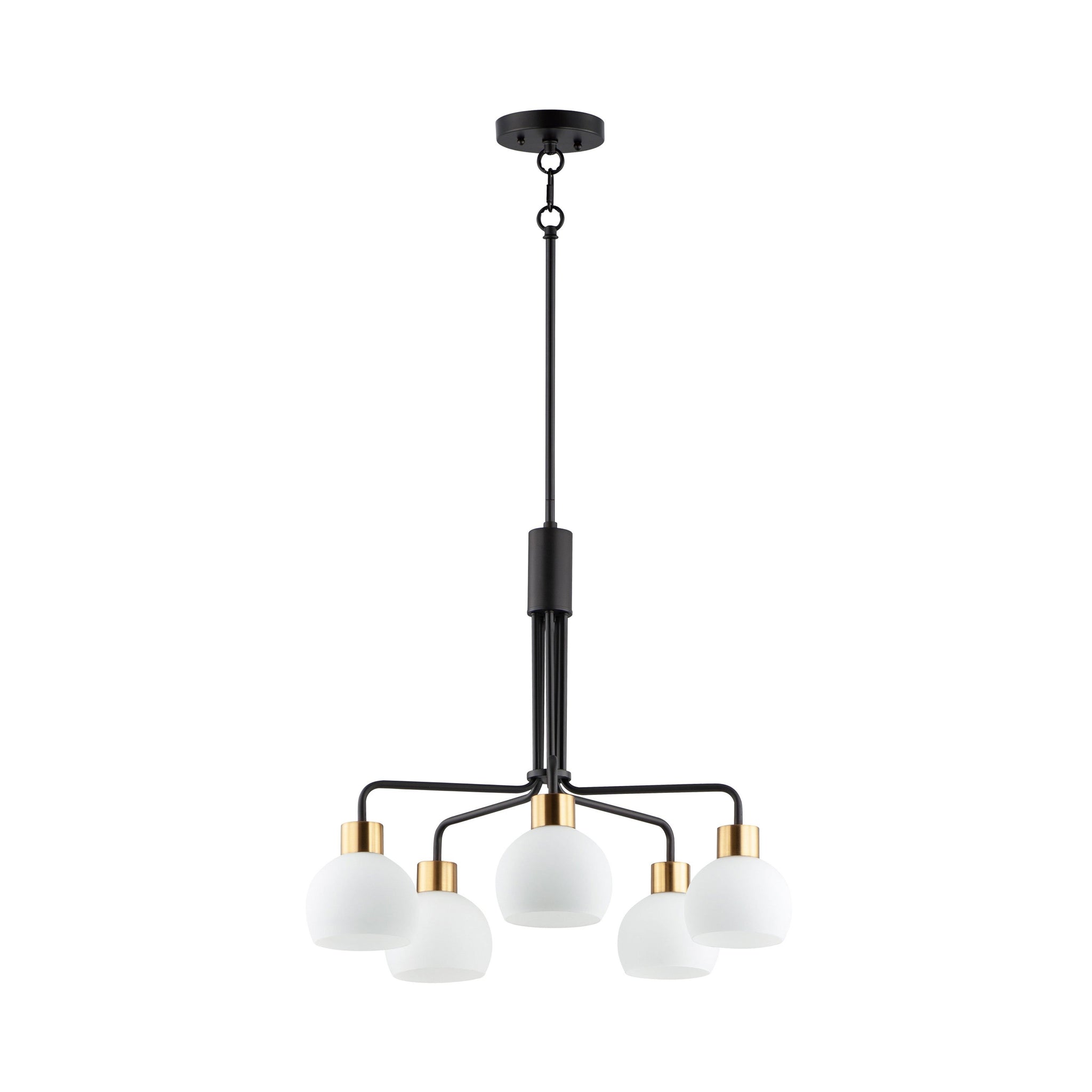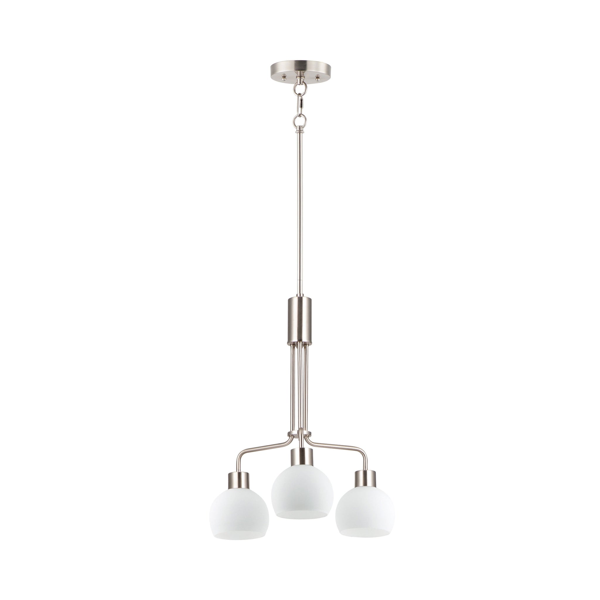 The Coraline Chandelier from Maxim Lighting becomes a focal point in a custom setting with its web-like frame and chic glass shades, available in a number of finish options to work seamlessly in a contemporary living or dining space.