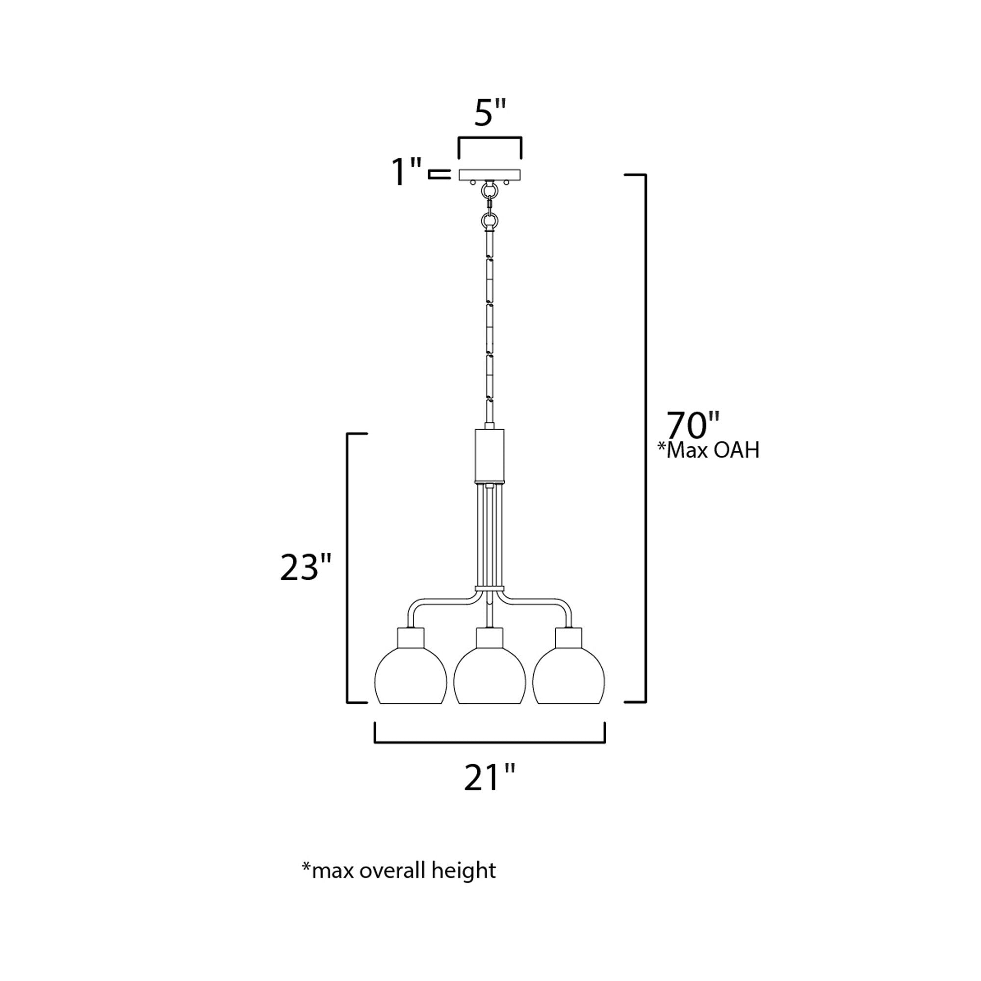 - 5-Light: 26.75"W X 23"H; 70" max height