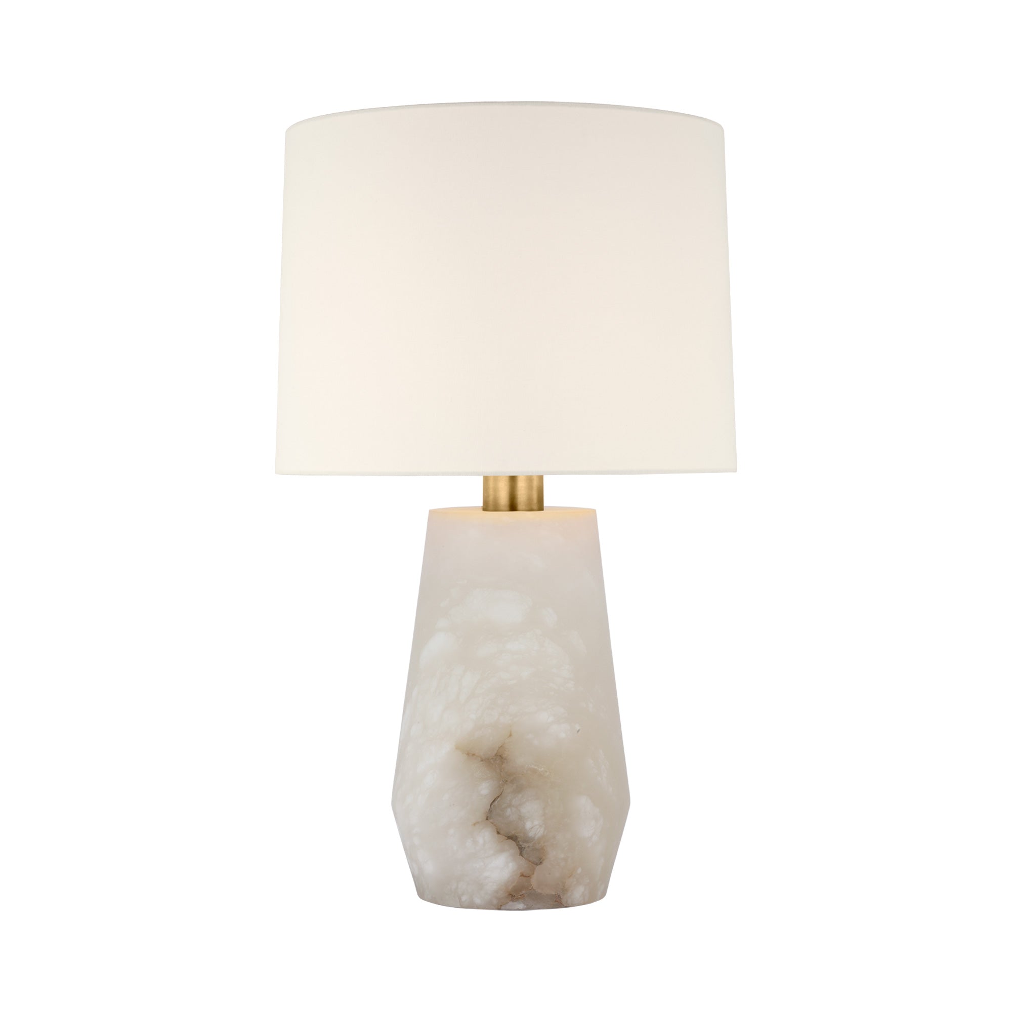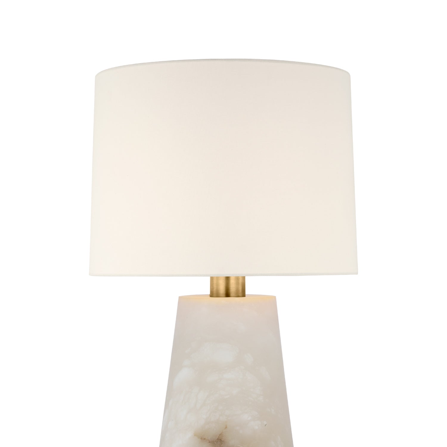 A delicate palette takes advantage of chic natural materials to bring elegance in lighting. Bedside placement, living room use, and any other setting in need of ambient lighting embraces the Corfu Table Lamp from Visual Comfort Signature, with ethereal natural alabaster and metal accents playing important parts. Versatile and relaxing, this lamp features a classic linen shade.
