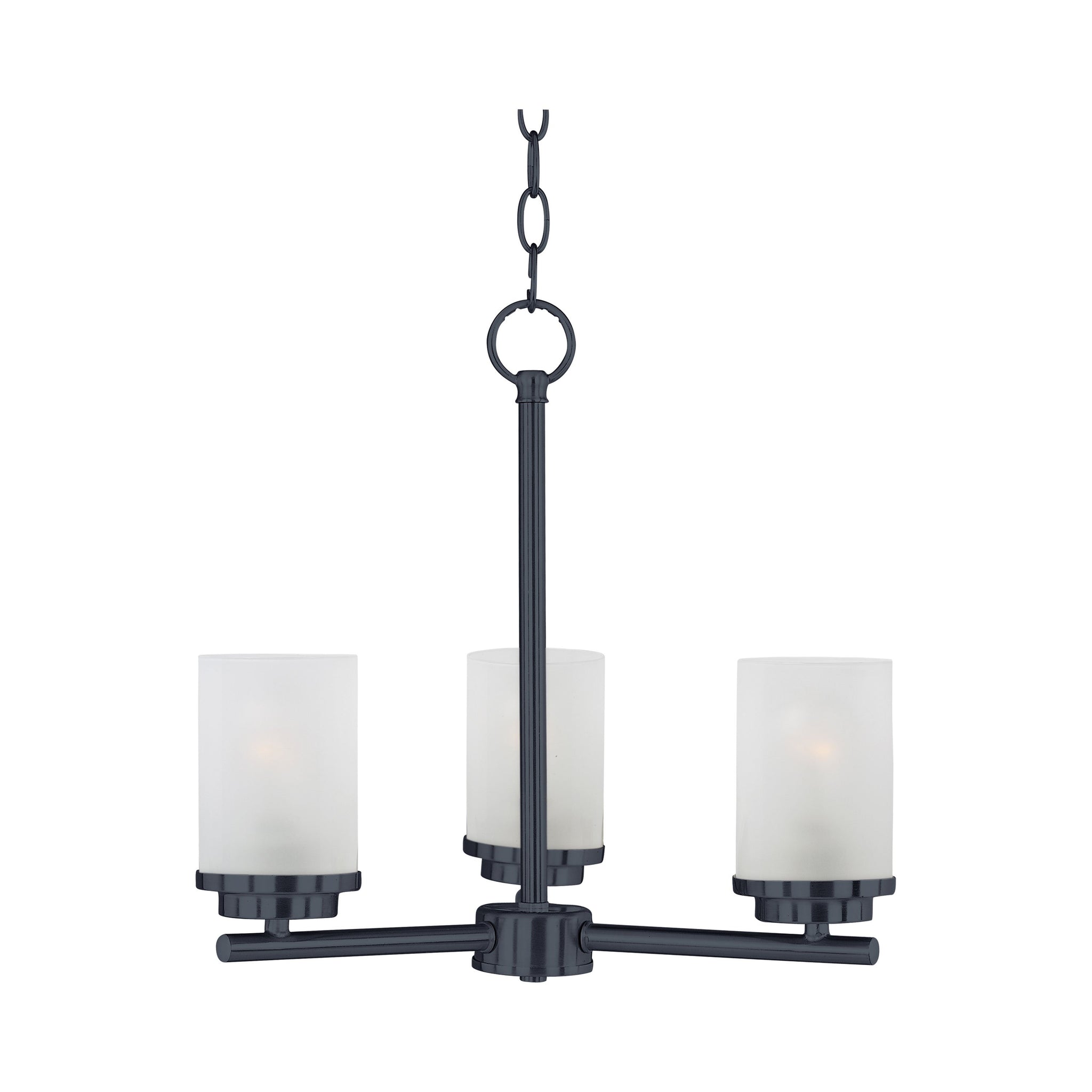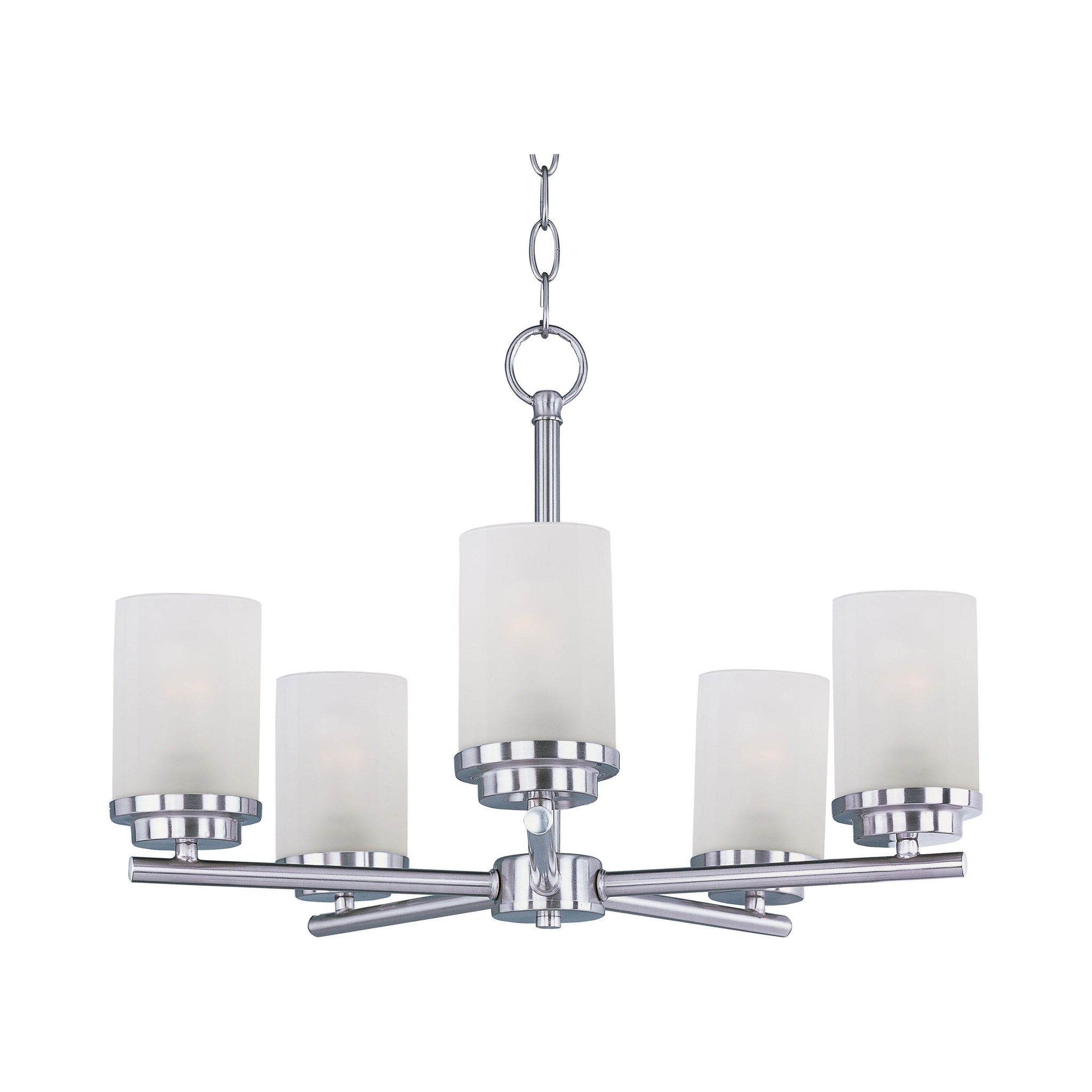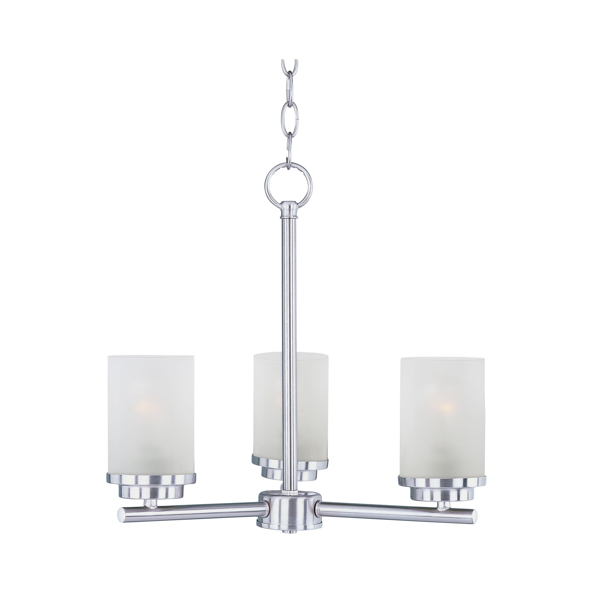 Minimalistic frames finished in Satin Nickel support cylinder of Frost glass shades. A clean, contemporary look at a very affordable price.