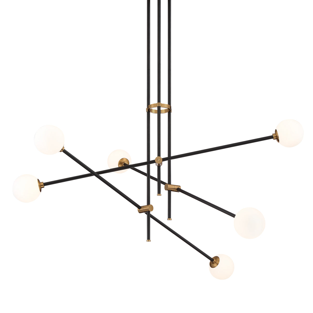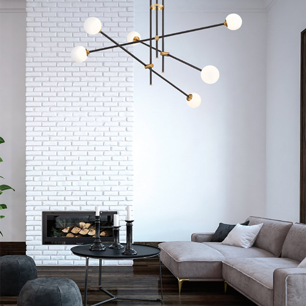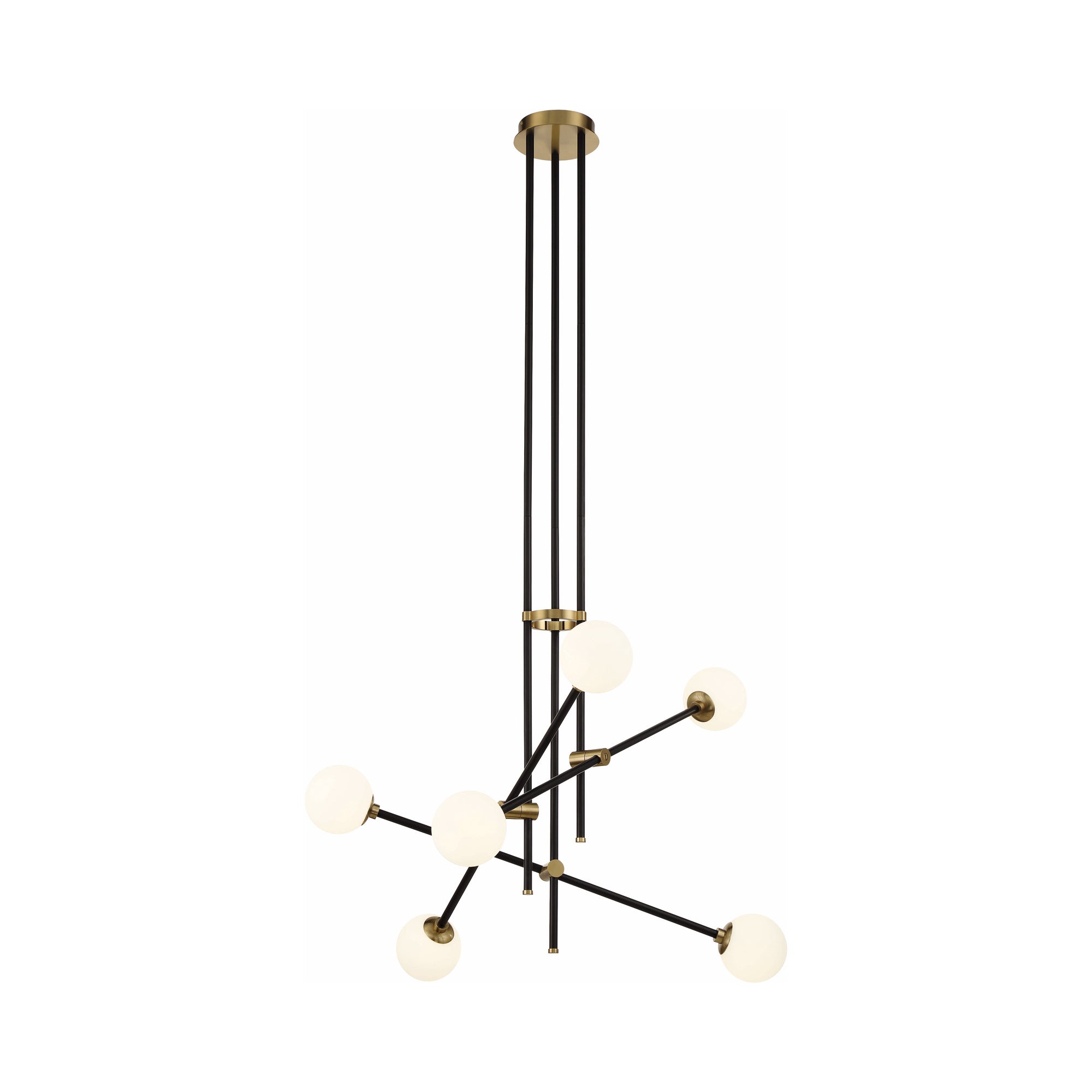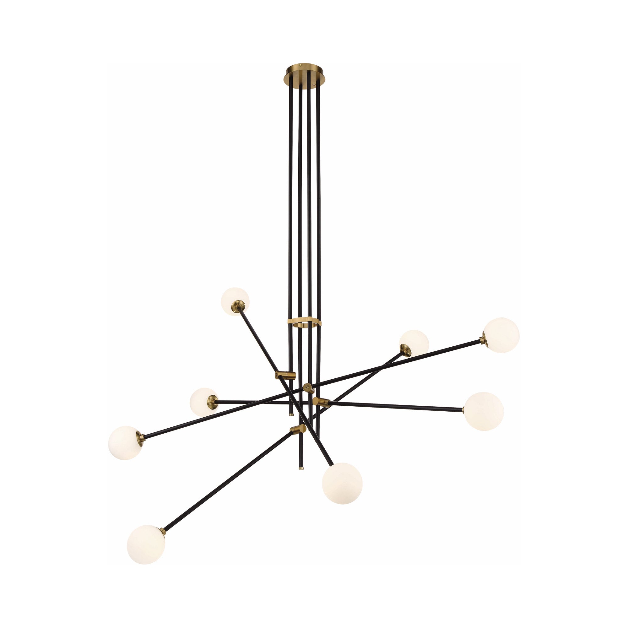 A striking arrangement of sleek metal lines gives the Cosmet Pendant Light from George Kovacs an inspiring design.