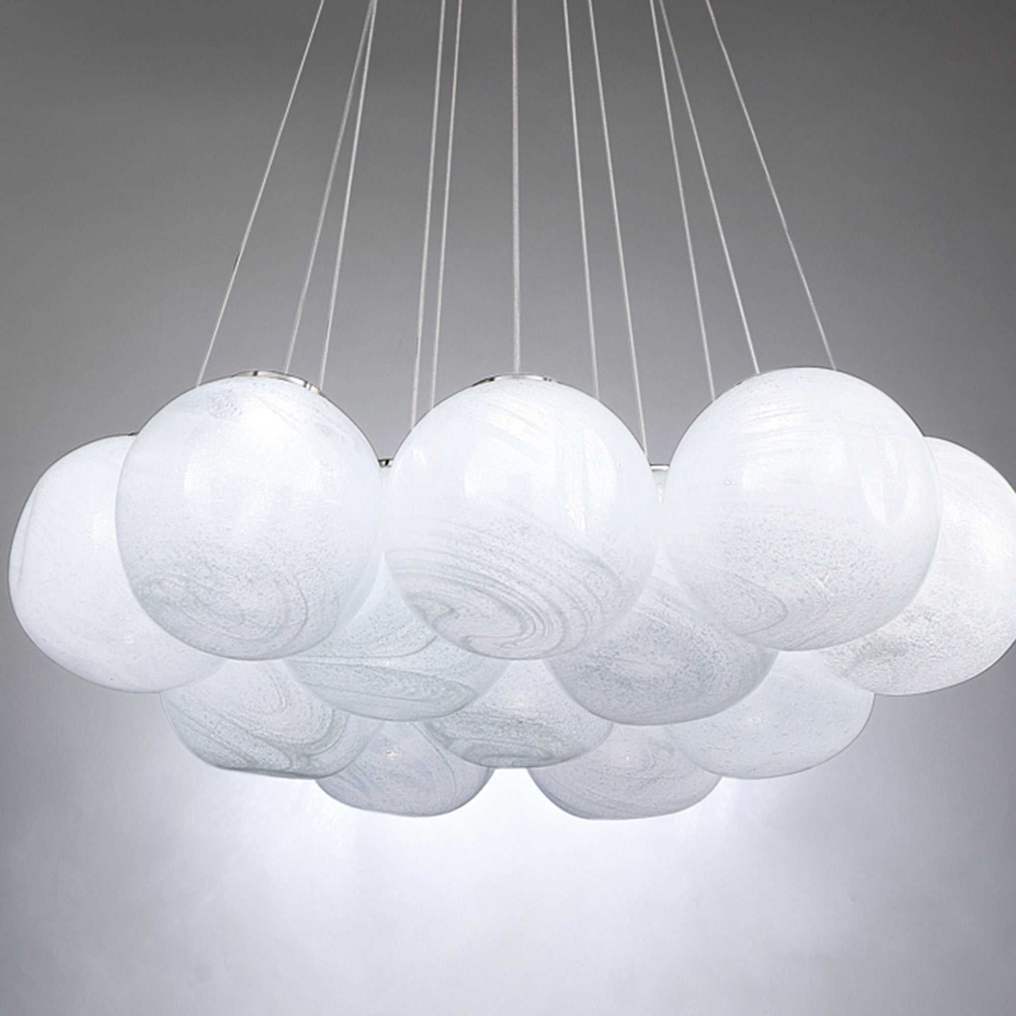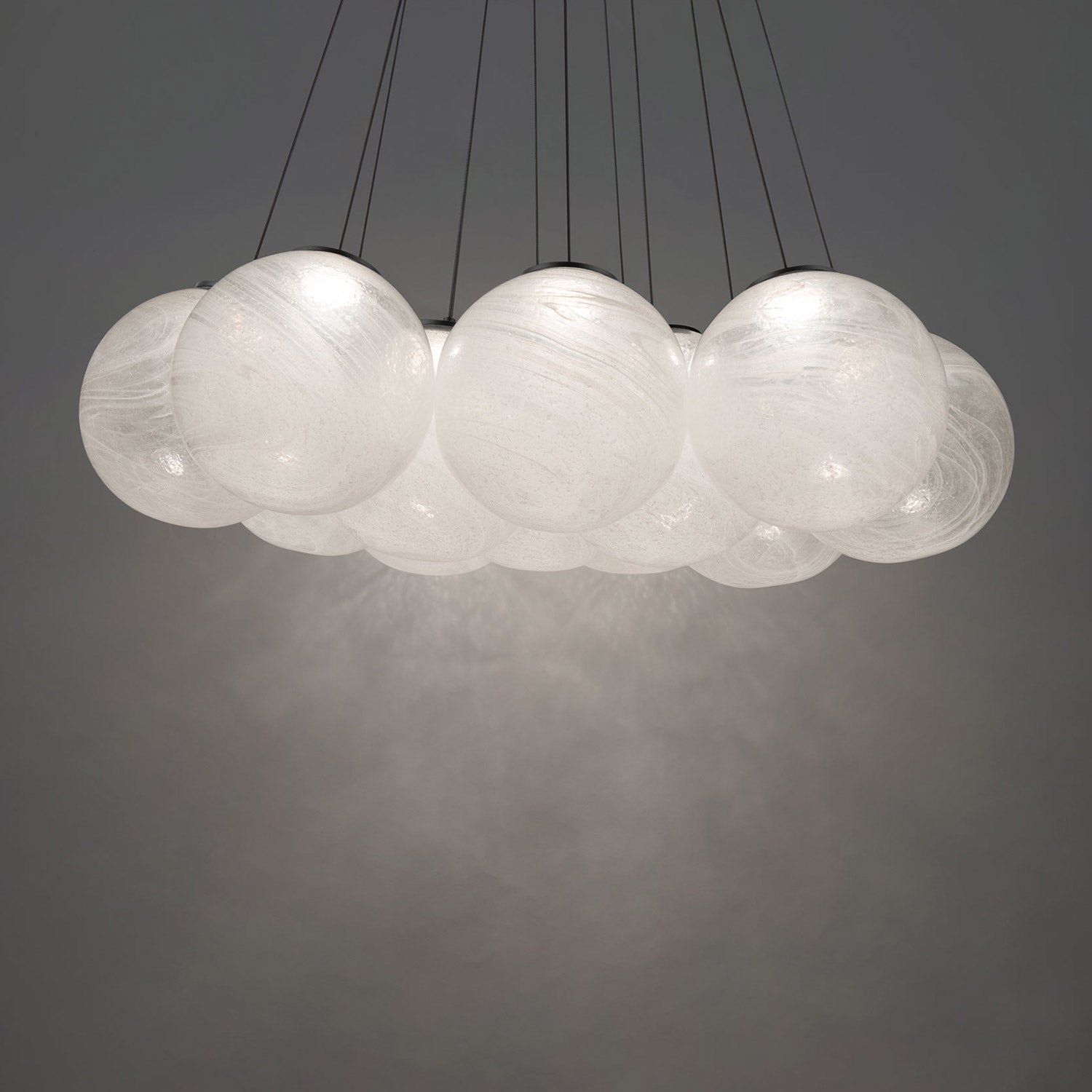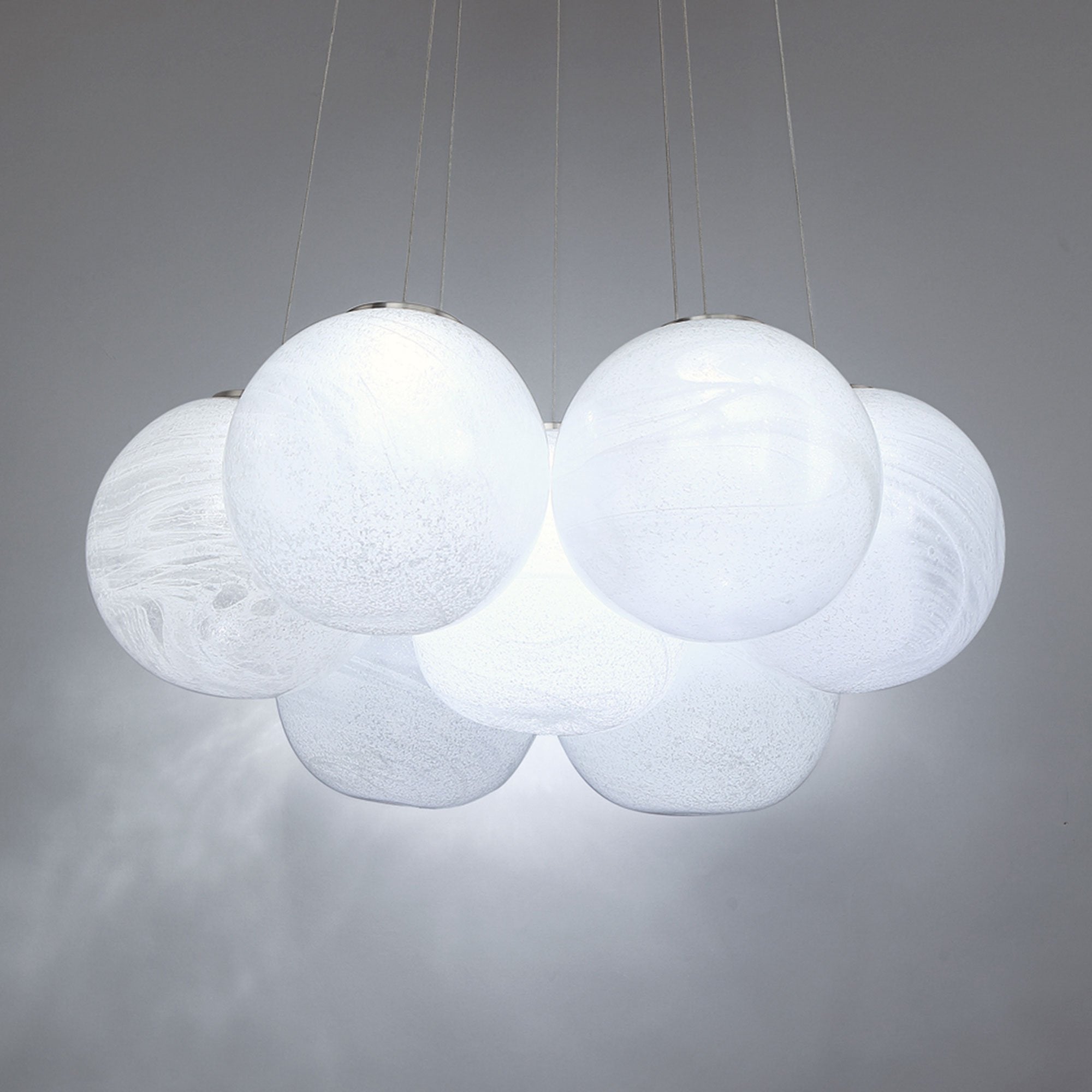 Marbled art glass shades create a cloud cluster of the engaging, whimsical Cosmic Crystal Multi-Light LED Pendant Light from Modern Forms.