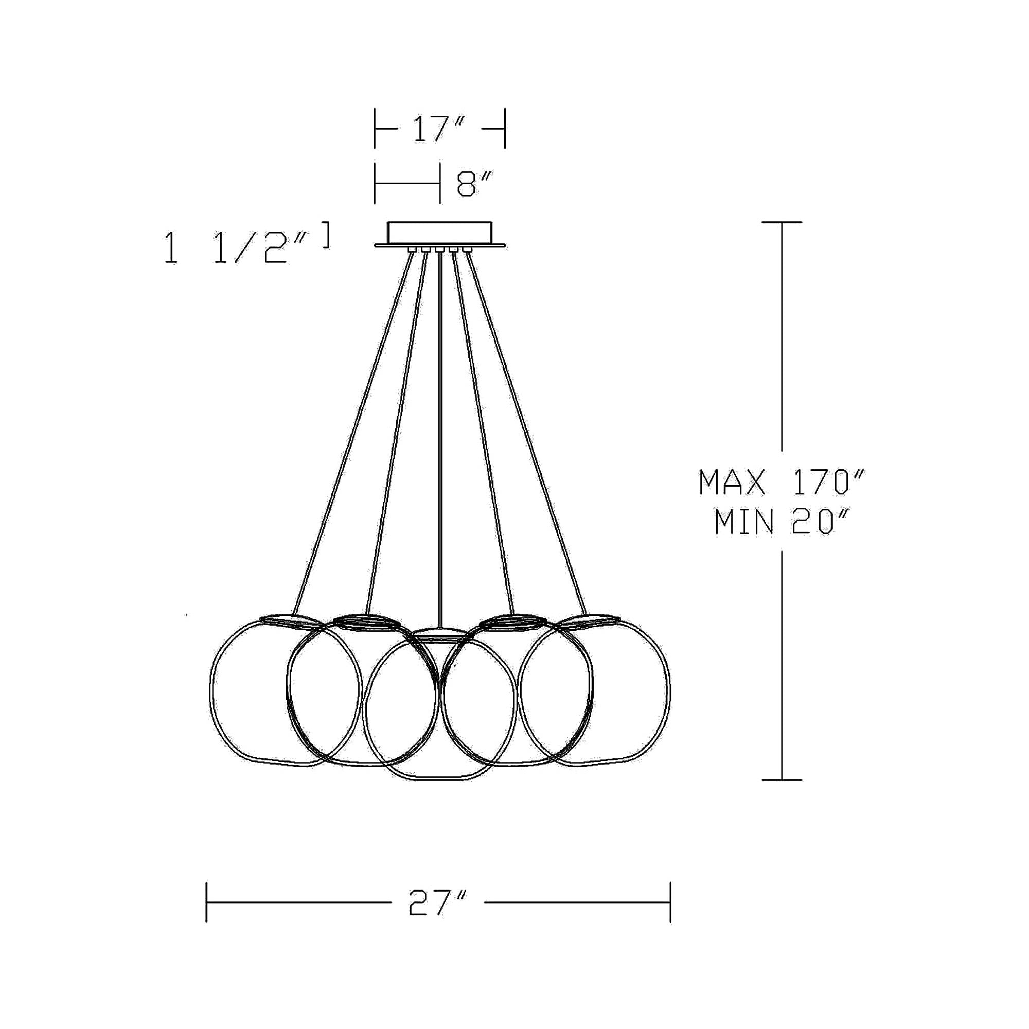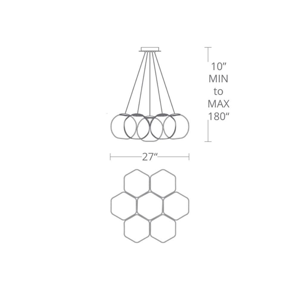 - 7-Light: 27"D X 10"H; 180" max height