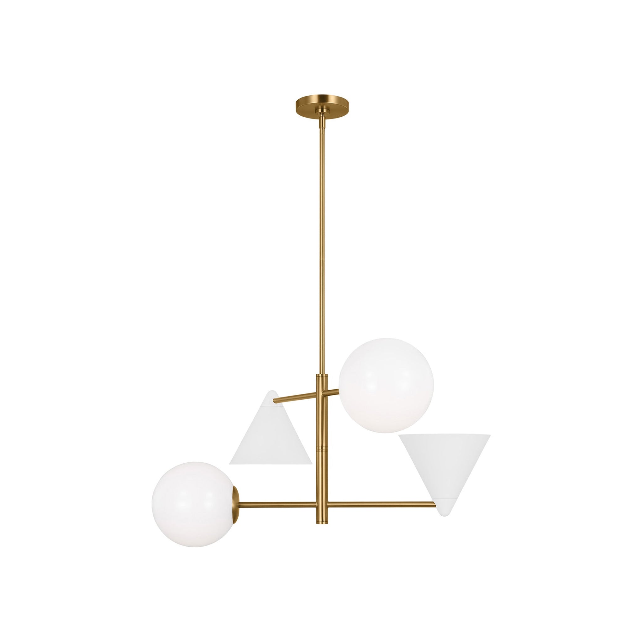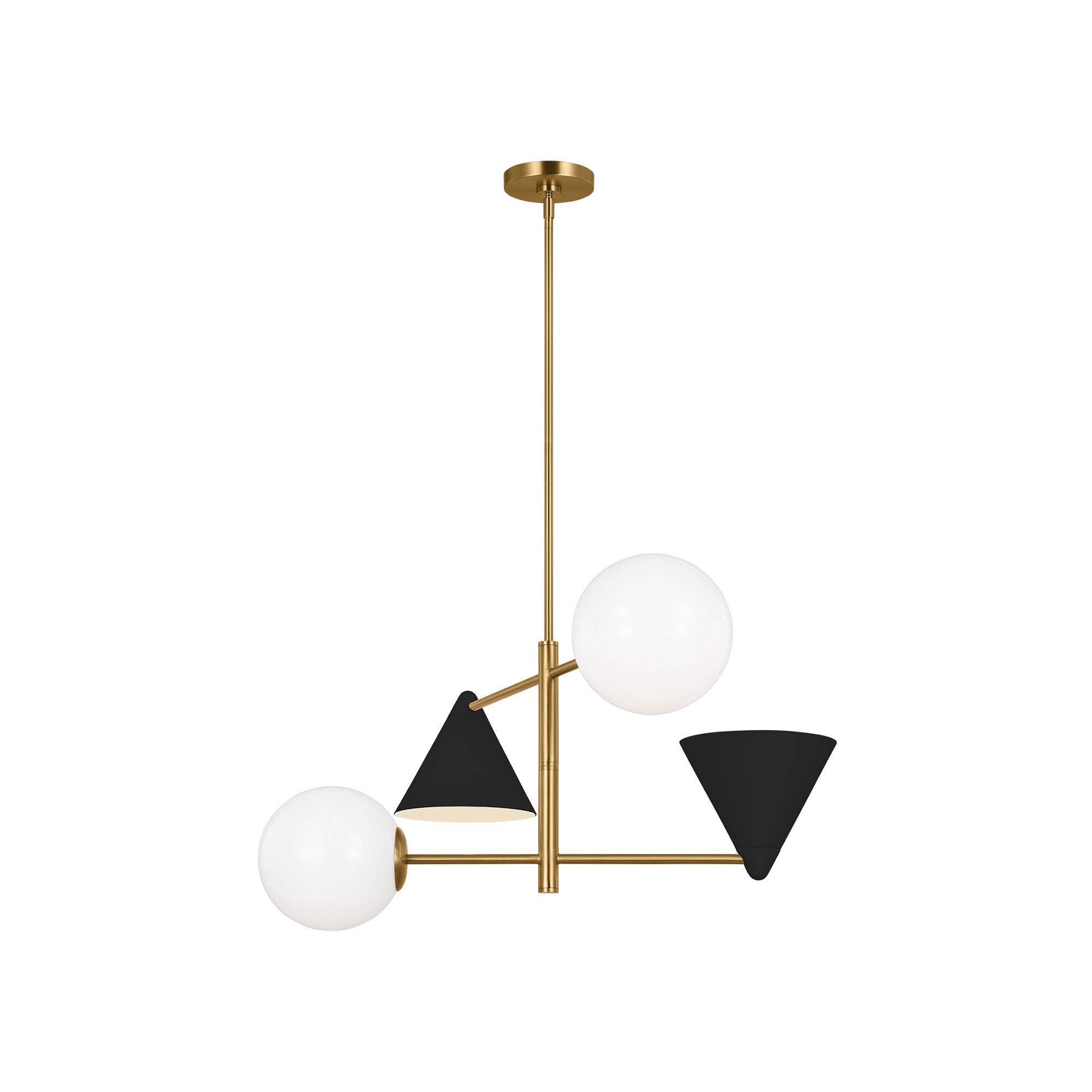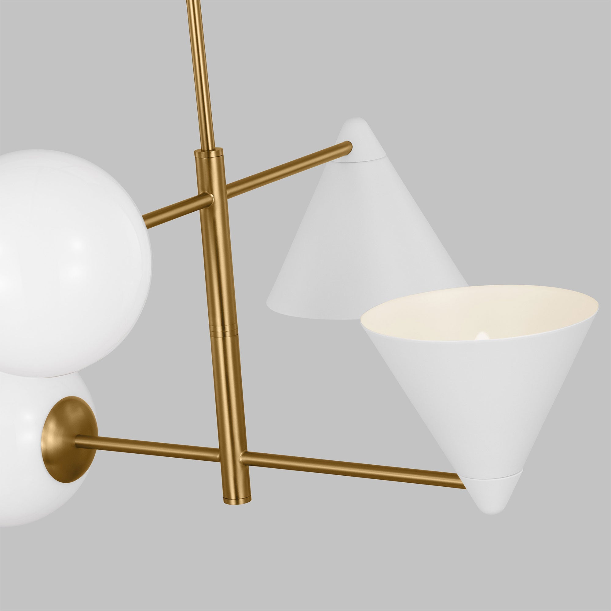 Simplicity is deceiving in the Cosmo Chandelier from Visual Comfort Studio. Orb and cone shades pair to perfection, creating an engaging, dynamic silhouette that bring whimsical elegance to your kitchen or dining room. Contrasting colors perfectly complement its statement-making silhouette.