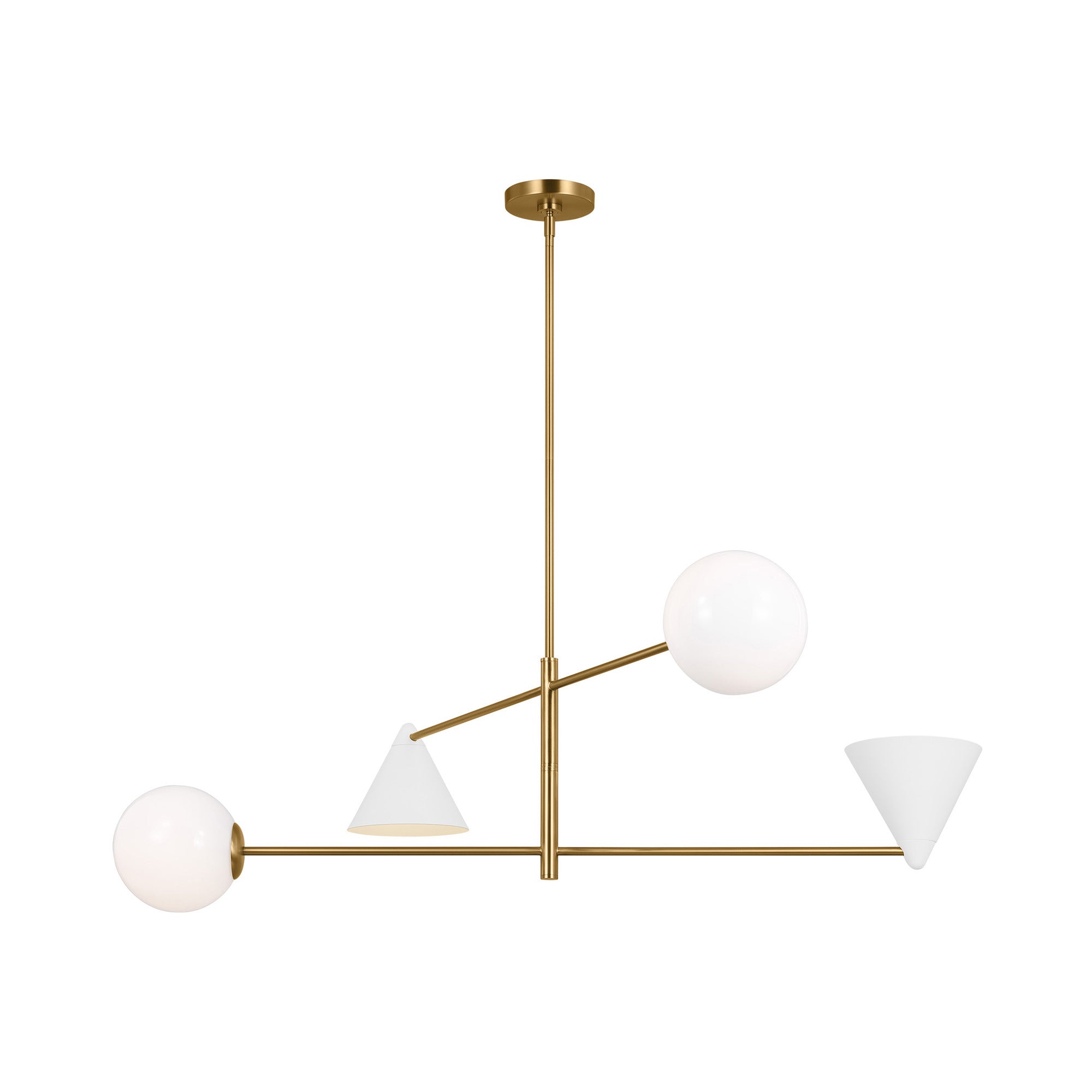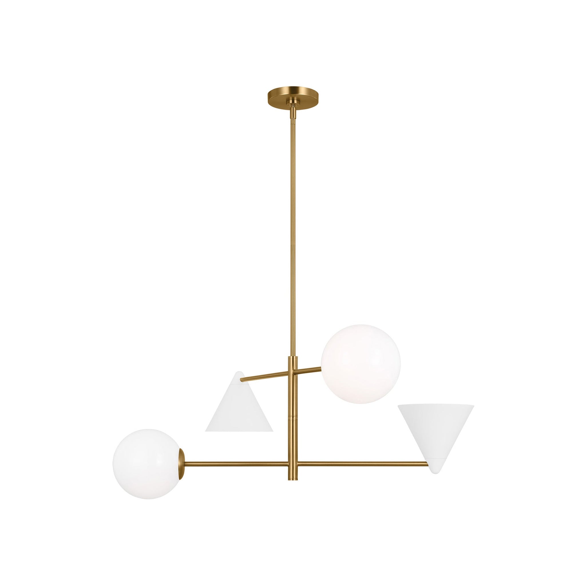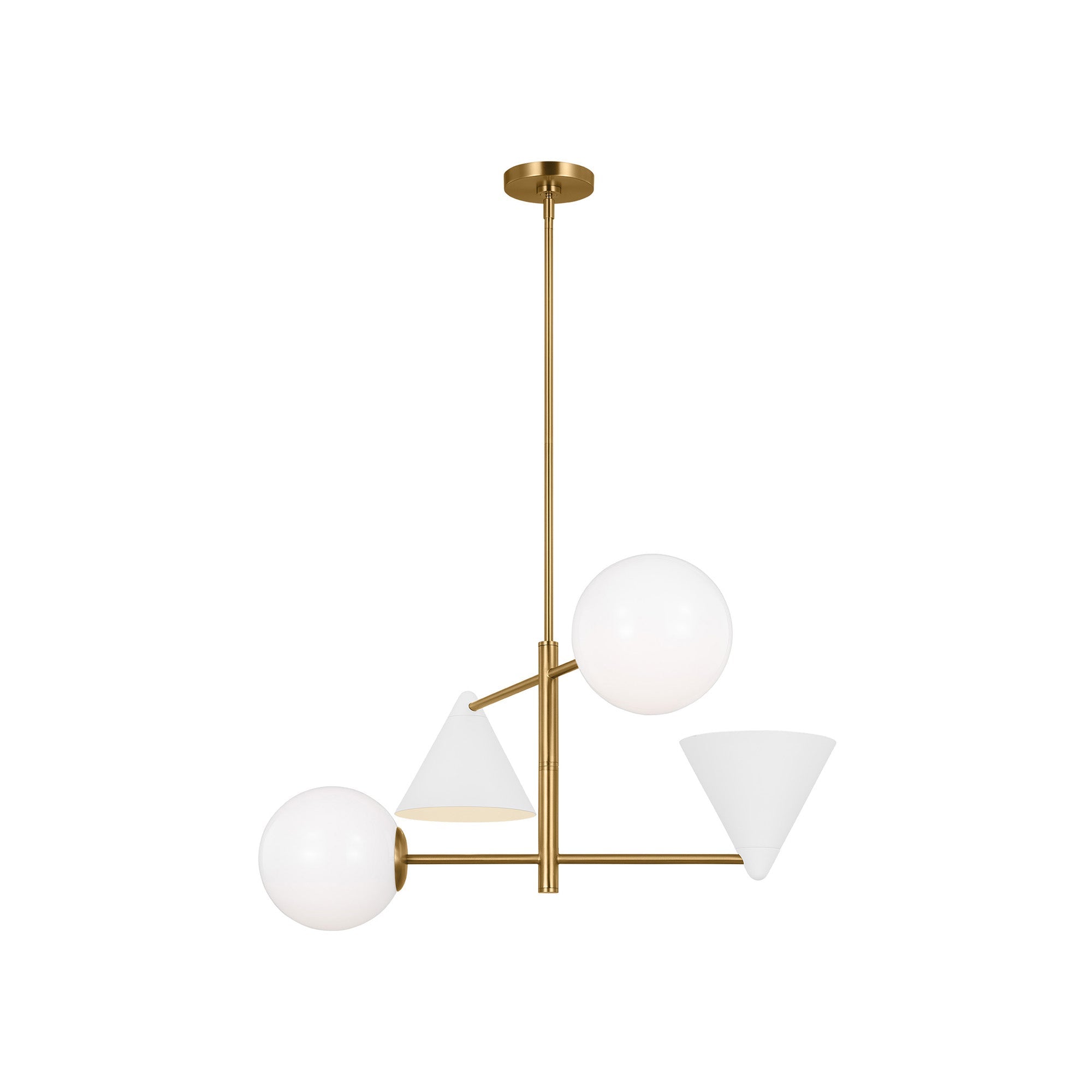 Simplicity is deceiving in the Cosmo Chandelier from Visual Comfort Studio. Orb and cone shades pair to perfection, creating an engaging, dynamic silhouette that bring whimsical elegance to your kitchen or dining room. Contrasting colors perfectly complement its statement-making silhouette.