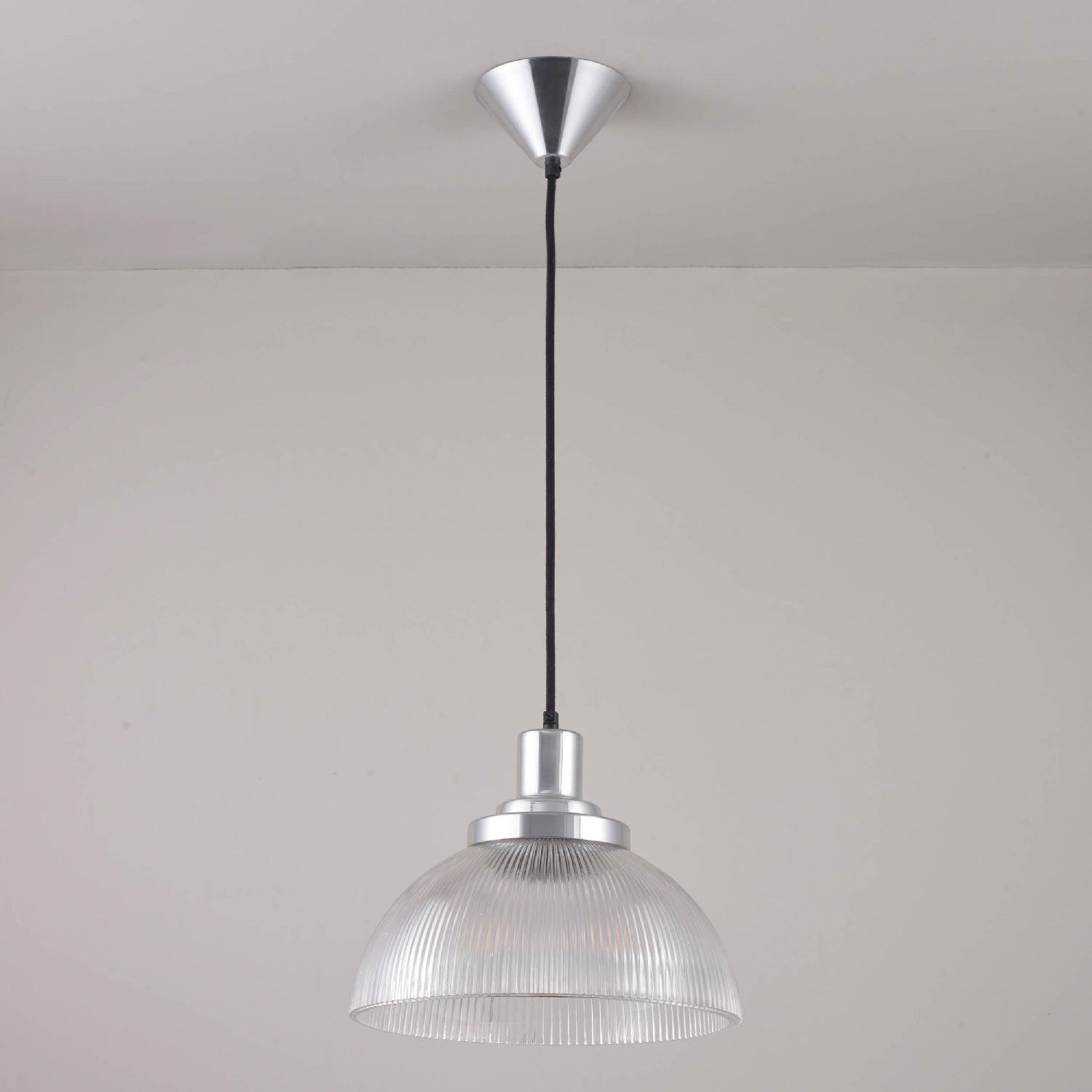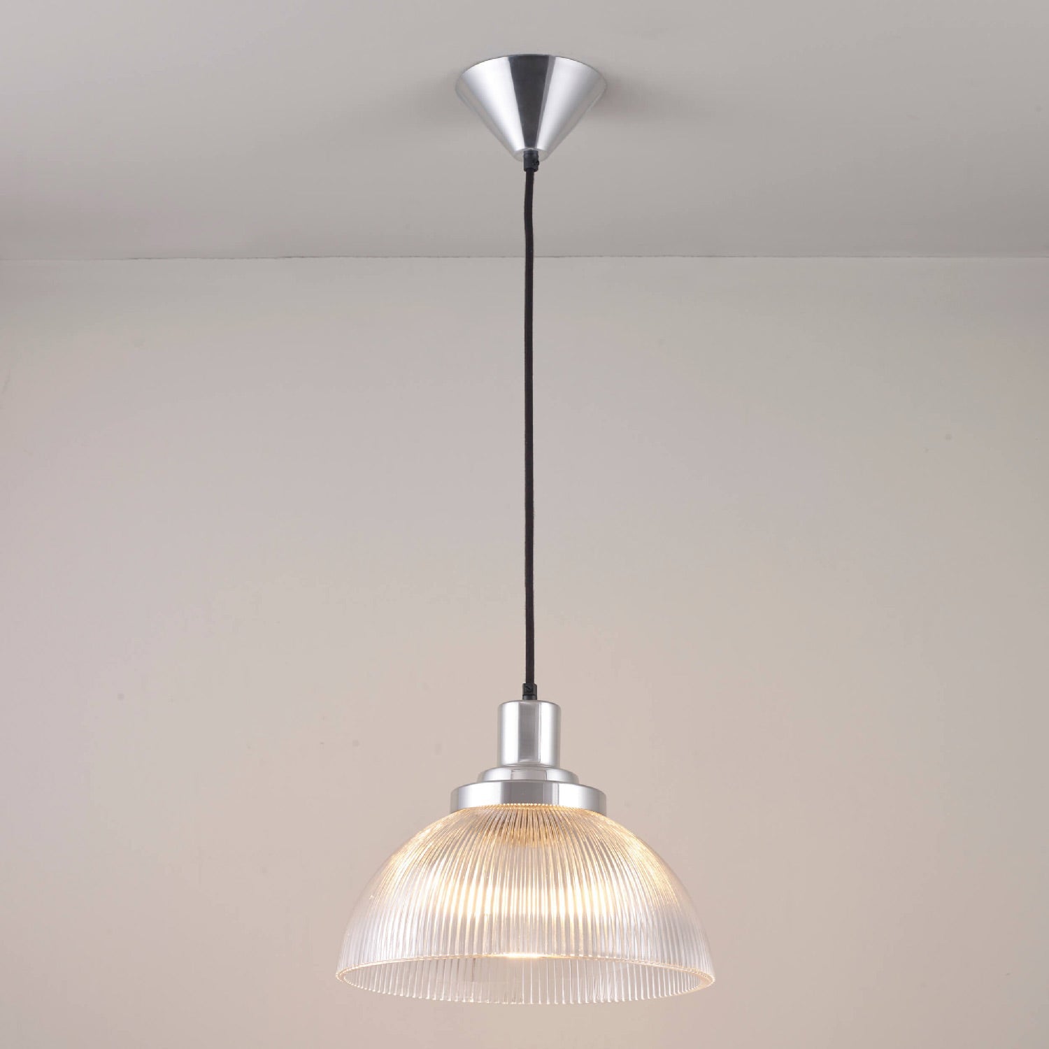 Create organic elegance in a high-profile setting with a light fixture packed with versatility and an ideal mix of glass and metal. The Cosmo Prismatic Pendant Light from Original BTC delivers a shortened semi-sphere prismatic glass shade with a wide brim that widens the reach of ambient illumination. Dressed up with a tiered metal holder and conical canopy, this fixture makes a statement expressing the ease of transition between old and new.