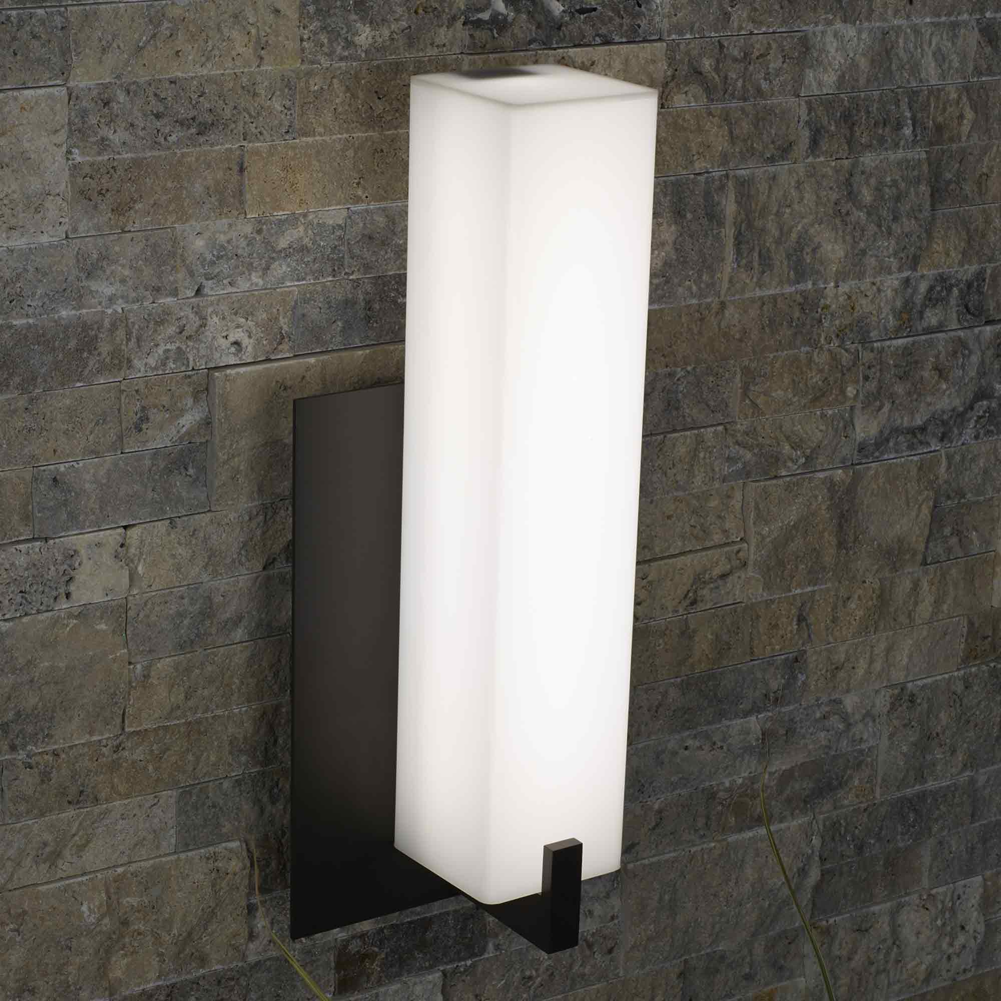 Modern meets sophisticated in the Cosmo Wall Light by Visual Comfort Modern. This sophisticated sconce features a rectangular glass shade that is presented on a sleek metal base. The Cosmo comes in three stylish diffusers, White Acrylic, Frost White and White Frit, adding style and ambiance to any space. Each glass diffuser provides a smooth wash of light onto surrounding surfaces. The Cosmo is ideal in spaces such as hallways, bathrooms and closets. Your choice of incandescent or LED lamping ships with the Cosmo saving you time and money, either lamping option is fully dimmable to create the desired ambiance in your special space.