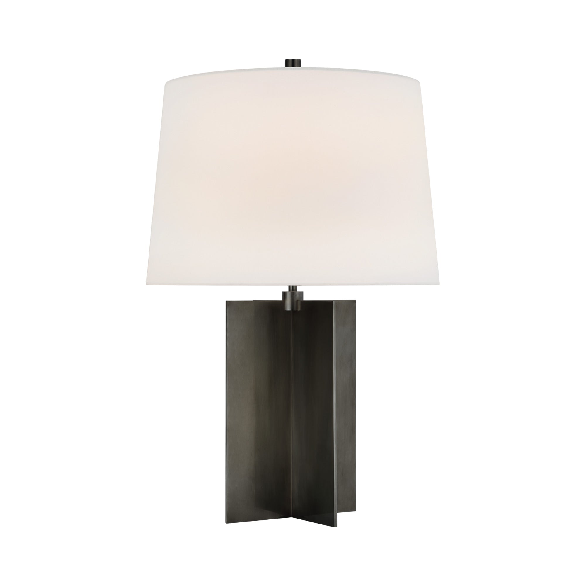 Sculptural elements work with a geometric vibe to create a sophisticated lamp in the Costes Table Lamp from Visual Comfort Signature. Metal construction forms a multidimensional design, contemporary and inviting, with extra metal accents bringing a subtle update. A classic linen shade tops this lamp with soft, easy style.