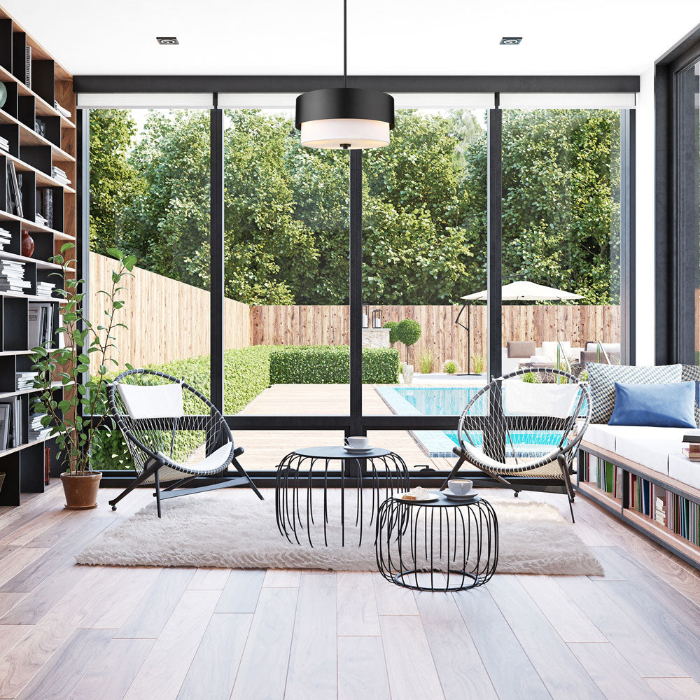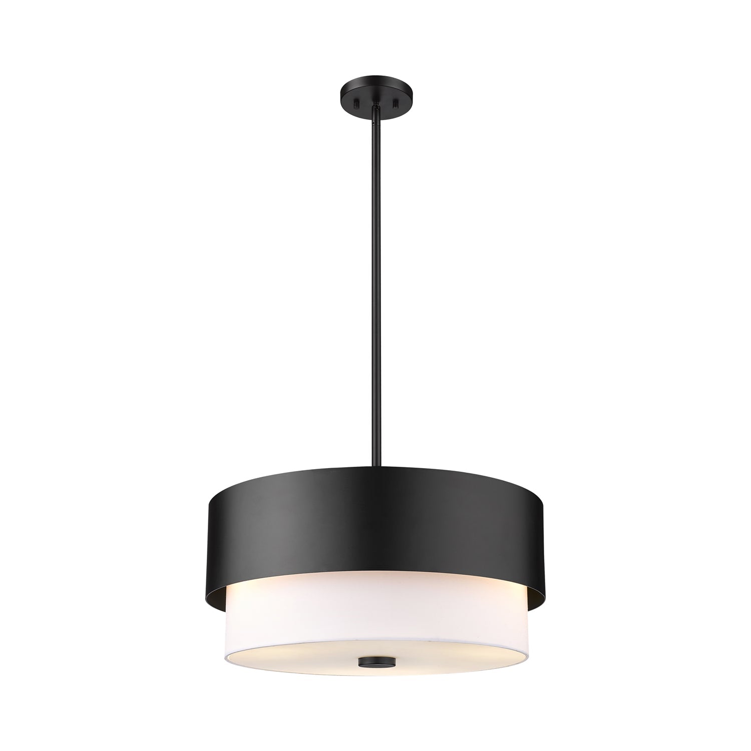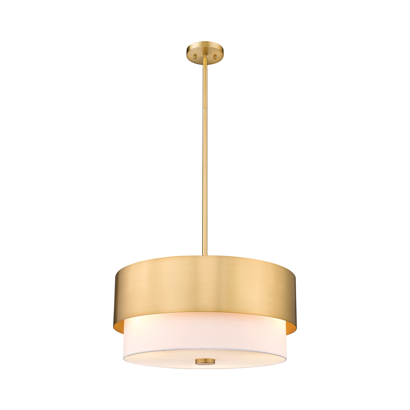 Choose simplicity with inherent sophistication as you add a source of ambient lighting to a compact space. Clean lines and a circular element create a visual delight as the Counterpoint Pendant Light from Z-Lite accents a nook or dining space in style. This fixture features metal framing and a cool fabric shade.