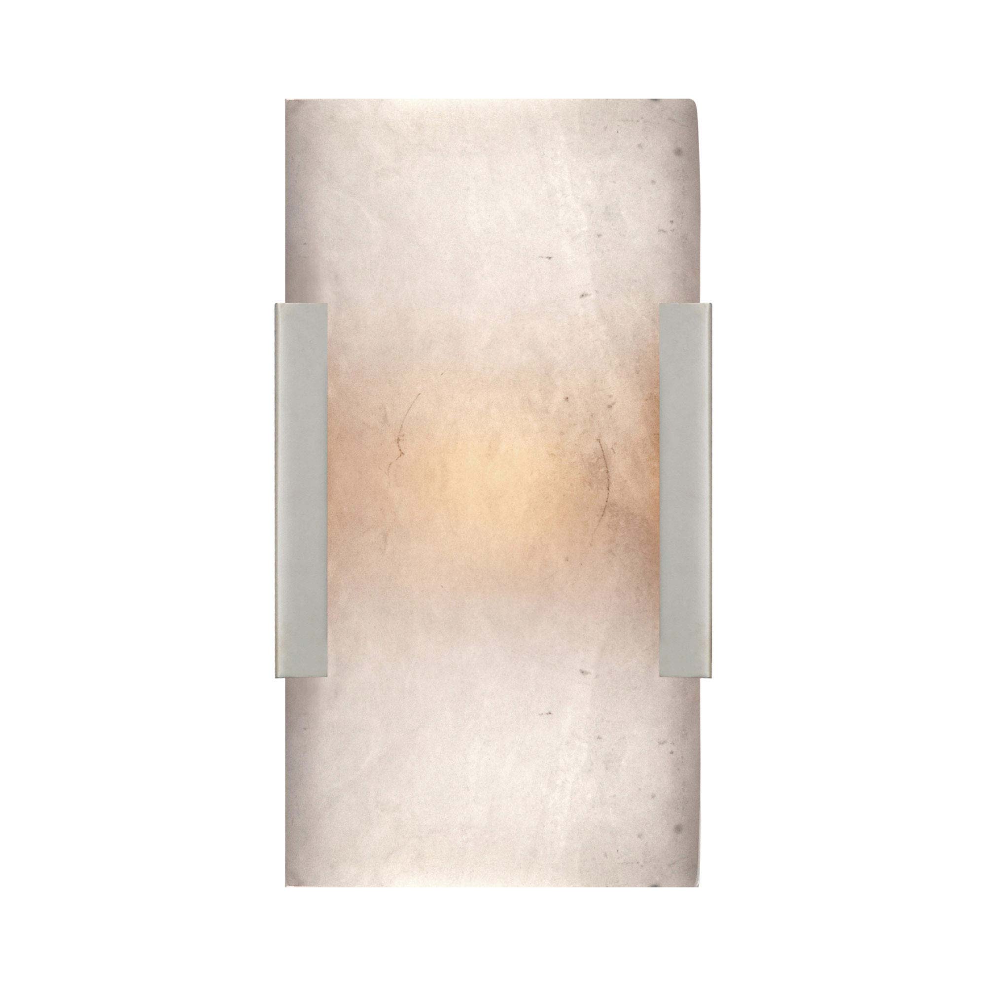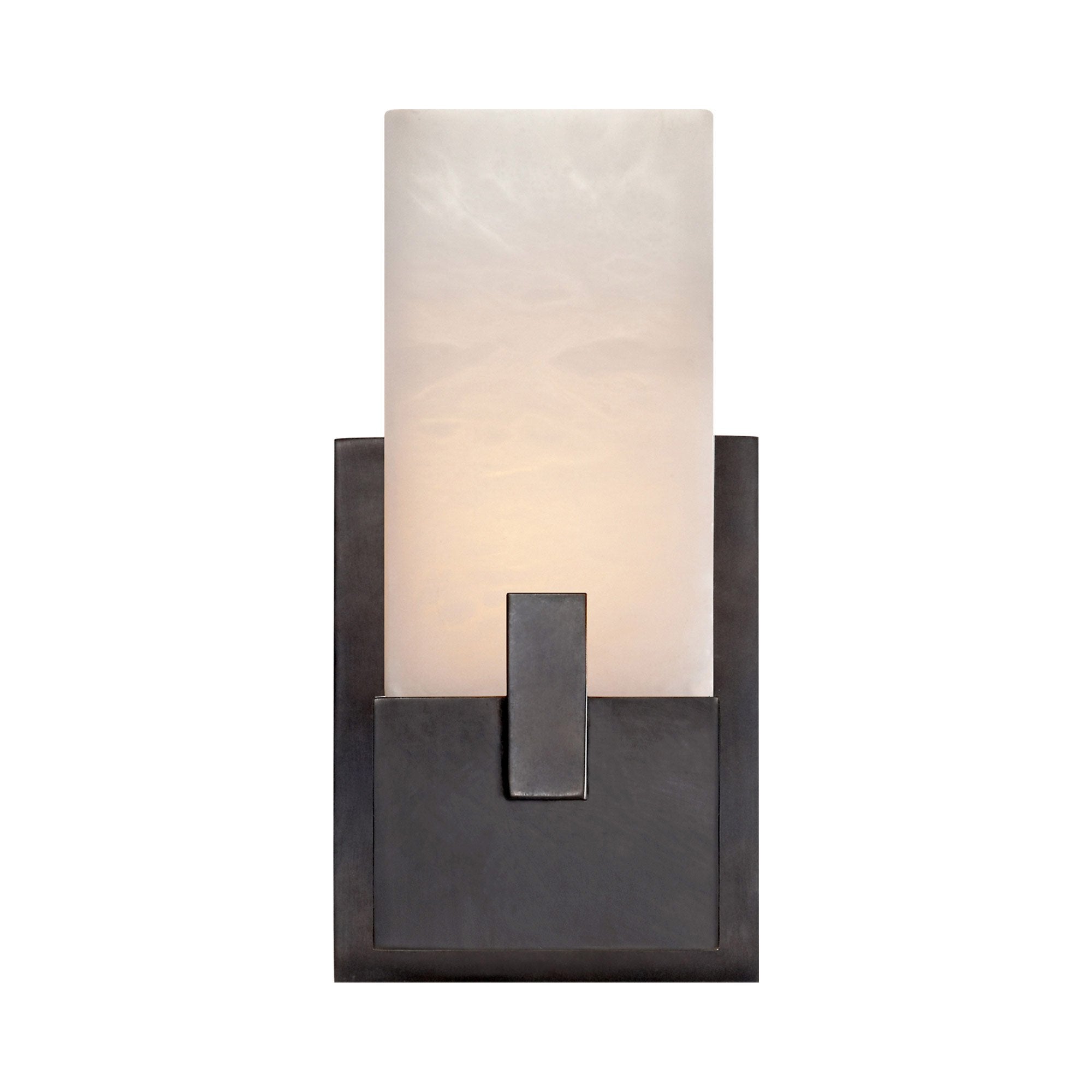 A slab of stone grounds the Covet Bath Wall Light from Visual Comfort Signature in organic, earthy elegance. Bold metal bracket accents complete the look with gravitas that elevates any space.
