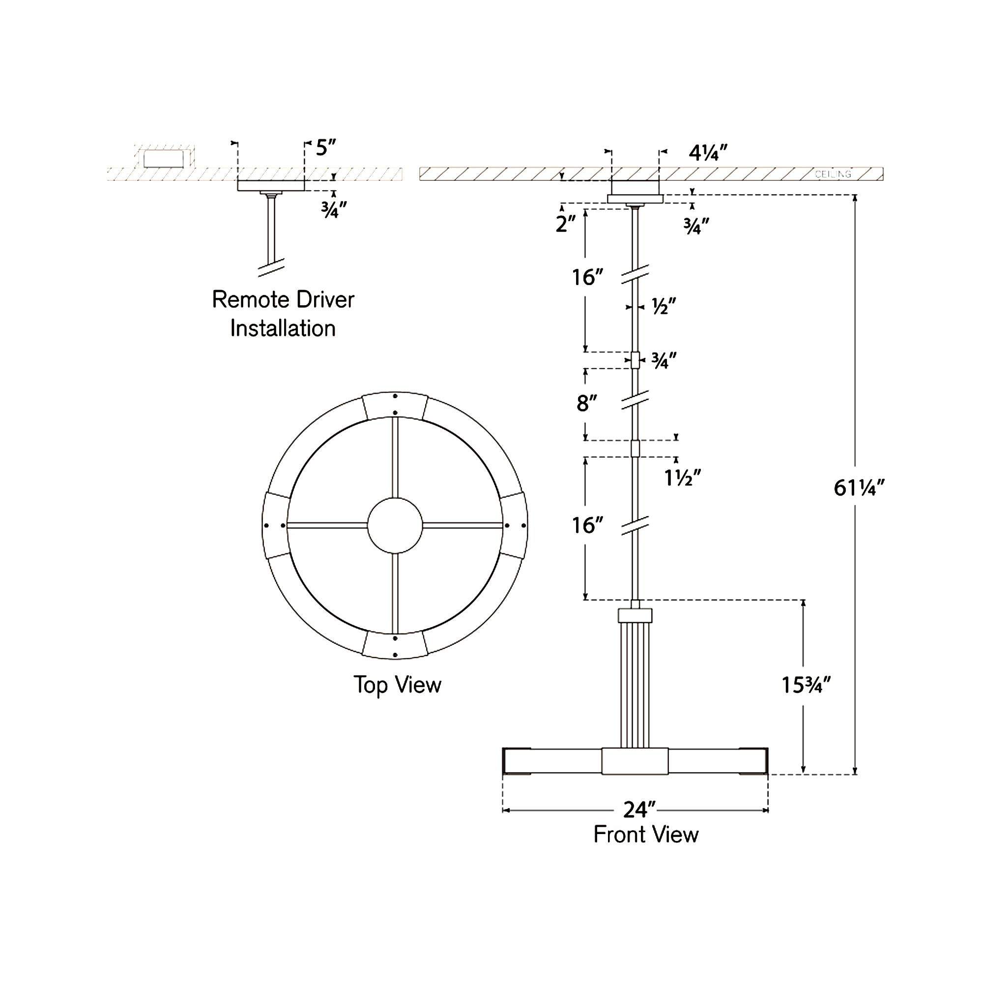 - Medium: 24"D X 15.75"H; 61.25" max height