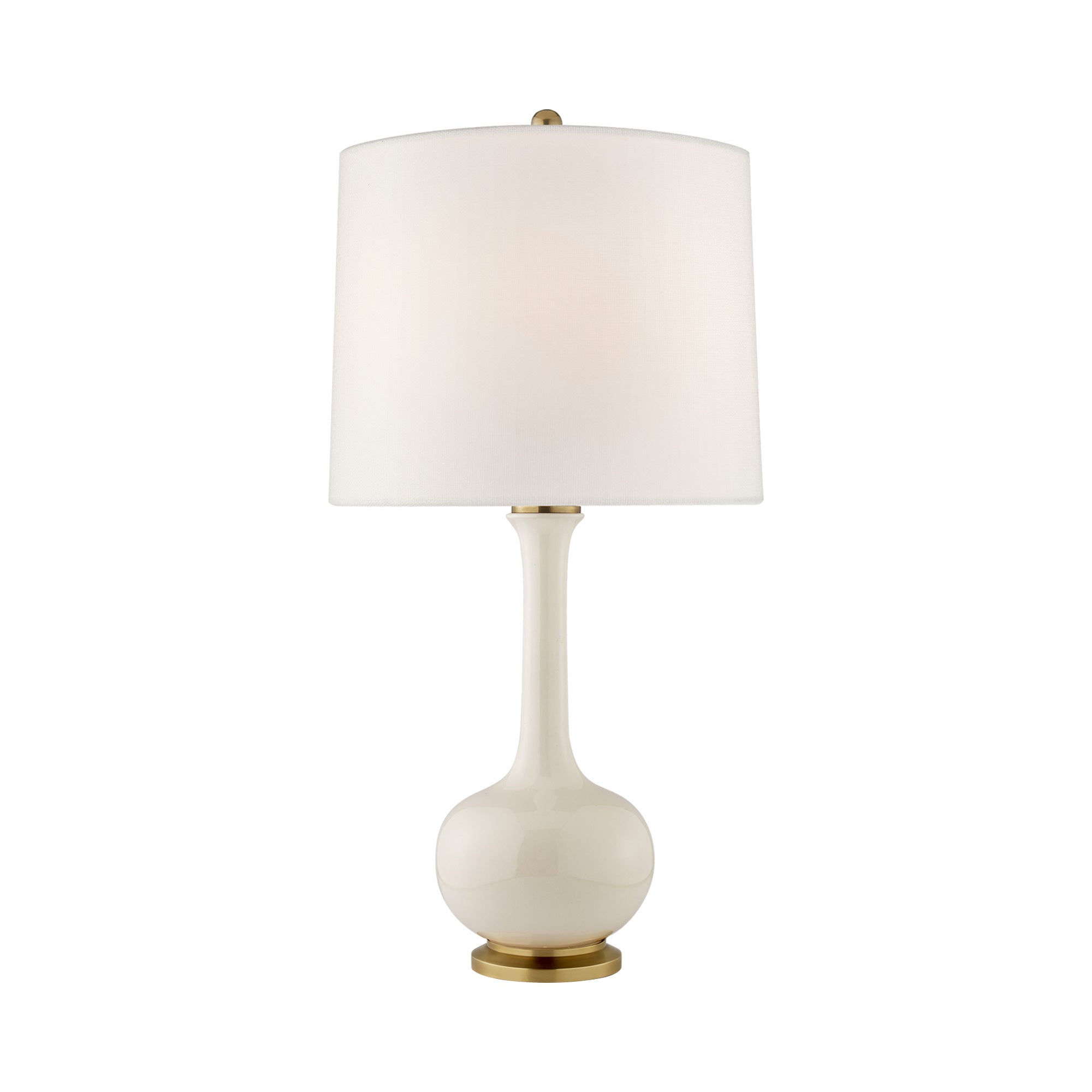 The Coy Table Lamp from Visual Comfort Signature repurposes a classic Mid-Century Modern design, updating it to work superbly with more contemporary room designs. Gorgeous with a long-neck bottle silhouette, its ceramic glaze finish body infuses romance, with a metal base and accents adding appropriate embellishments. Warm, glowing light filters through a conventional linen shade, creating a calming flavor perfect for bedrooms and living rooms.