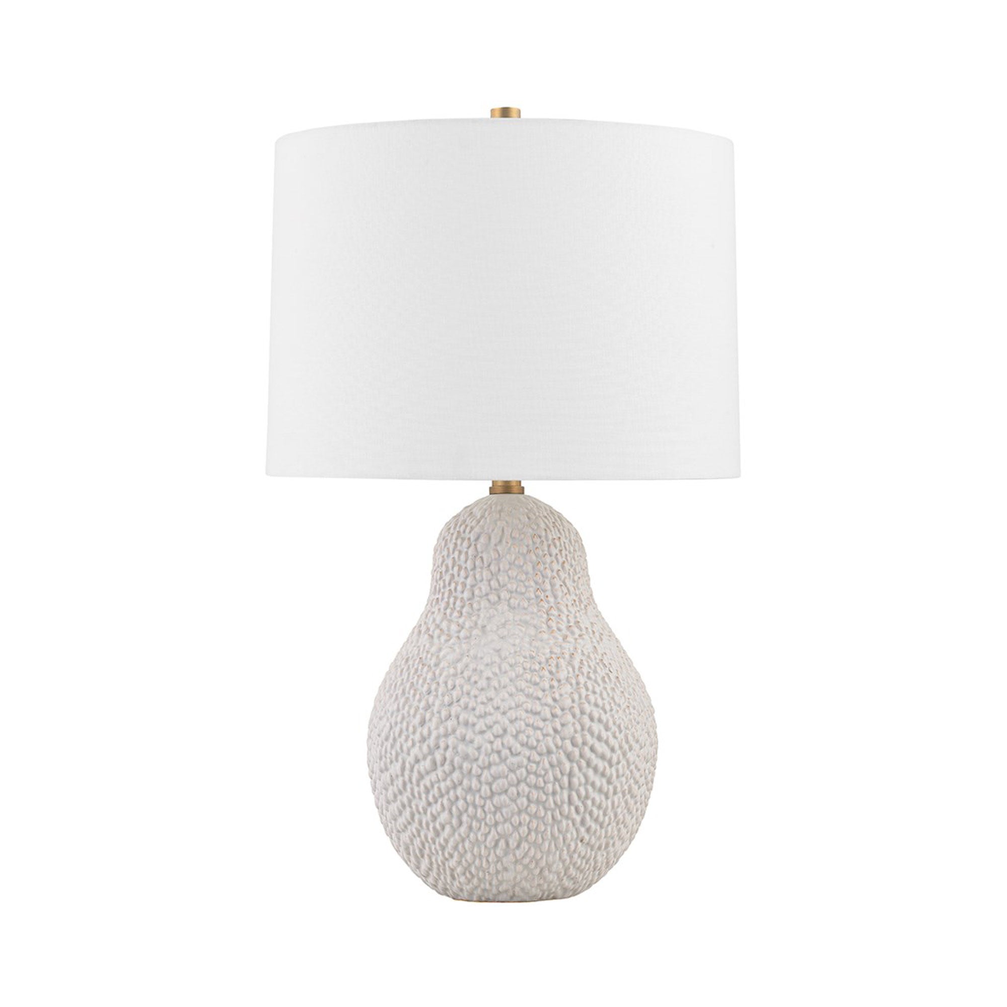 Sensual silhouetting follows gentle curves that embellish an organic aesthetic in the Crater Table Lamp from Troy Lighting. Modeled after the compelling shape of a jackfruit, its gorgeous white gold finish base is expertly textured to impart a natural feel. Count on light reflection from a white linen shade to lend a lush sparkling effect as it picks up on golden flecks.