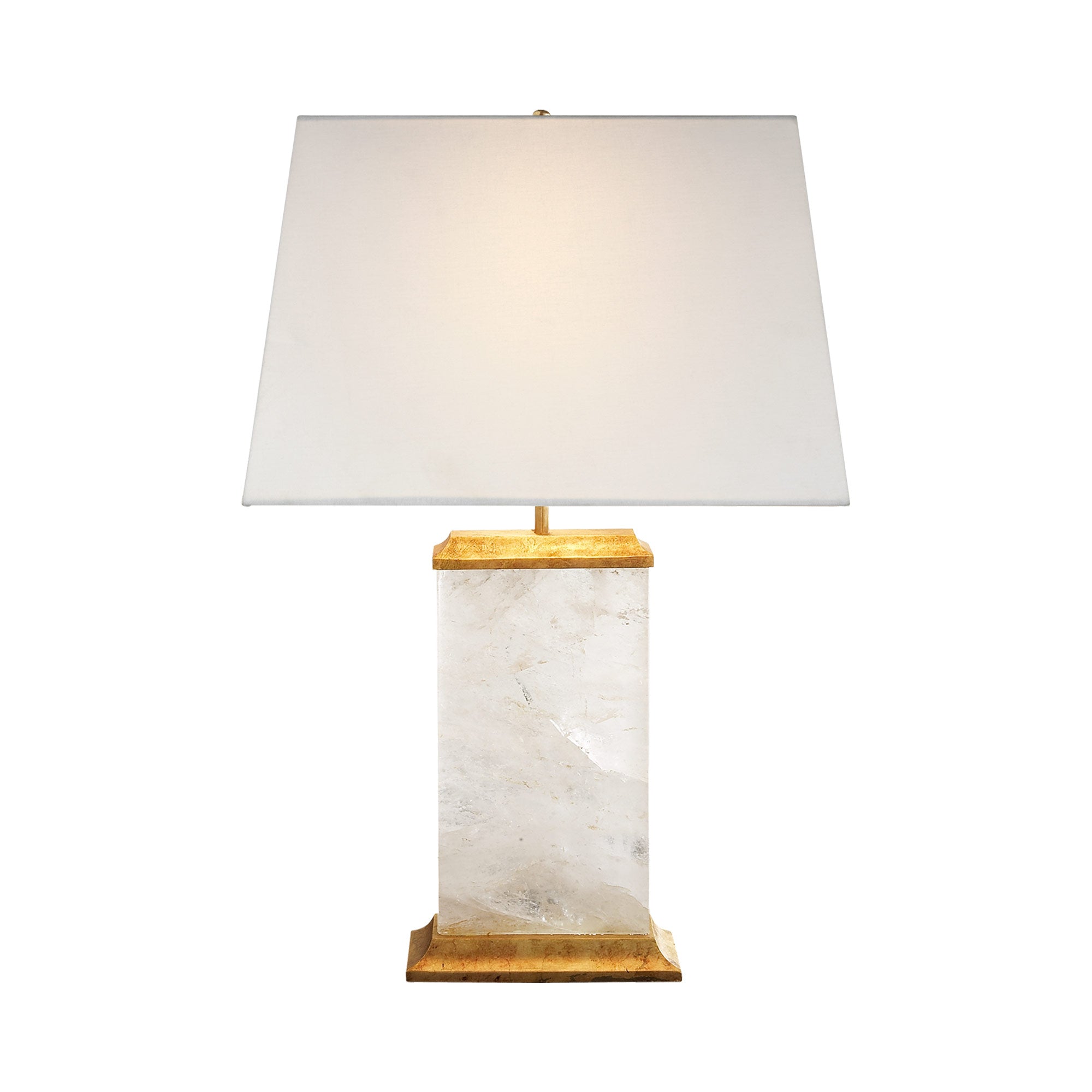 A luscious and luxe mode brings elegance to life as the Crescent Table Lamp from Visual Comfort Signature delivers both natural beauty and a linear silhouette. Choose this glam-inspired lamp for a living room or bedside space, admiring a natural quartz stone body accented with careful metalwork.