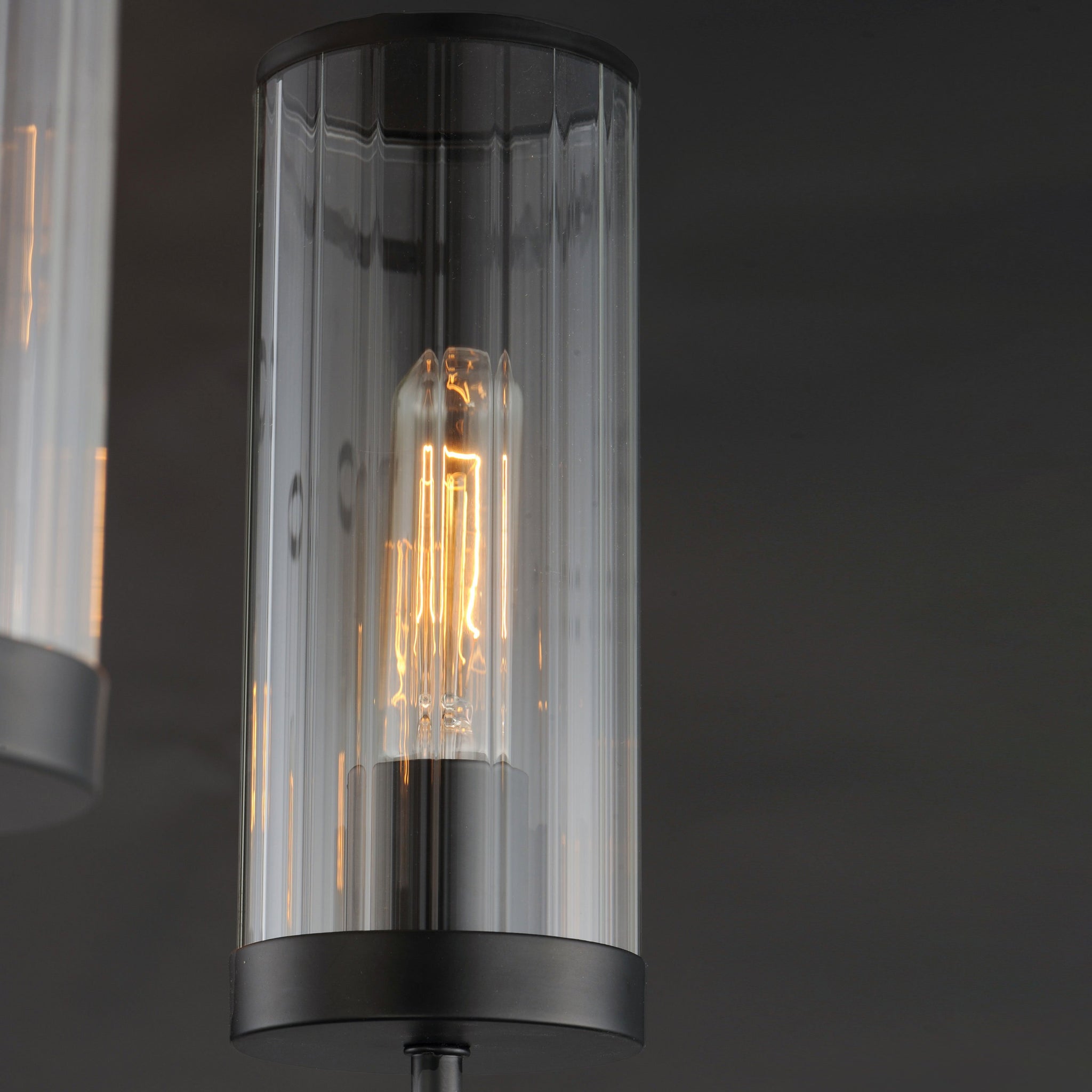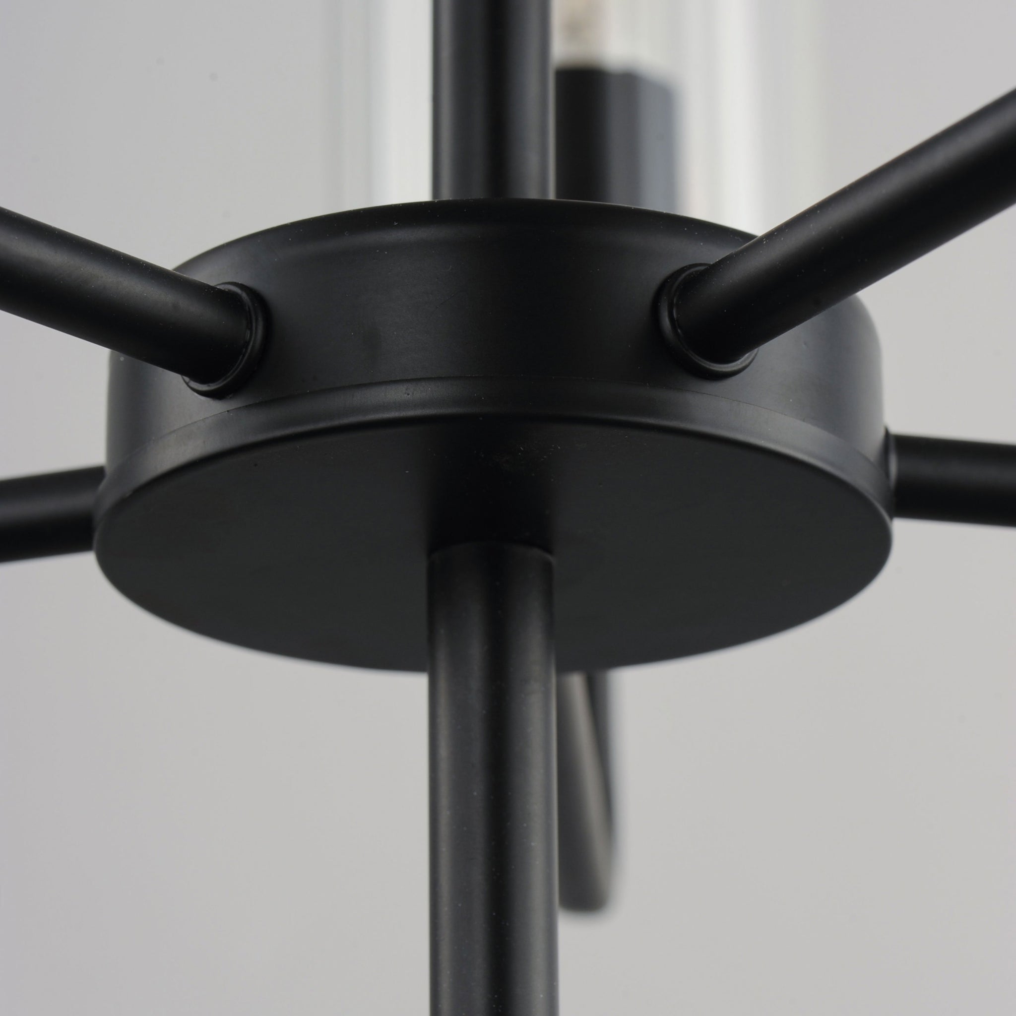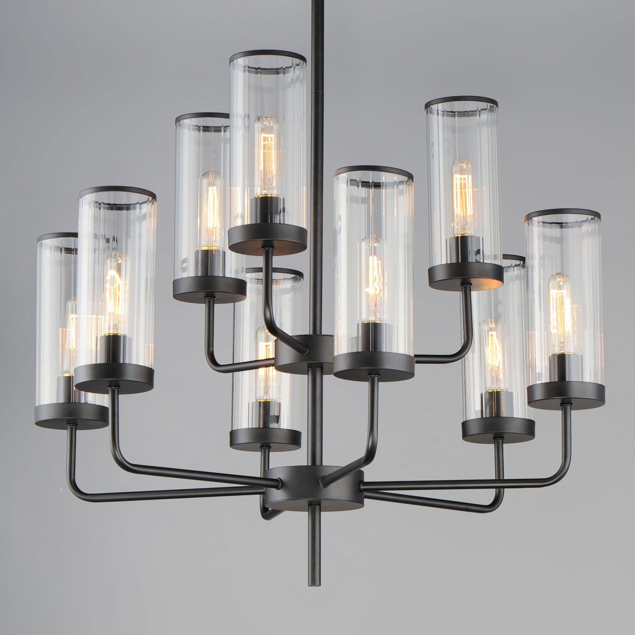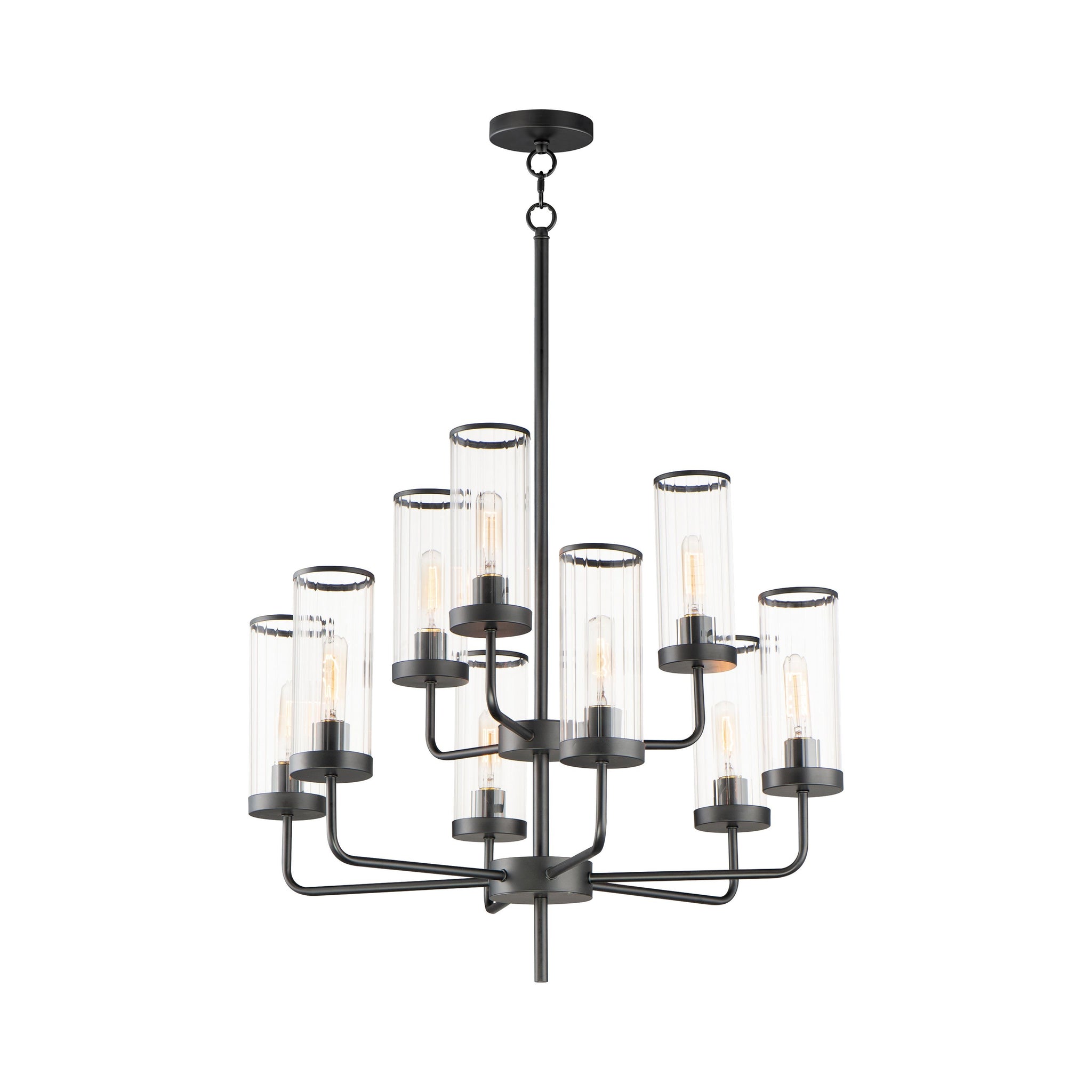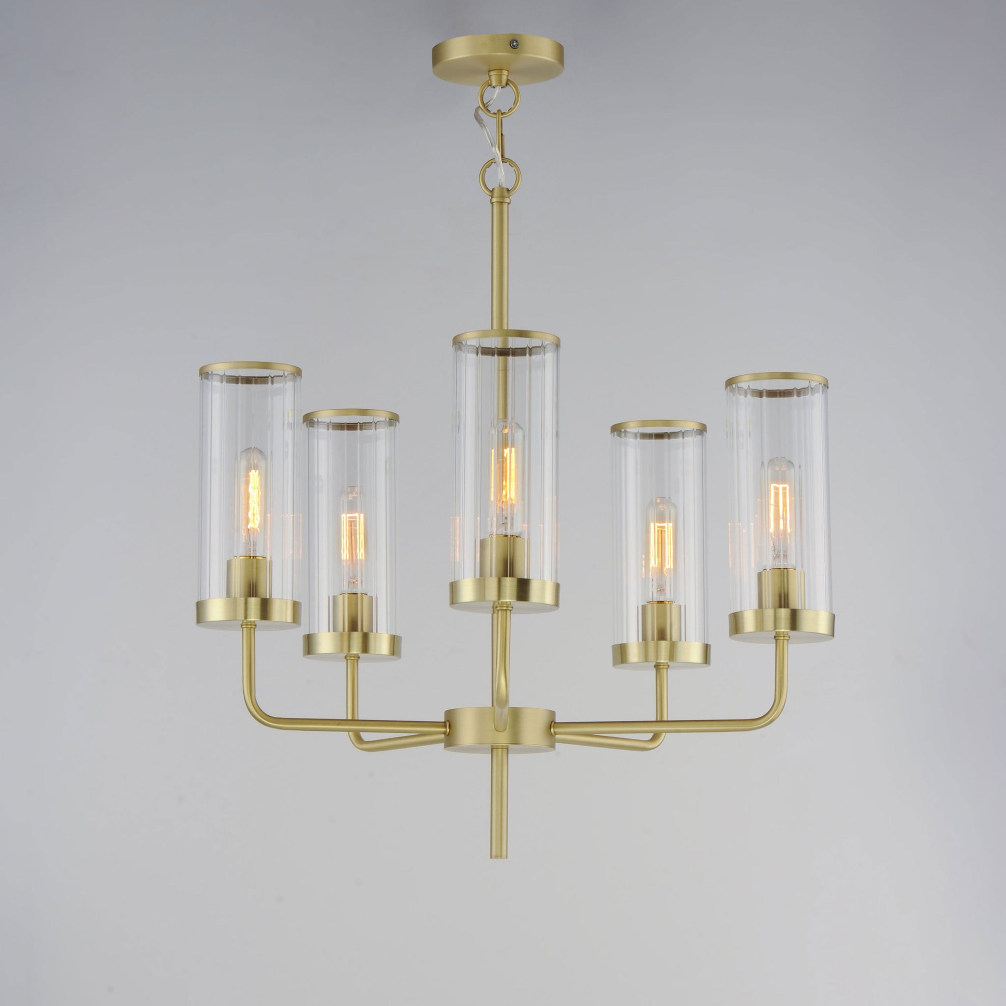 Simple, yet stylish, this minimal chandelier comes in your choice of Satin Brass or Matte Black bringing contemporary appeal. Clear Ribbed glass shades are fitted with rings in a coordinating color to complete the look.