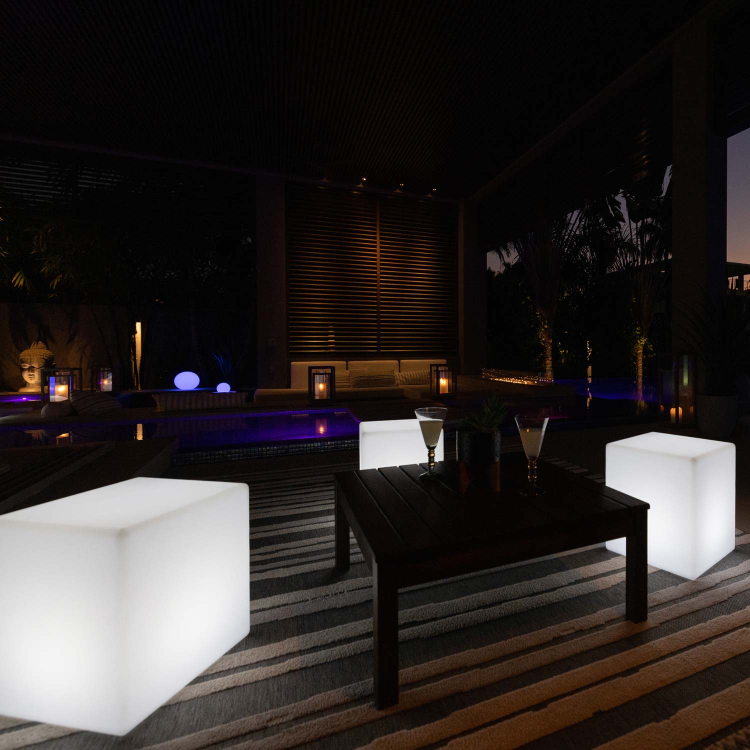 The CUBE stands out by its rounded edges providing a sleek, and a perfect elegant design. On a terrace, in a sitting room or in the pool, it easily adapts to all your spaces. Its wireless Bluetooth SmartMesh technology allows you to control the brightness and colors of your light via your smartphone or tablet. You can also connect multiple lamps covering up to 1km and schedule lighting on/off scenarios. Managing the ambiance lights has never been so easy!