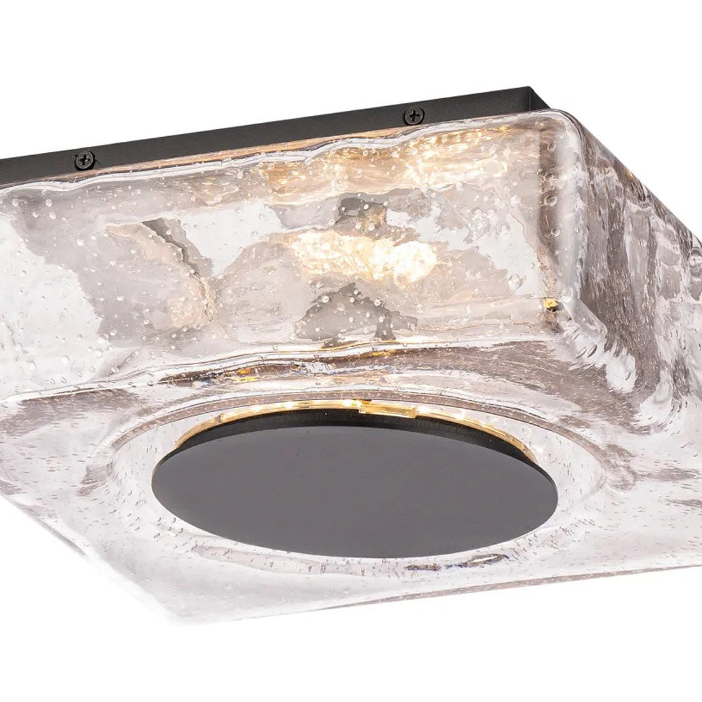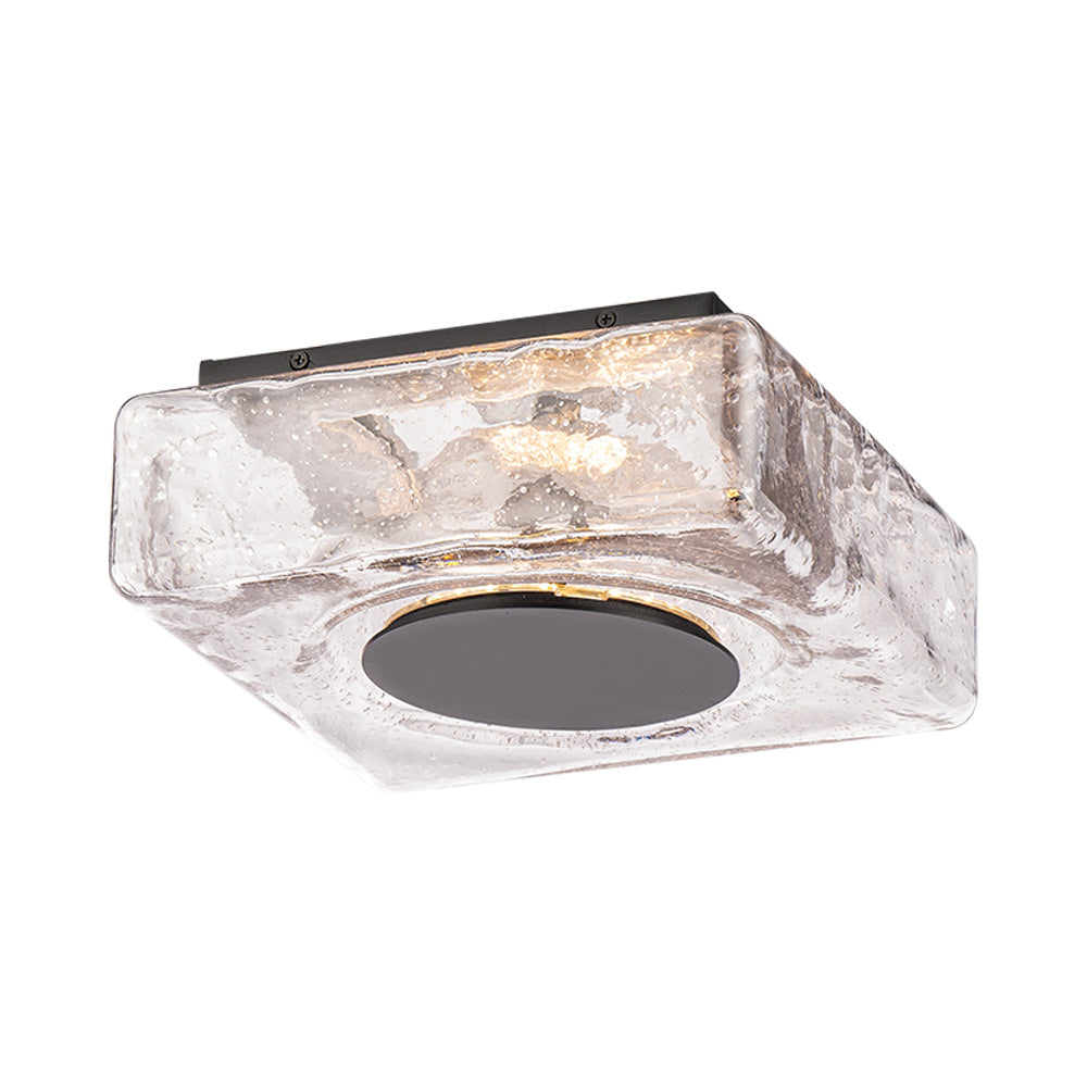 An icy motif raises the level of artisanal glam when the Cuboid Outdoor LED Flush Mount Ceiling Light from dweLED captures attention in a gazebo, pool house, or exterior structure. Embrace the decadent look of a backlit hammered glass diffuser and sleek black finish metal accents. Clean lines and energy-efficient illumination fulfill a promise of creating an exquisite inside look suited to an outside space.