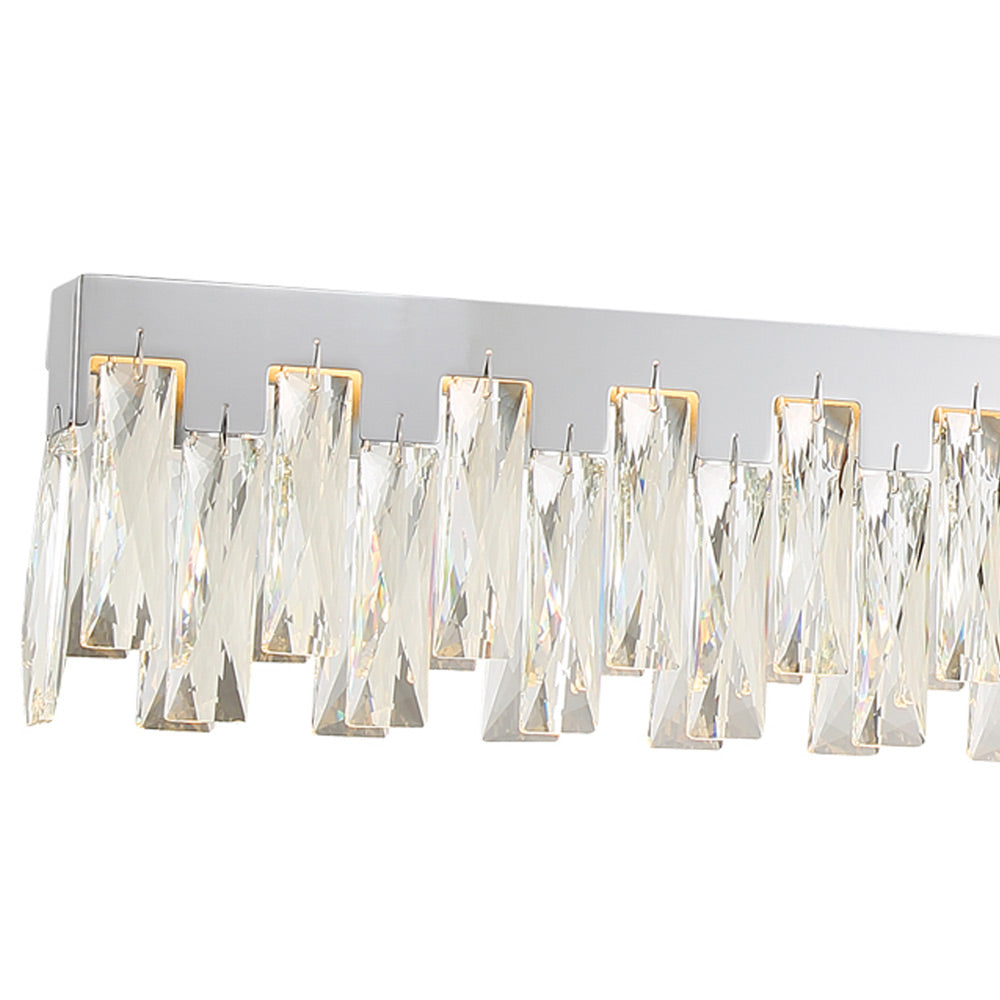 Texture and radiance go hand in hand to create an extraordinary light fixture that raises the artisan upscale aesthetic of a modern space. The Curio LED Linear Pendant Light from George Kovacs captures the essence of glam with gleaming chrome finish metal hosting strips of textured clear glass that reflect its energy-saving illumination to create a dazzling light show. Choose this decadent linear pendant to highlight a kitchen island, dining ensemble, or foyer.