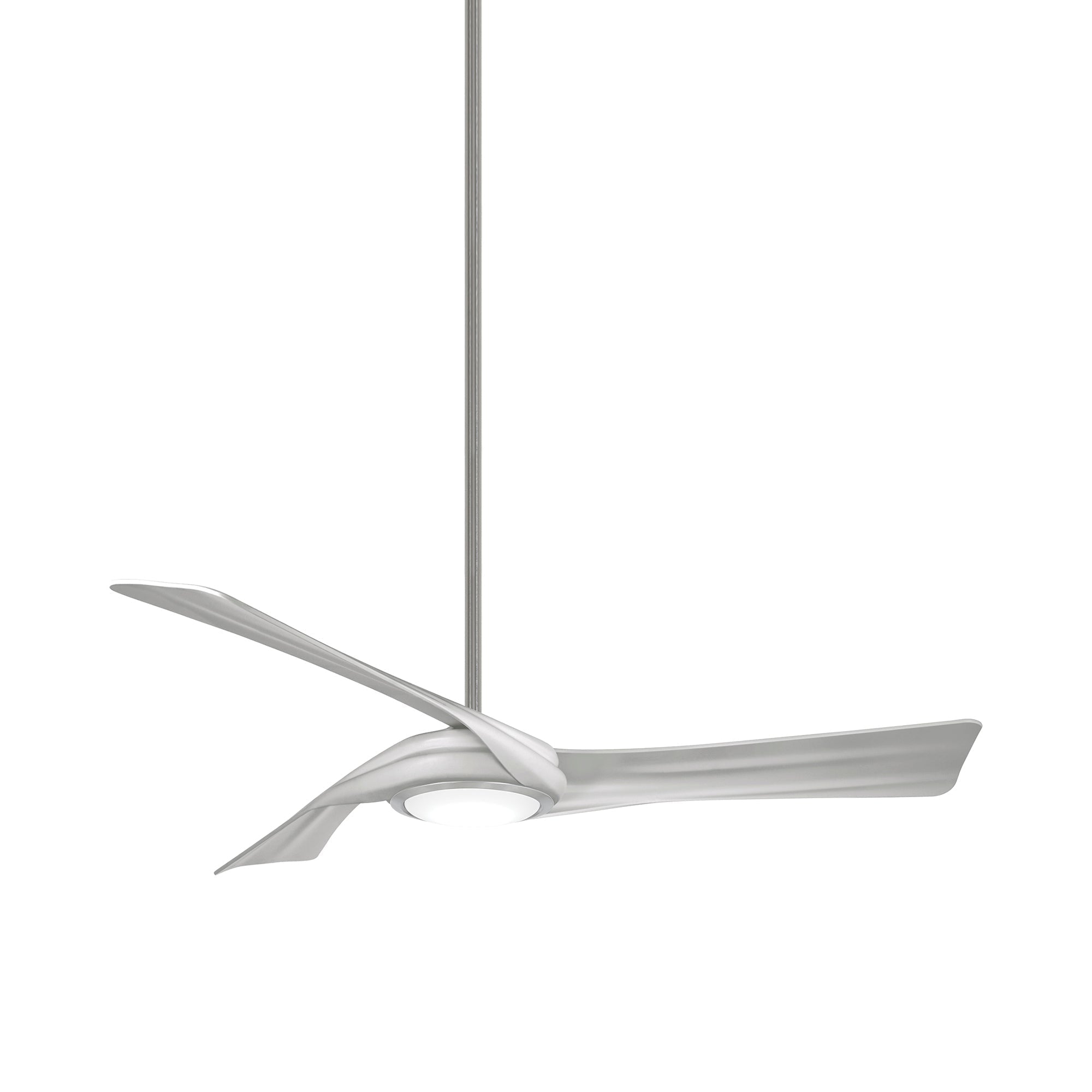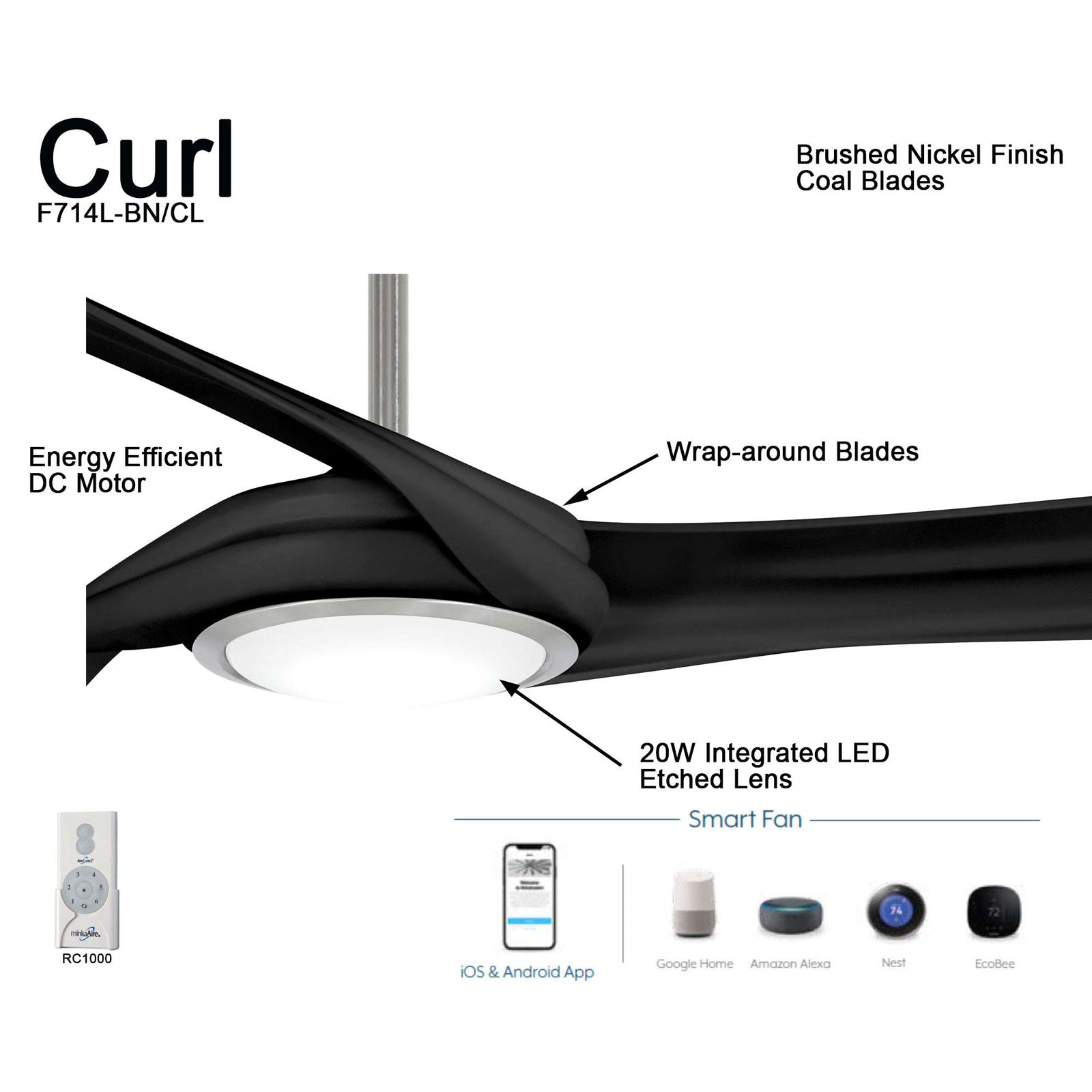 An intriguing twisting silhouette tops design features in a ceiling fan suited to both modern and transitional spaces. The Curl LED Ceiling Fan from Minka Aire takes a modern turn with twisted, curled blades appearing to spin off of a center ring frame fashioned of metal. This nouveau ceiling fan sends energy-efficient lighting through an etched lens, controlled through a convenient hand-held remote.