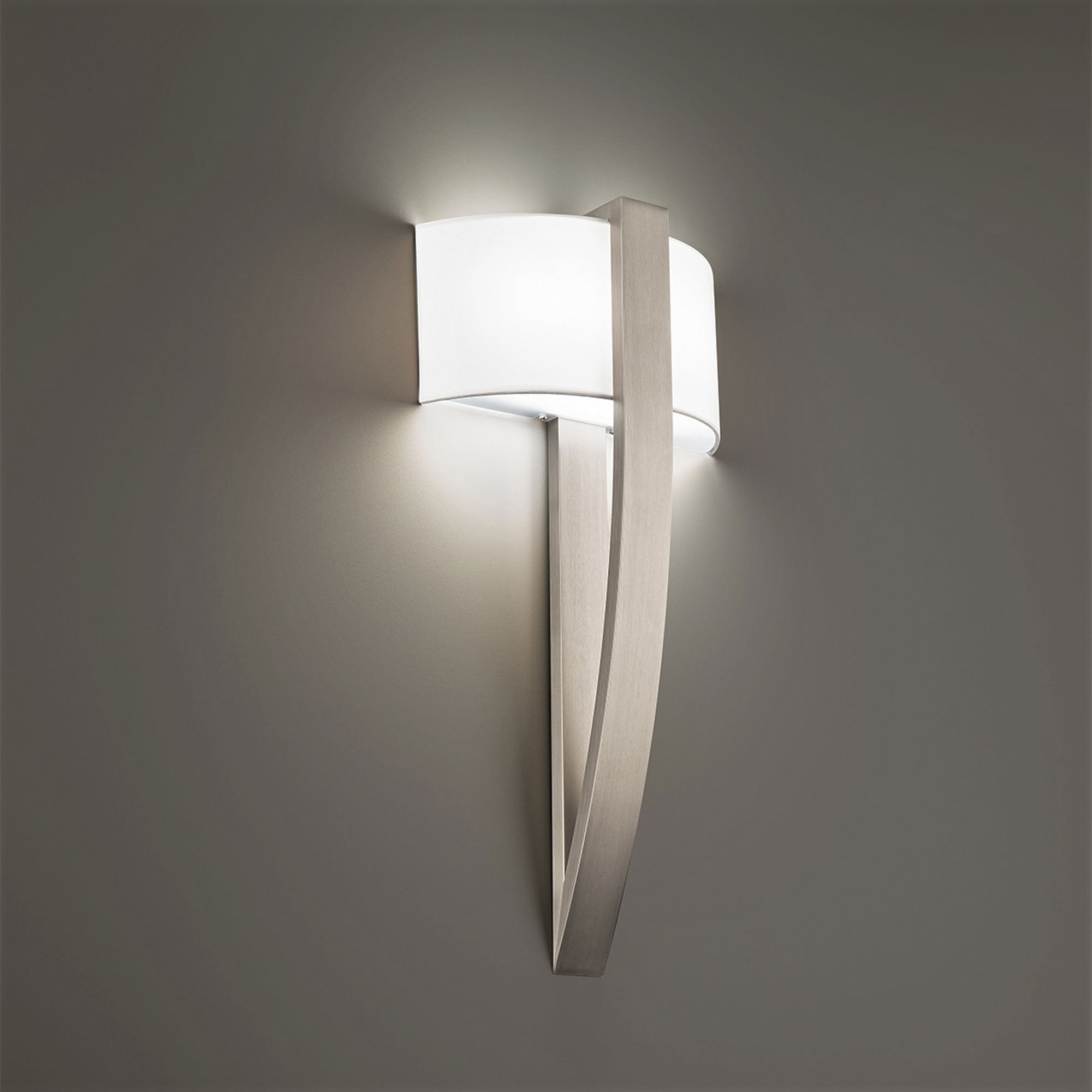 An elegantly finished silhouette when viewed from any angle. Contours on the tailored fabric shade are mirrored in the sweeping metal frame. ACLED technology ensures clean architectural styling. ADA compliant for use in high traffic hospitality and commercial spaces.