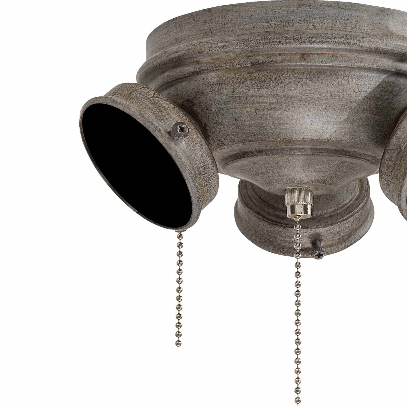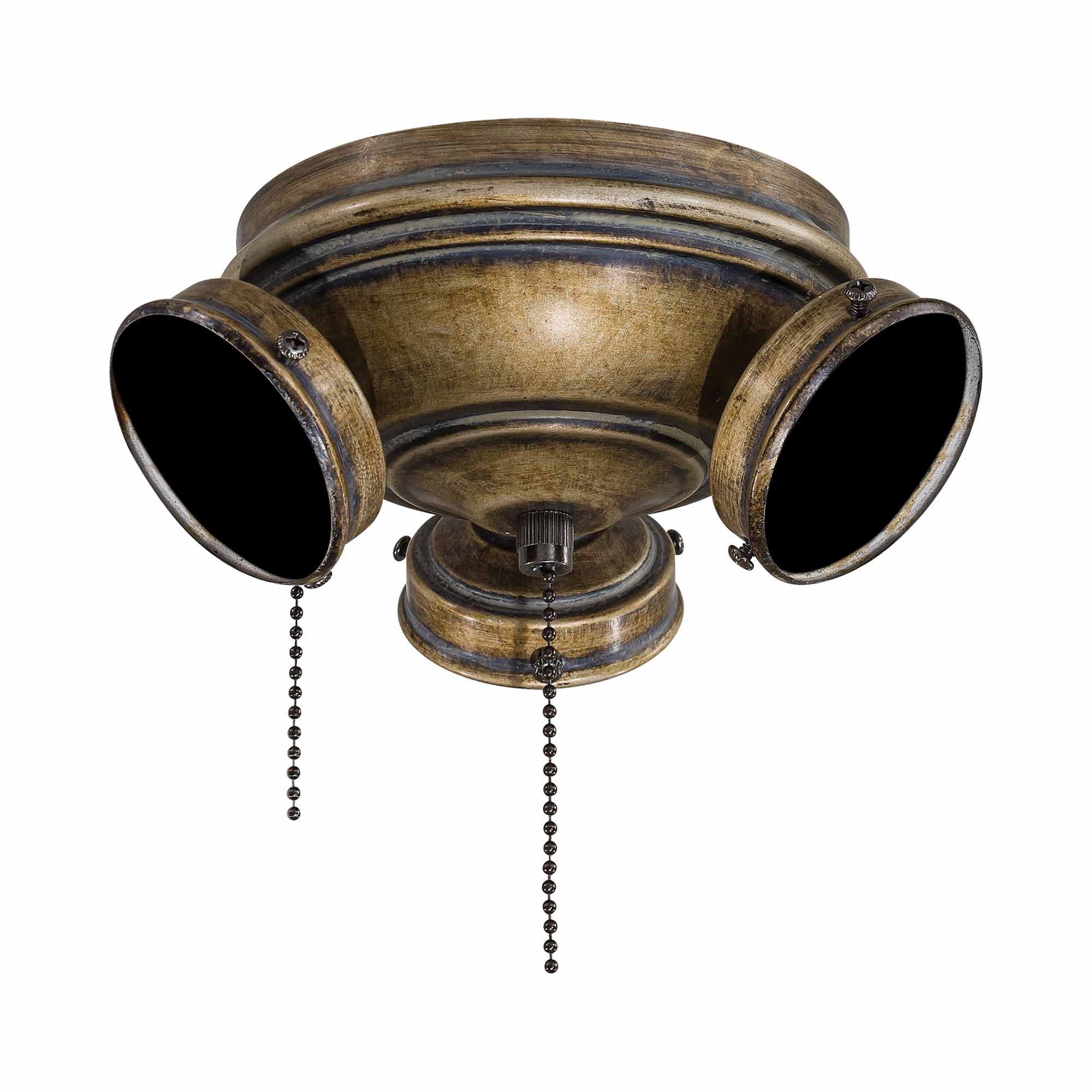 Go with a rustic aesthetic suited to both country cottage and industrial-influenced interior design schemes. The Custom 7 1/2" LED Fan Light Kit from Minka Aire completes an existing ceiling fan with ornate and compact metal framing, including a pair of disk holders ready for mounting four frosted LED bulbs packed along with the kit.
