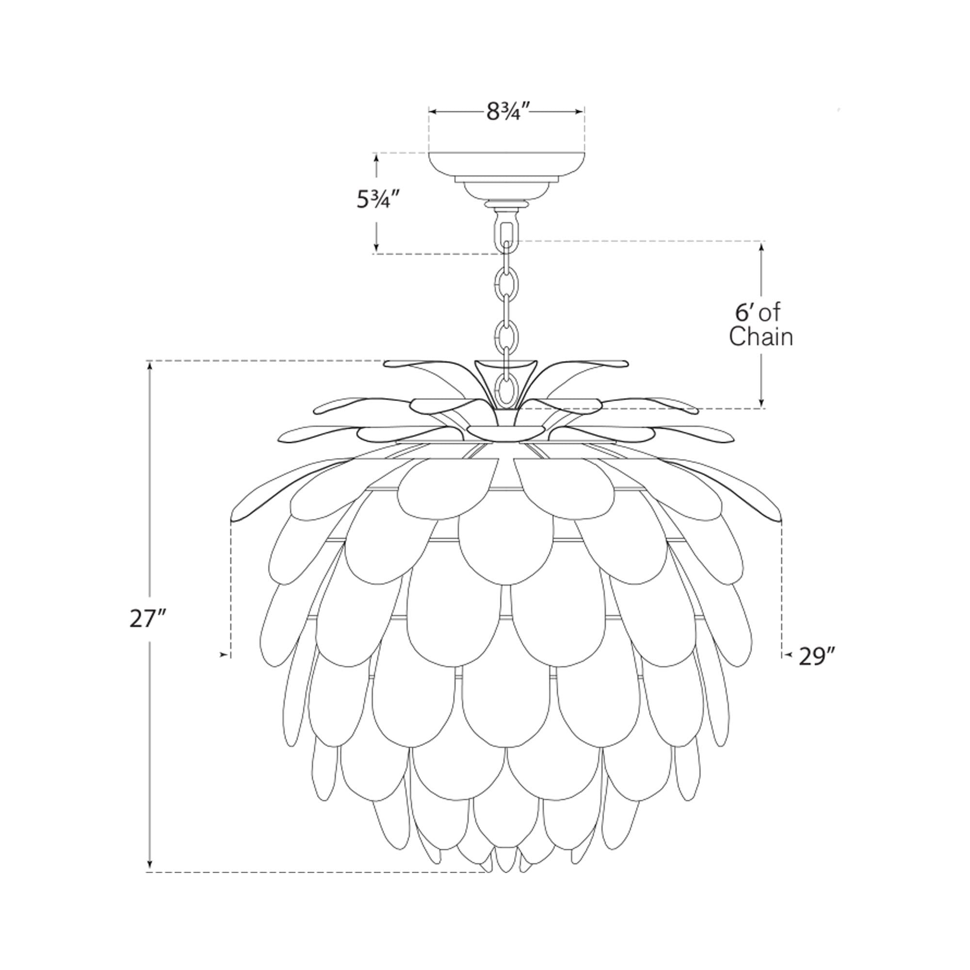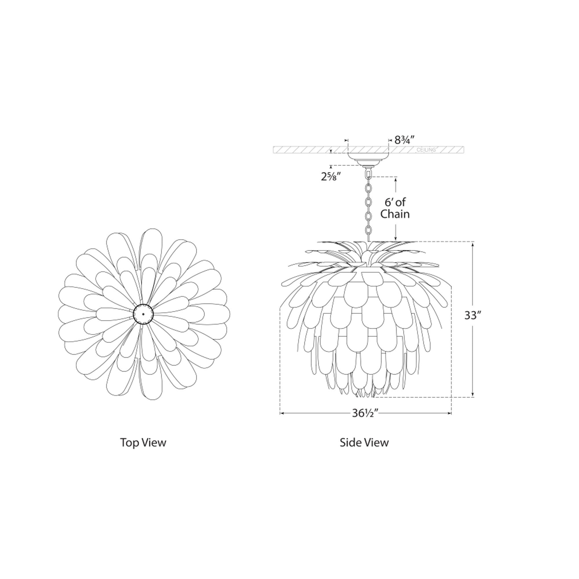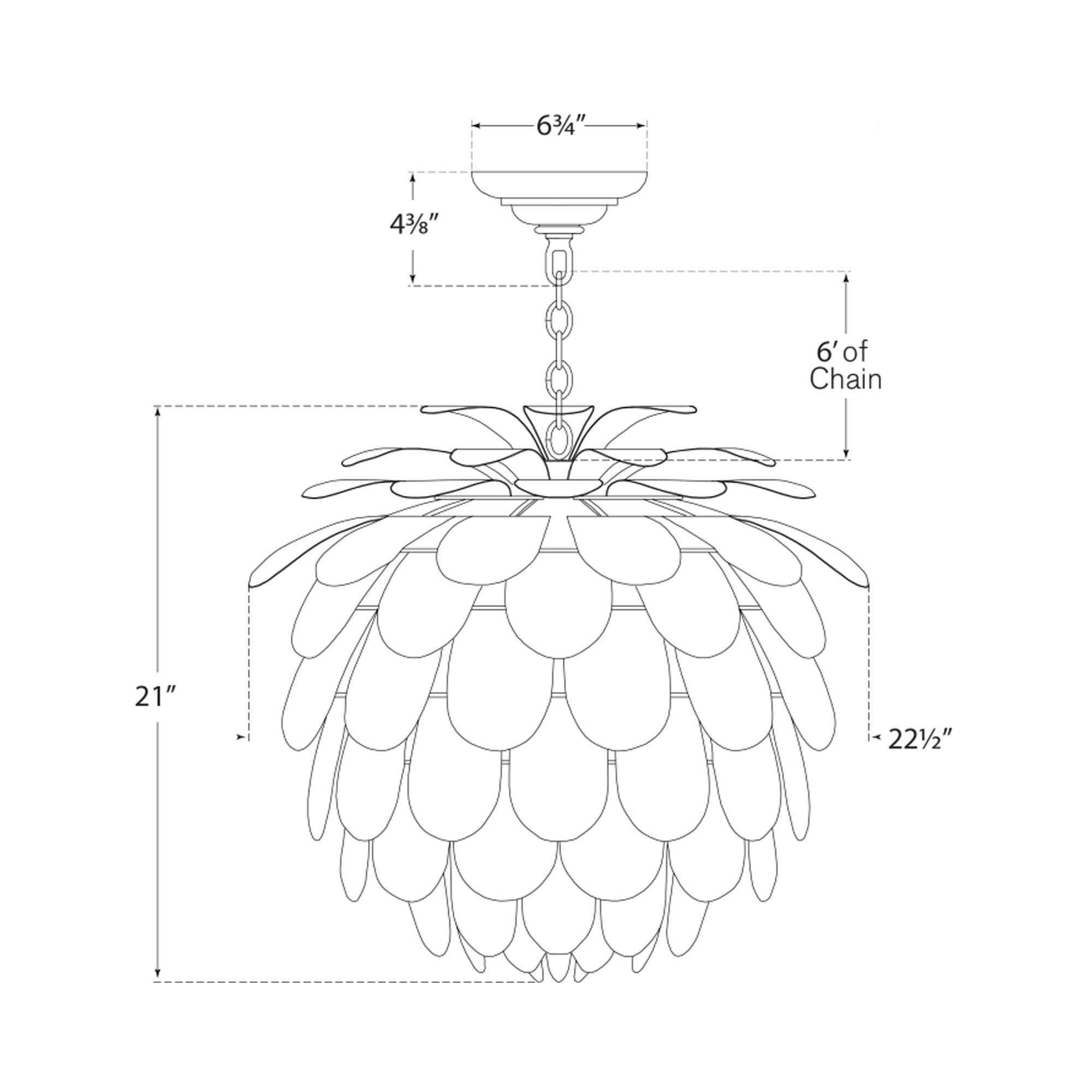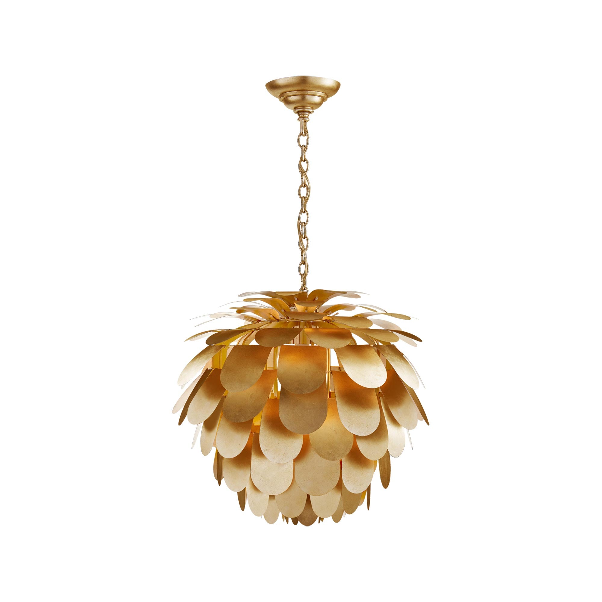 Delivering an artistic tribute to the iconic pineapple, the Cynara Chandelier from Visual Comfort Signature adds one-of-a-kind personality to casual contemporary spaces. Bring an island theme to any room with this charming metal lamp with layered elements emulating the iconic tropical fruit, delivering a whimsical look.