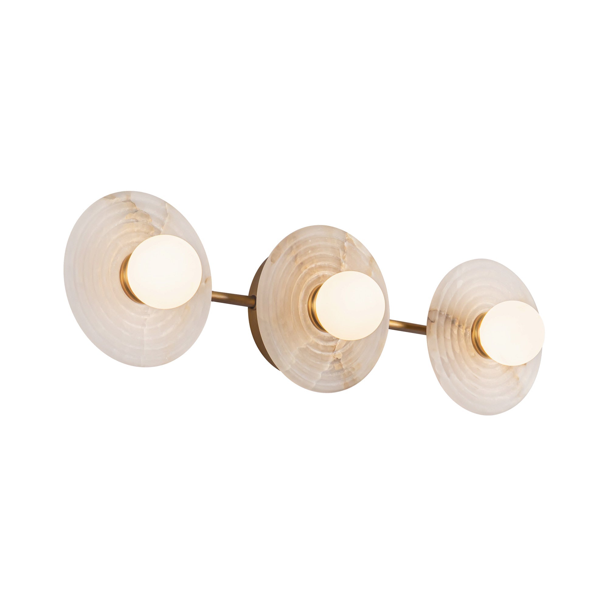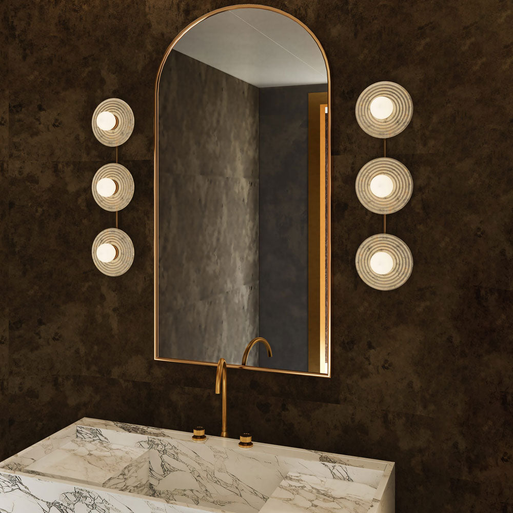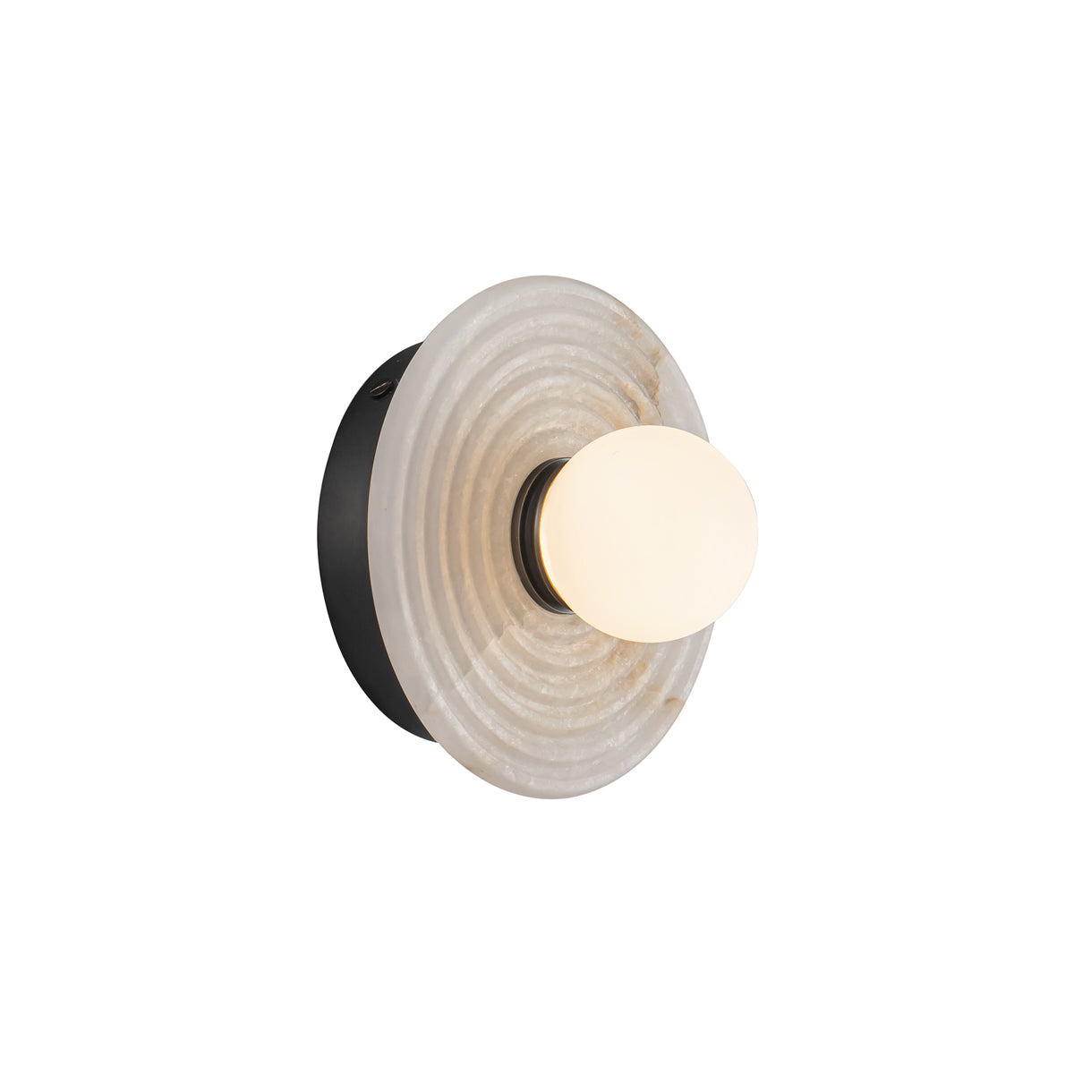 Art Deco influence plays fast and loose in the design scheme of a celebrate fixture design, creating its own style motif that captures attention. The Dahlia LED Wall Light from Alora Lighting taps into a festive look with chic ribbed alabaster plates creating dimensionality, as circular wall plates and exposed bulbs showcasing a festive design aesthetic.