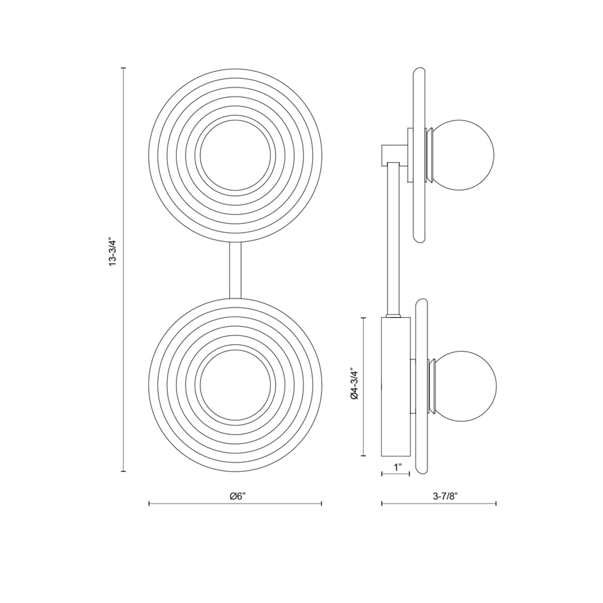 - 2-Light: 6"W X 13.75"H; 3.88" Extension