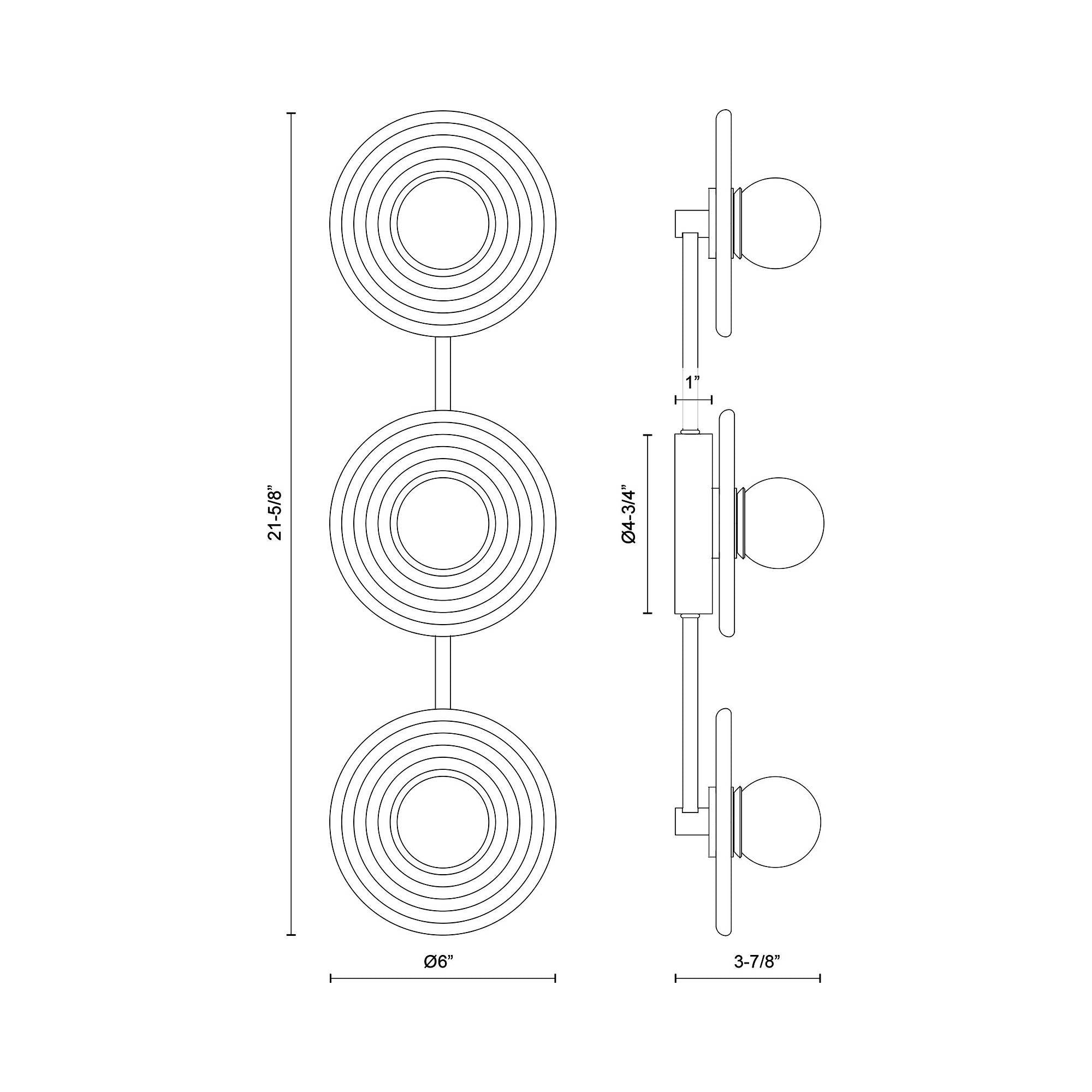 - 3-Light: 6"W X 21.63"H; 3.88" Extension