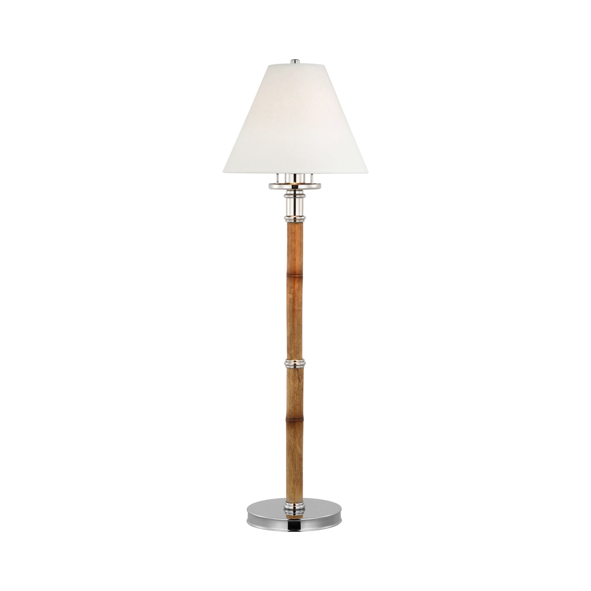 Delightful coastal flavor enters the scene to create a pleasing ambiance as the Dalfern Table Lamp from Visual Comfort Signature strikes a balance between exotic and decadent. Topped with a gleaming metal shade and dressed up with intricate metal accents, this stylish lamp sets itself apart with a waxed bamboo pole creating a textural impact. This timeless lamp invites an arrangement of relaxed island-inspired decor scheme.