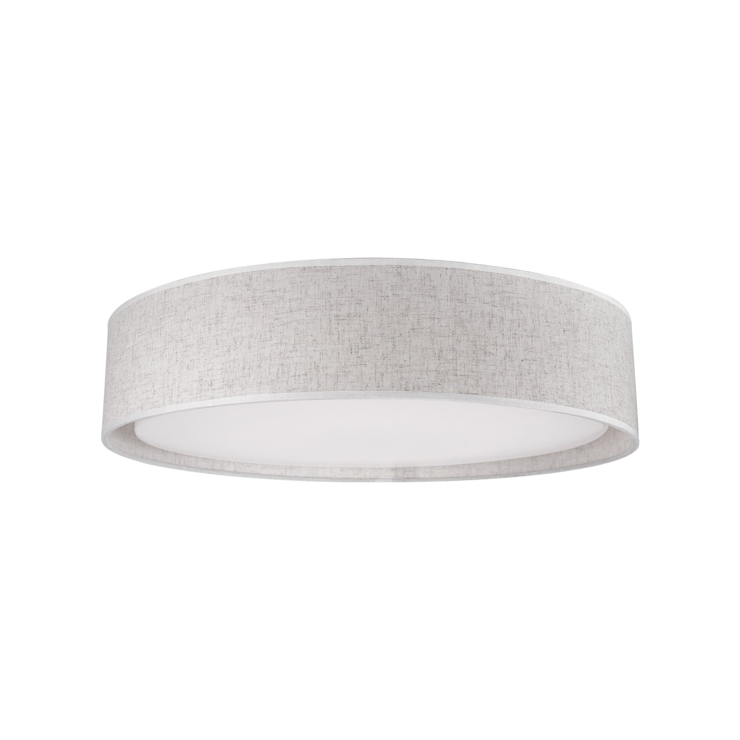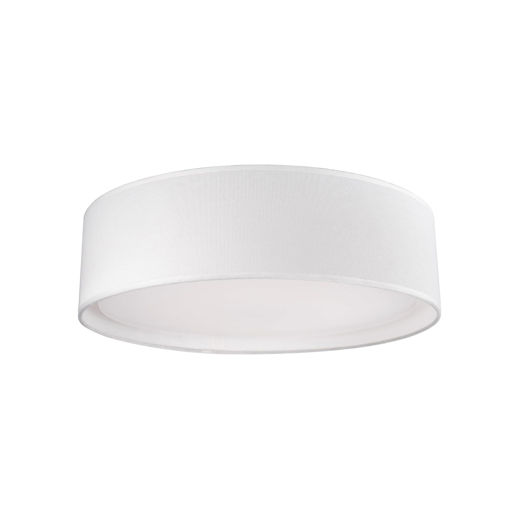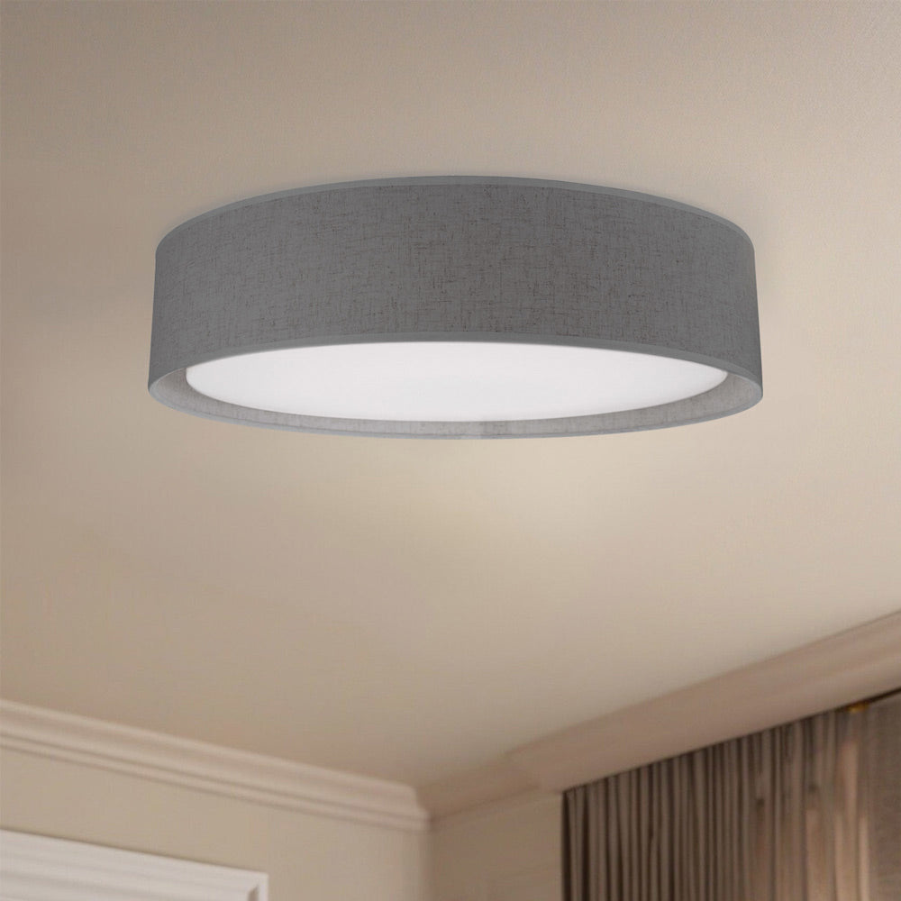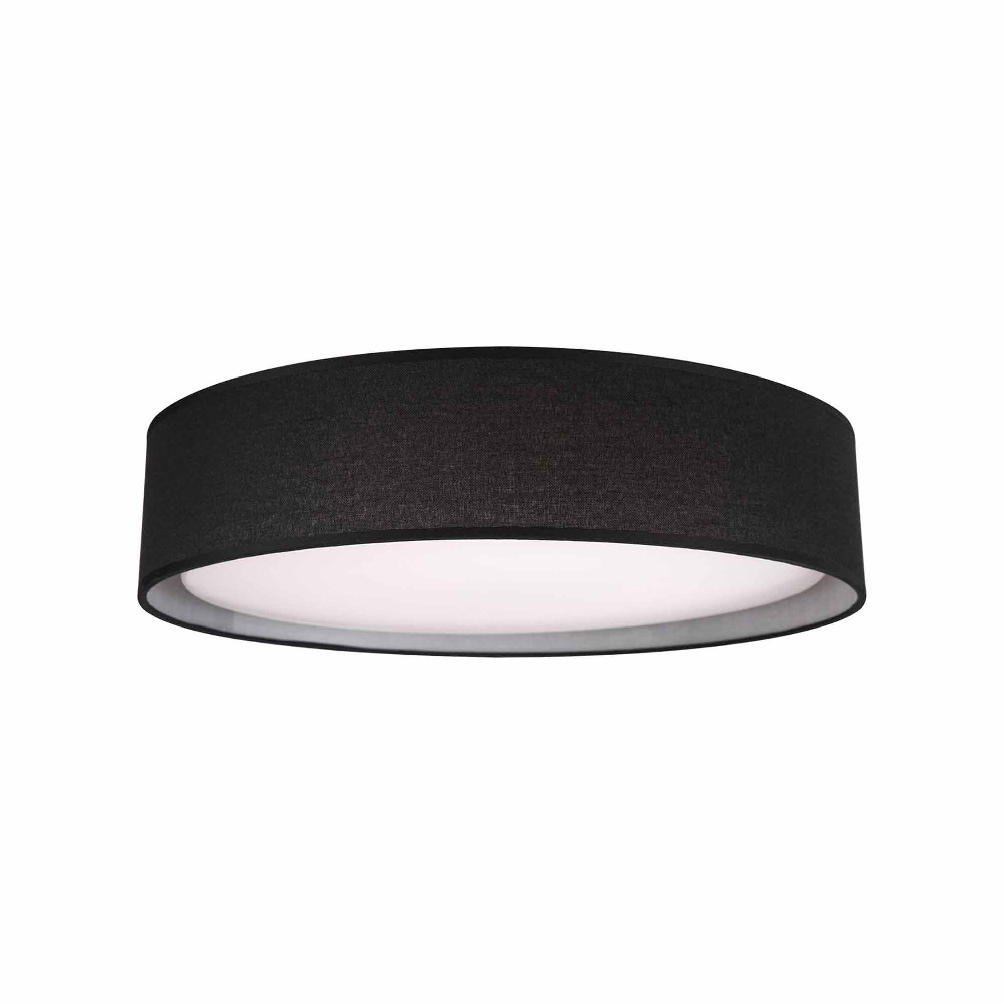 Round LED flush mount with a refined hand tailored textured fabric shade available in beige, black or white colors. Inside the shade is a white acrylic shade which when lit emits the light evenly throughout the whole room. Equipped with our powerful 120V, AC LED technology, 19W, fully ELV, TRIAC.