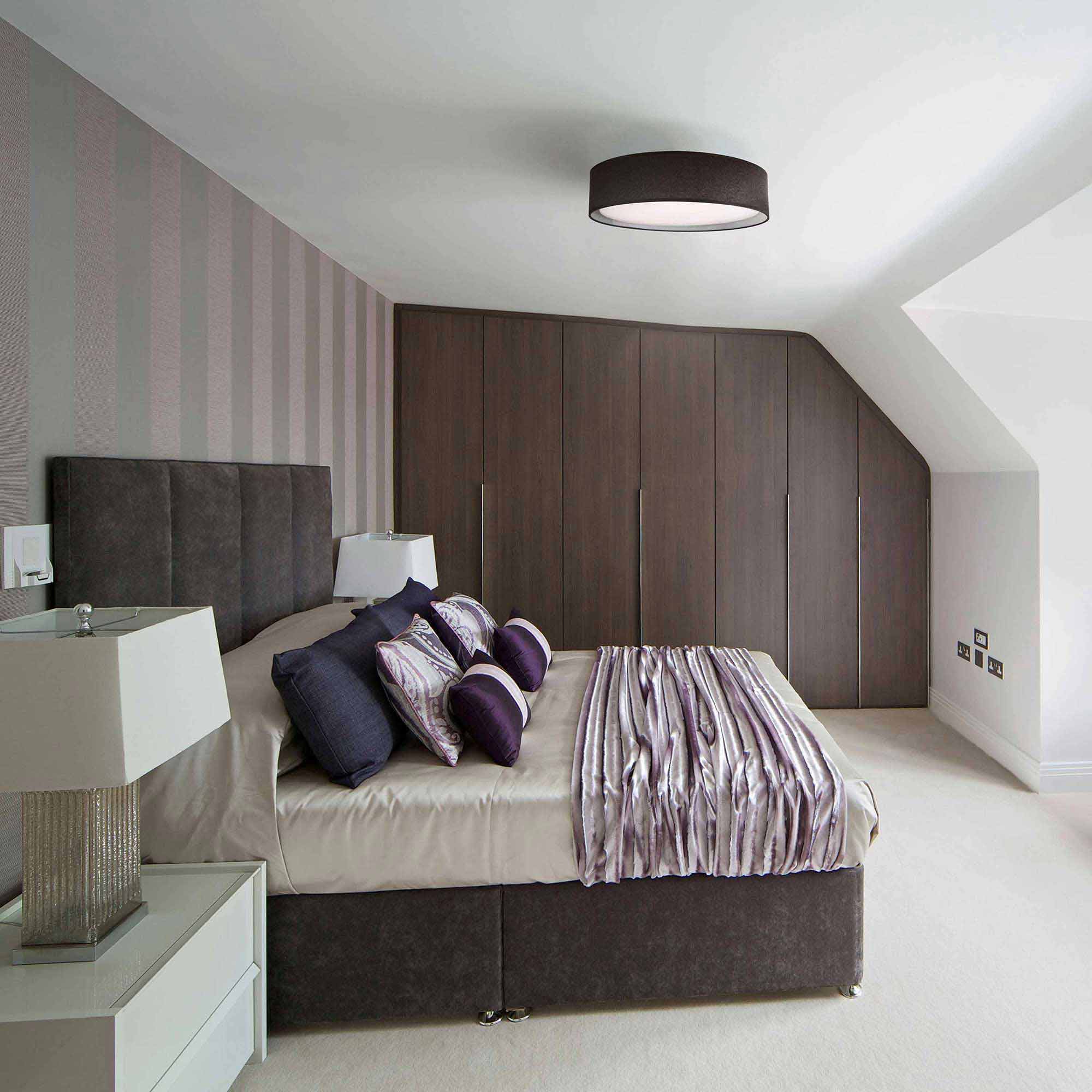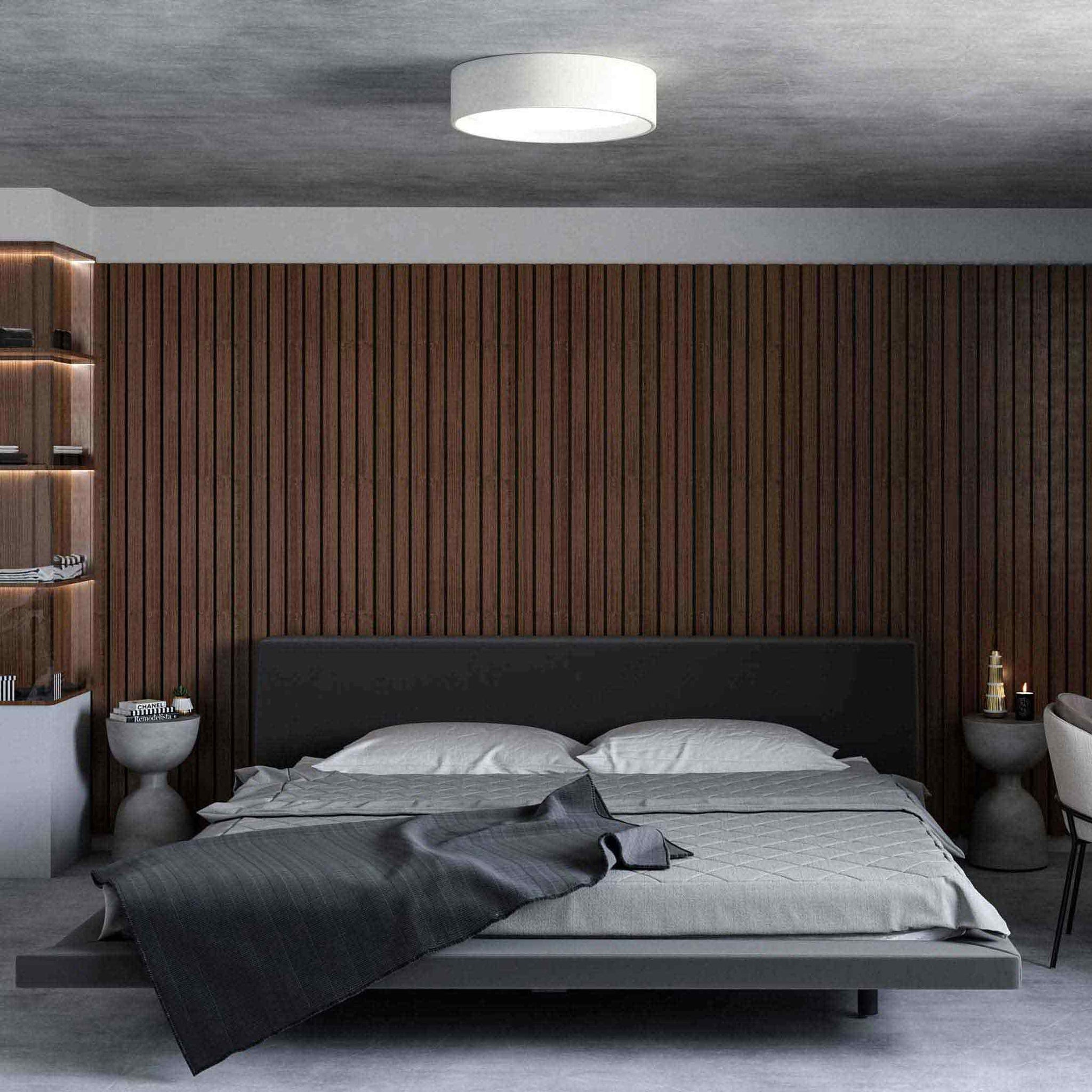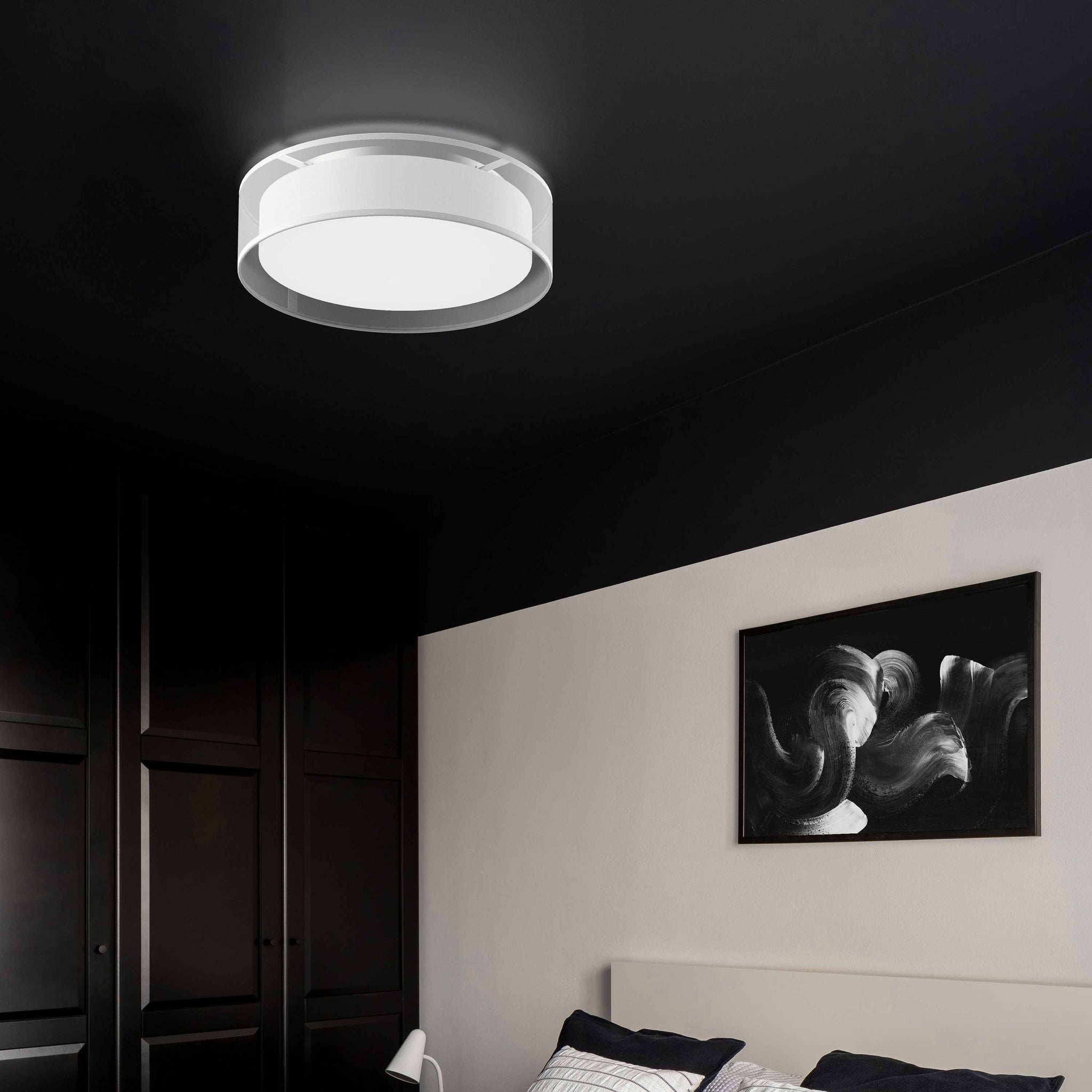 Round LED flush mount with a refined hand tailored textured fabric shade available in beige, black or white colors. Inside the shade is a white acrylic shade which when lit emits the light evenly throughout the whole room. Equipped with our powerful 120V, AC LED technology, 19W, fully ELV, TRIAC.