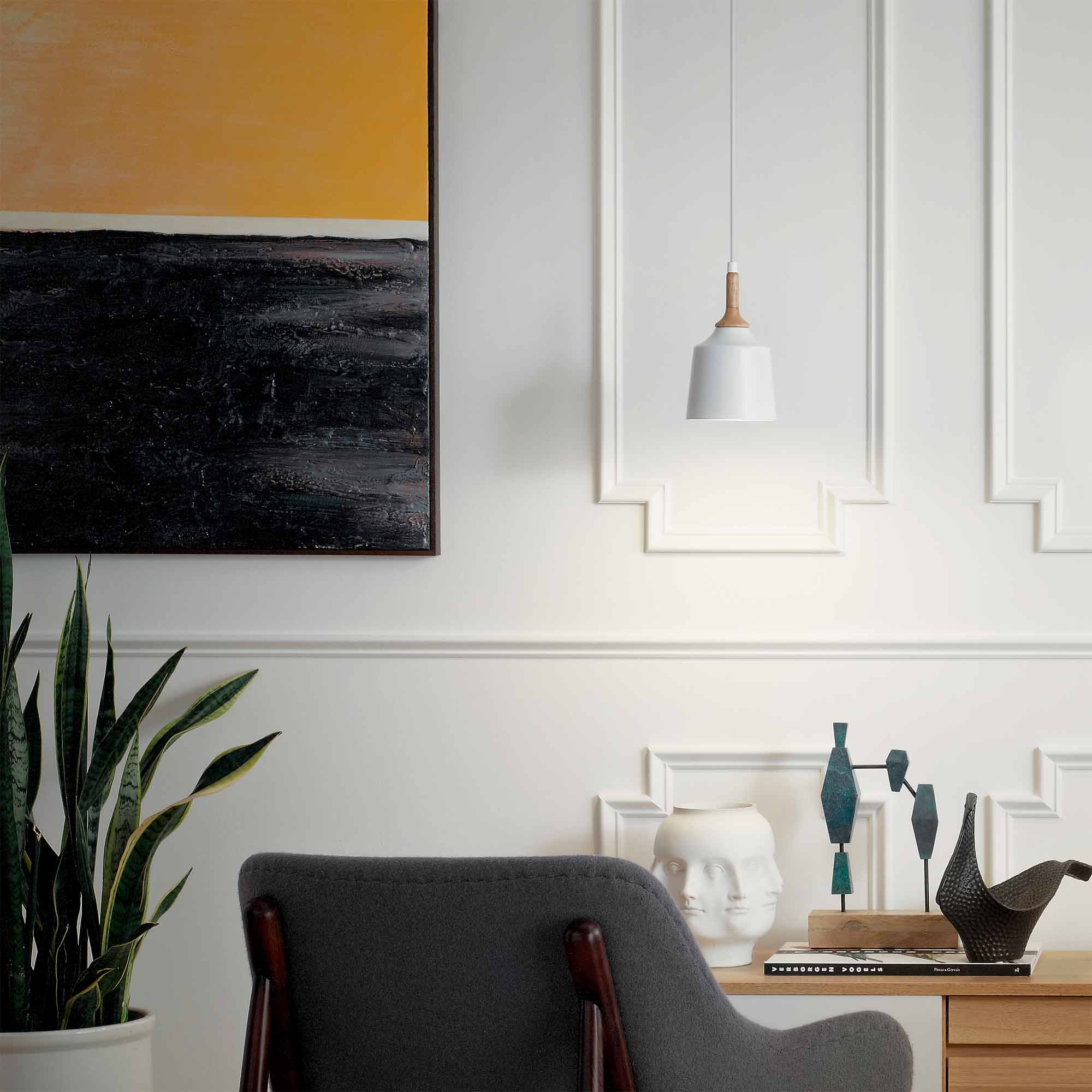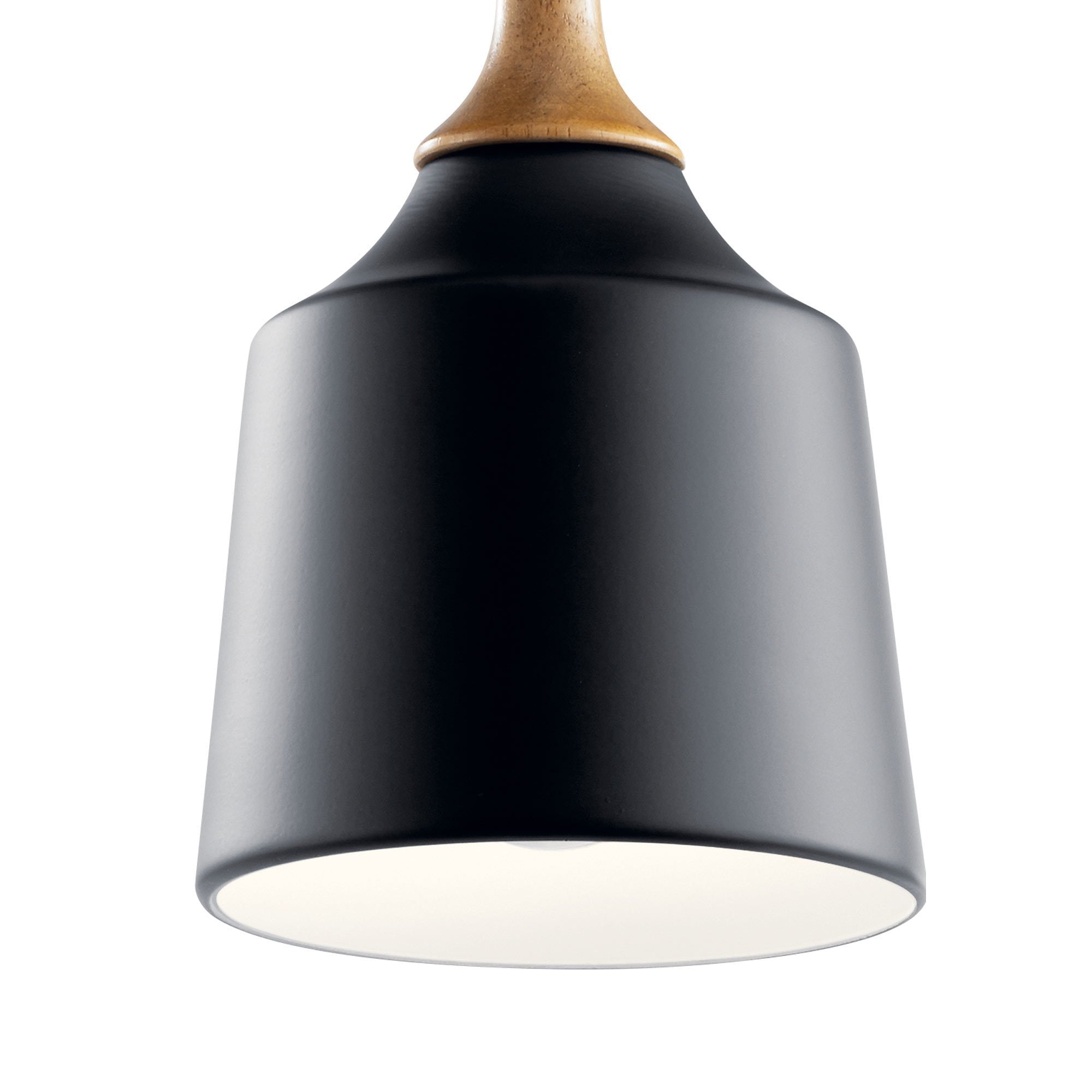 This 1 light mini pendant from the Danika Collection takes the concept of mid-century modern to a new level. Wood accents add texture and interest to the Black and White finish.