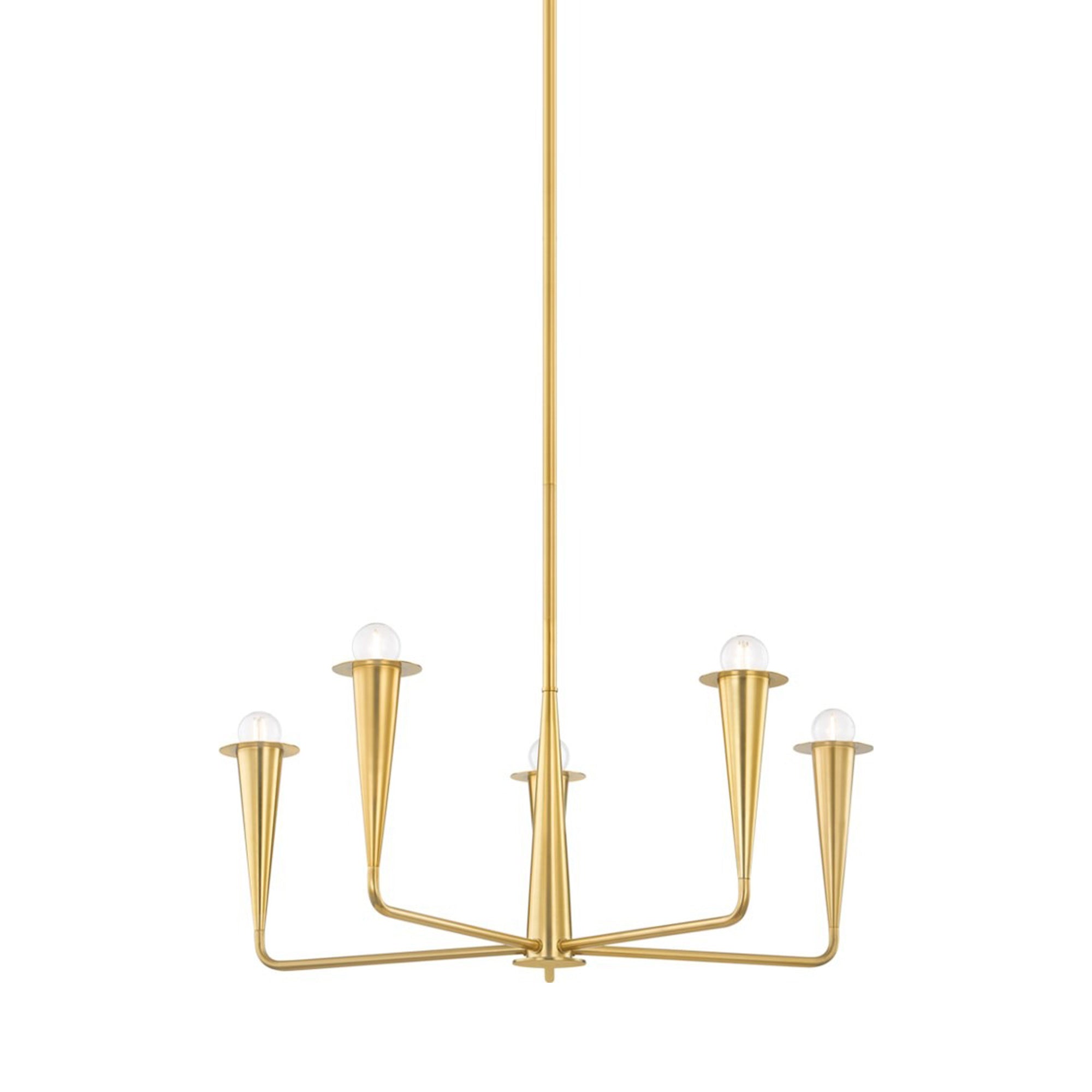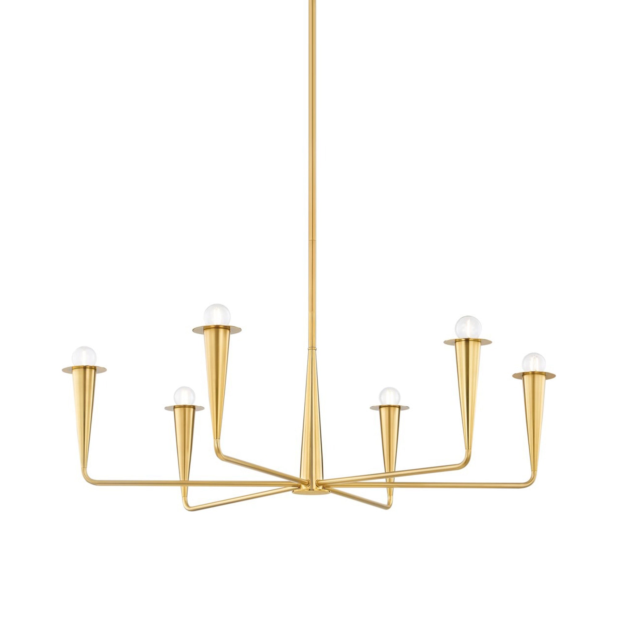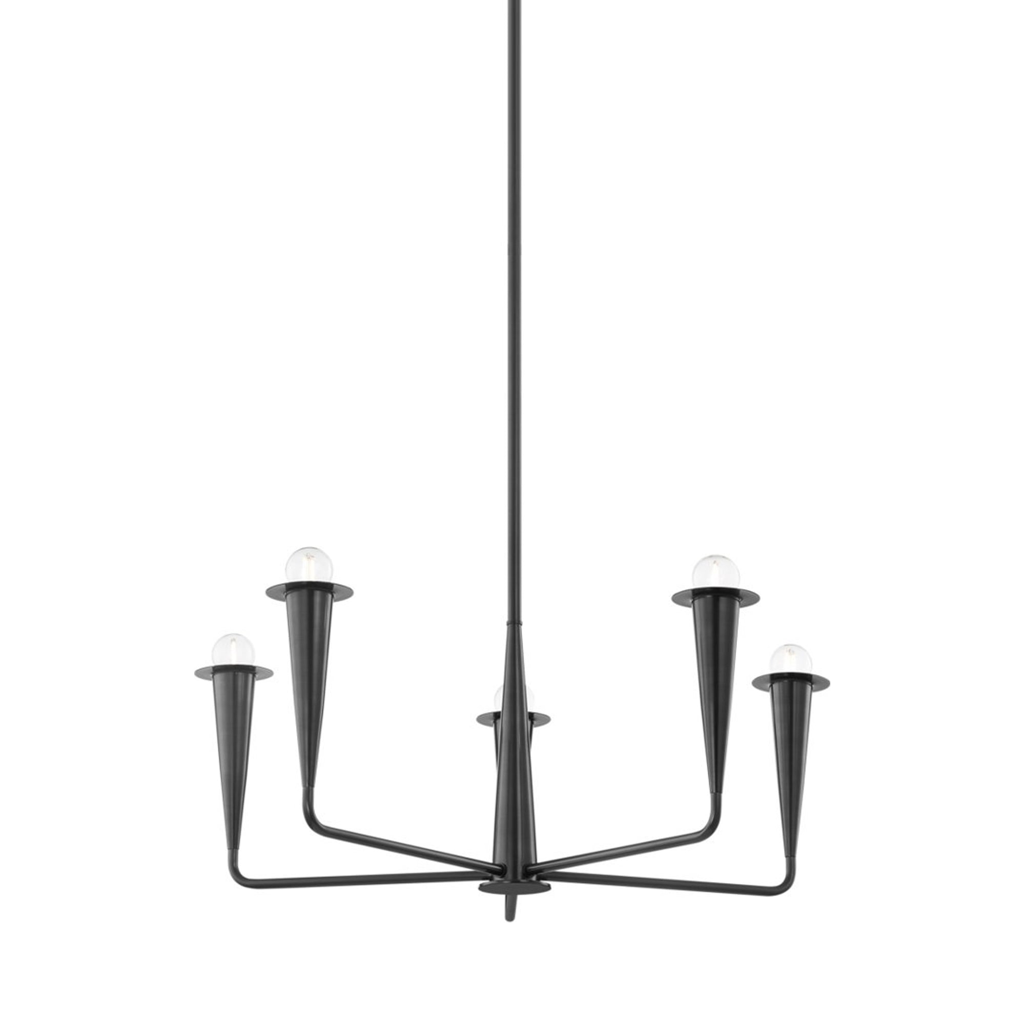 Sophisticatedly blending industrial and botanical, the Danna Chandelier from Mitzi is a delicate design with retro personality. Over a dining table it delivers a warm, rich glow, offering a chic finish and clean, flowing lines to create a spectacular silhouette. Tapering candlesticks evoke glowing torches while U-shaped arms add drama to balance the chic choice of clear glass orbs that provide inviting illumination.
